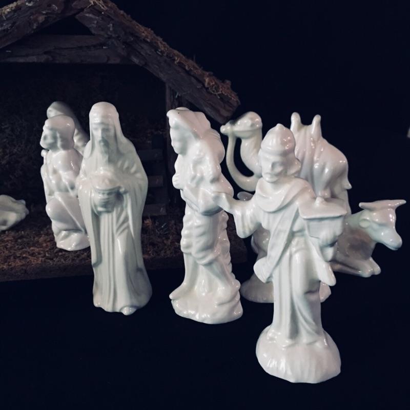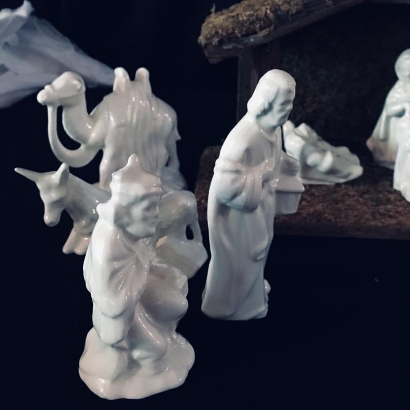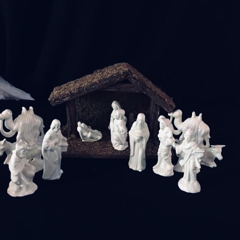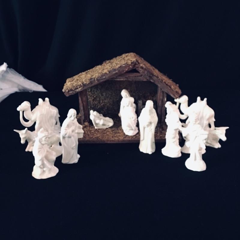 The holidays will be here before you know it and this lovely assortment of christmas themed decor is too nice to miss. A gorgeous nativity set of white figures comes with a wooden barn. Also included are a great selection of wooden santa's, 6 in total. Largest Santa measures 11” x 7” x 4”.