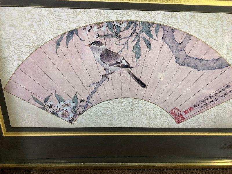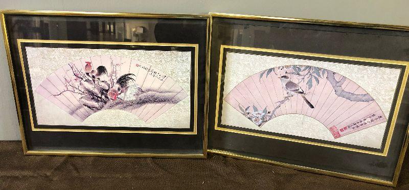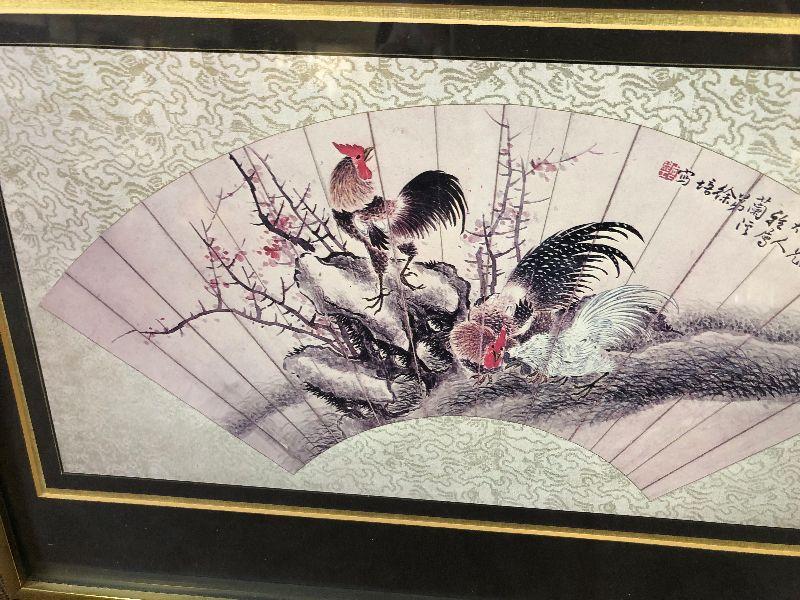 Lot #104 Pair of Asian Prints Framed - Rooster and Song bird