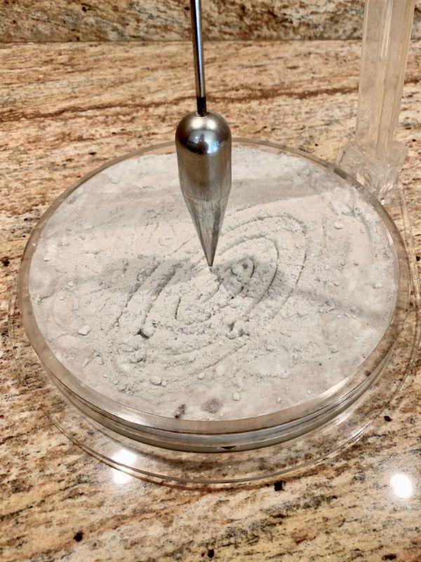 Plumb Bob meets Zen! An acrylic art piece that you can watch for hours drawing lines in the sand, in this case a white powdery substance!