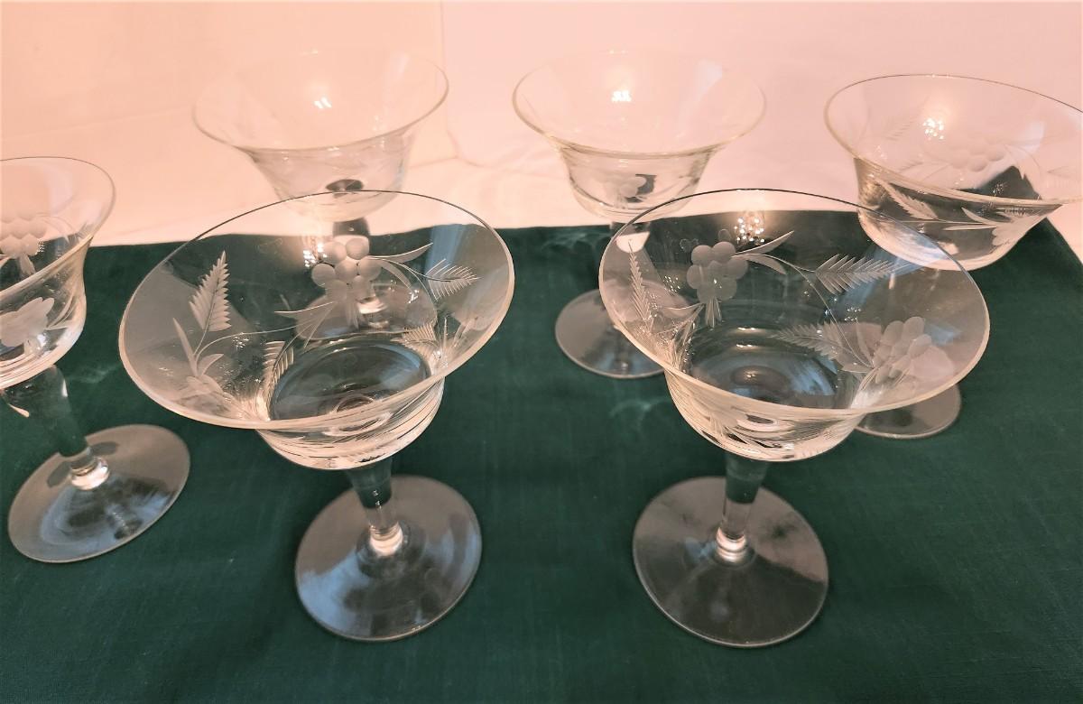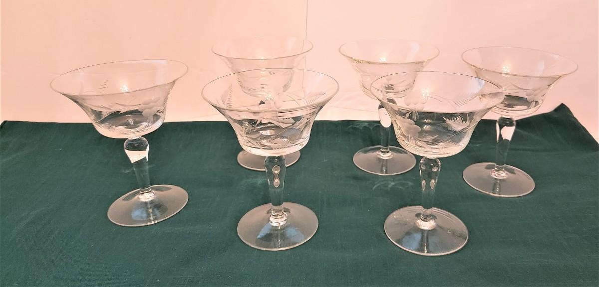 Lot #104 Set of 6 Vintage Crystal Etched Champagne Glasses