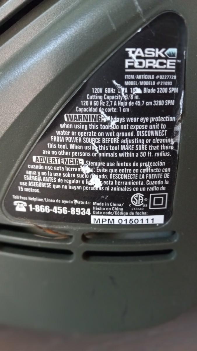 TASK FORCE 18" HEDGE TRIMMER MODEL 21093