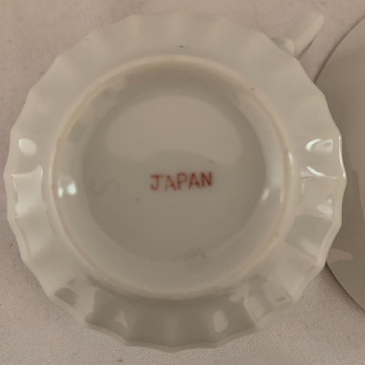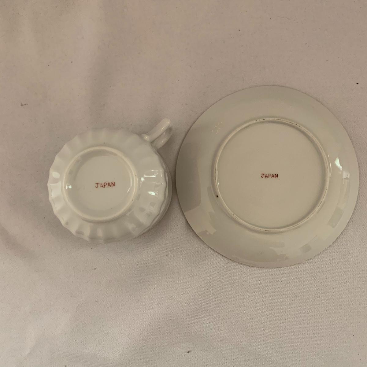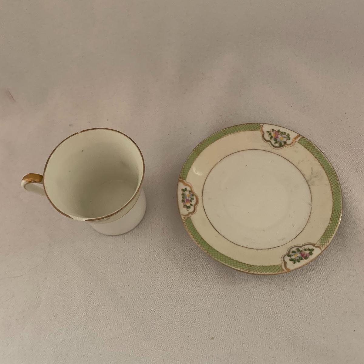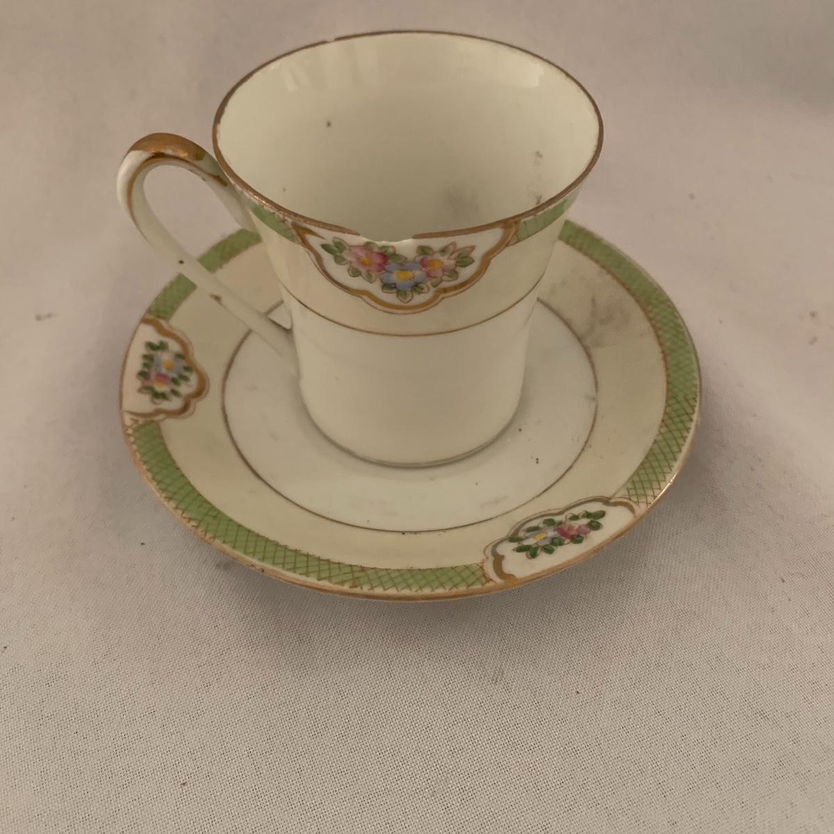 Enjoy tea time with this adorable tea set. This set includes a beautiful tea pitcher that stands 10” tall that features a green/floral motif as well as guided trim. There are also three cup and saucer sets that match the pitcher. The other two cup/saucer sets also have a charming floral motif. Everything included in this lot is in good condition. See makers mark pics to determine manufacturer. Shipping available