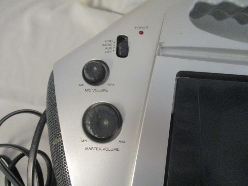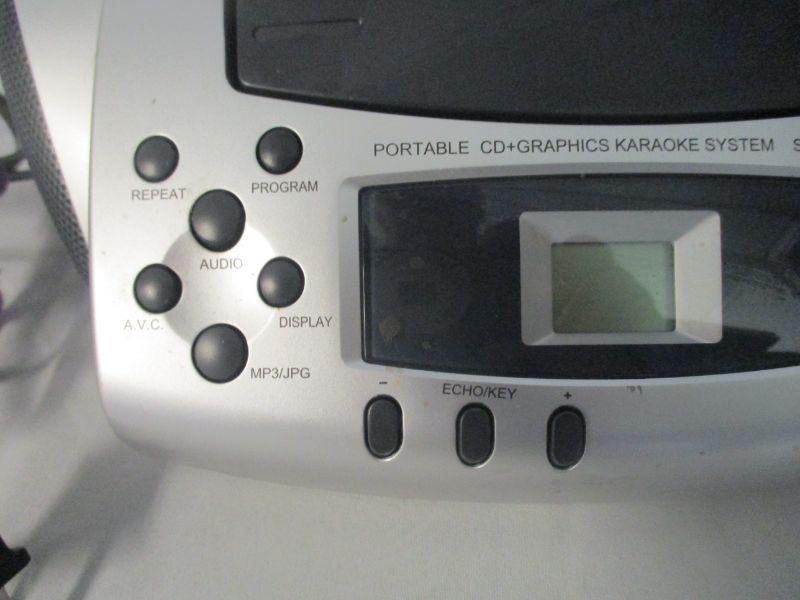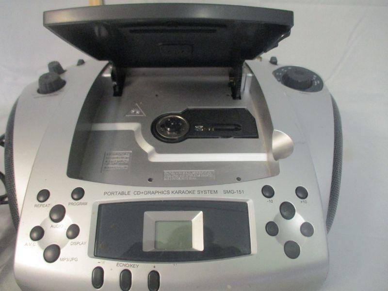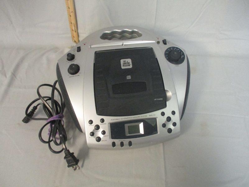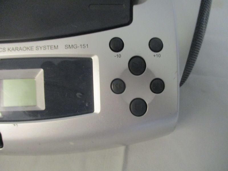 This is model SMG-151 and it allows you to party like a rock star with karaoke, or you can use the CD player for those regular folks you hang out with that can't carry a tune, or the FM radio. I plugged it in and the radio worked, but that was all that I could test. Consignor states that it works.