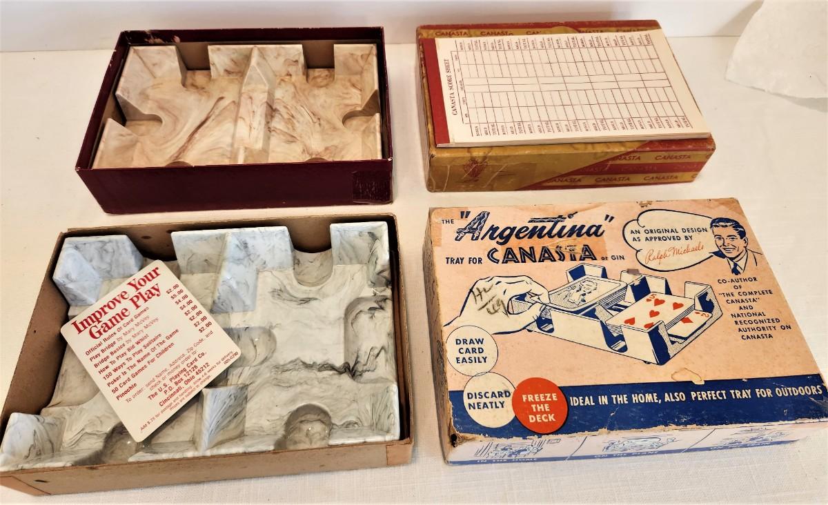 1960's Canasta Card holders in original boxes - Mid-Century - also used to play Gin Rummy.