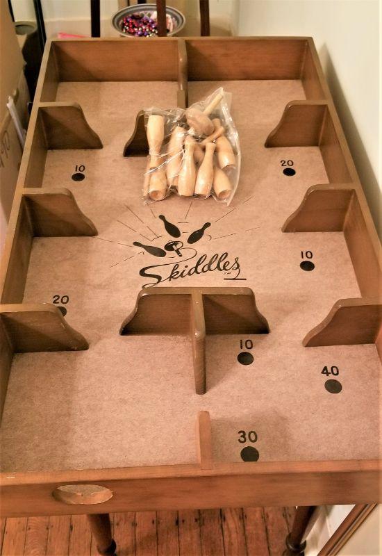 Vintage SKIDDLES GAME - also called Stick bowling - seems to be complete. Good vintage condition. Measures 28.5" x 16".