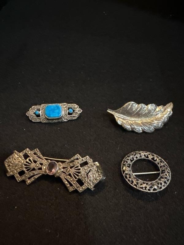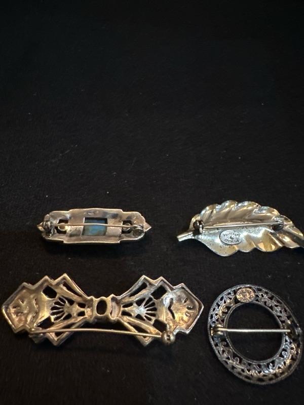 4 sterling brooches/ pins