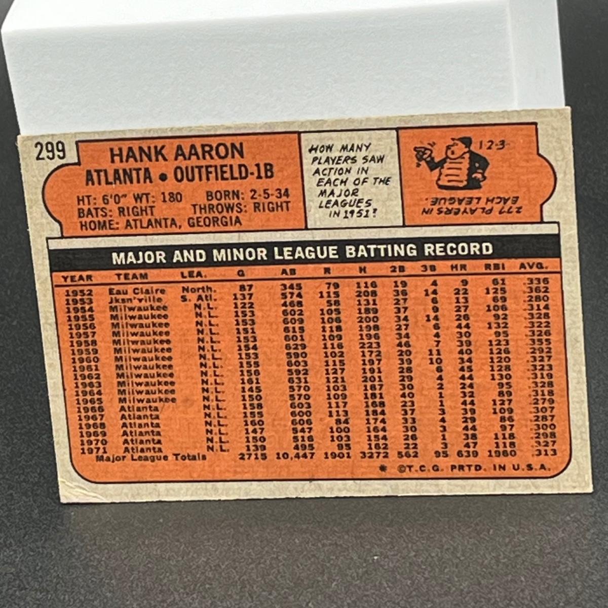 LOT 4: 1972 Topps Baseball Card Hank Aaron