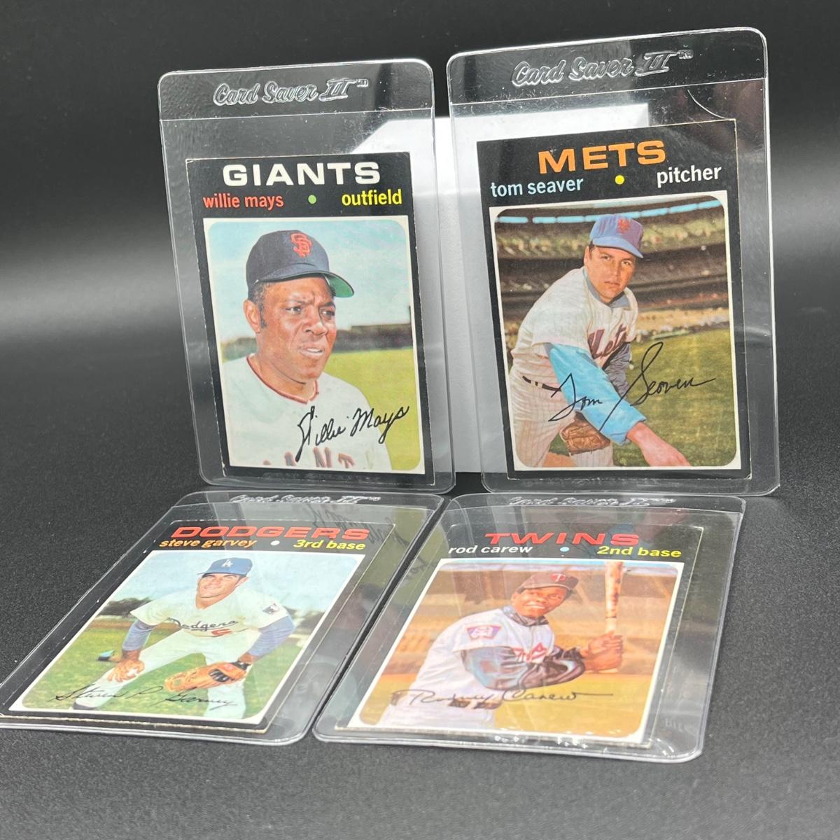 LOT 14: 1971 Topps Baseball Cards - Willie Mays, Tom Seaver, Steve Garvey, Rod Carew