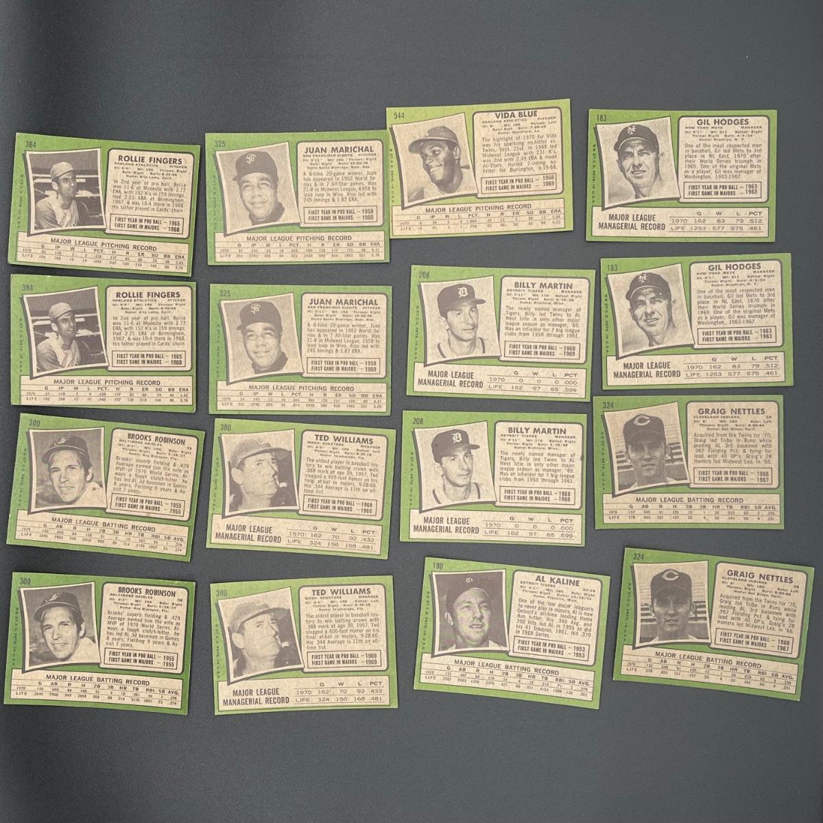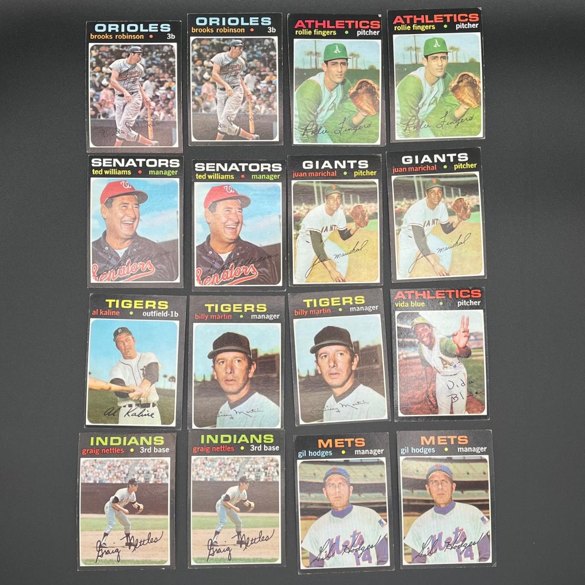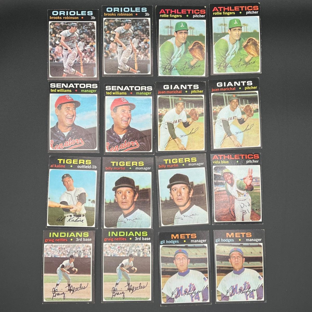 LOT 22: 1971 Topps Baseball Cards - Brooks Robinson, Ted Williams, Juan Marichal, Al Kline and More