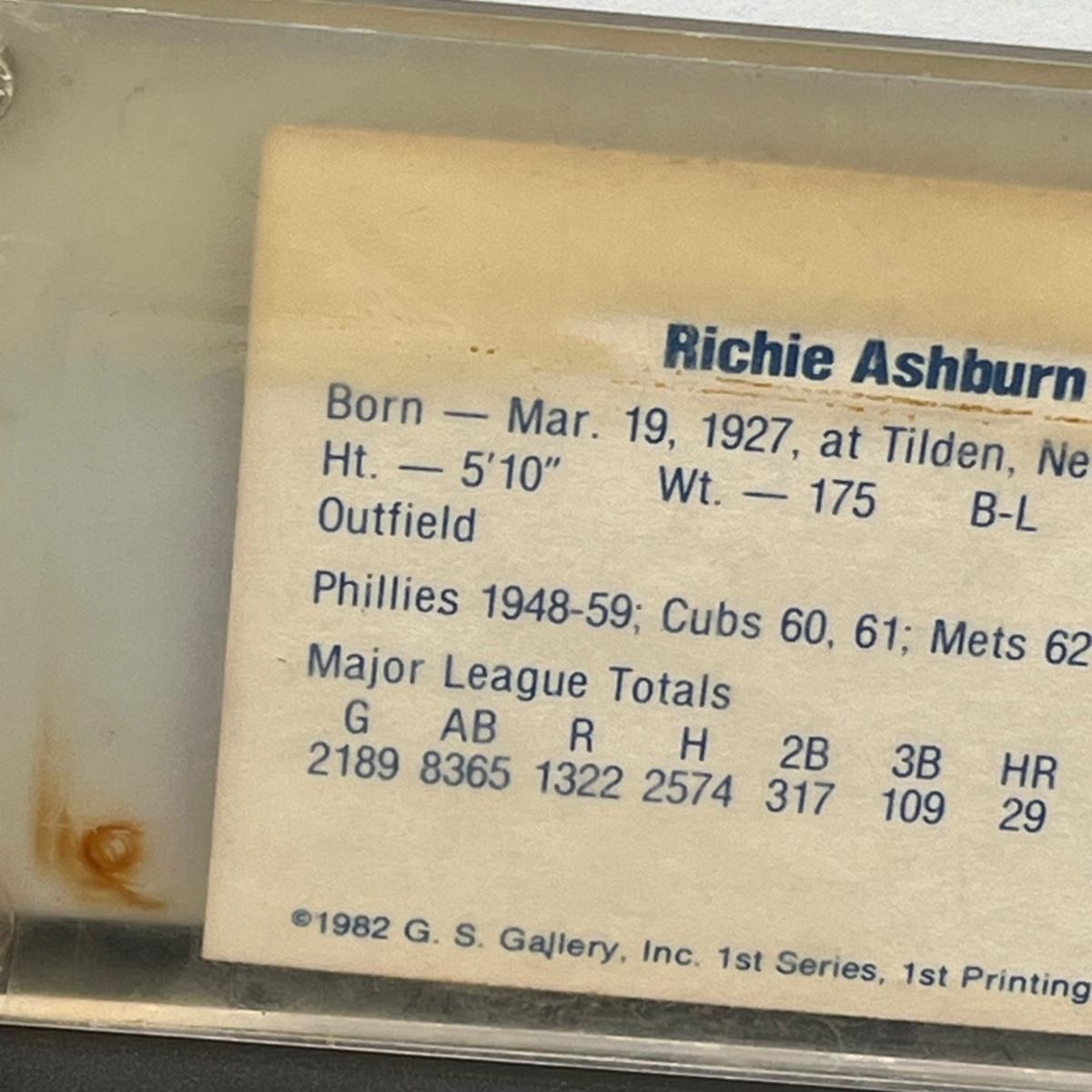 LOT 46: Signed Richie Ashburn 1982 G.S. Gallery All-Time Greats Card # 23