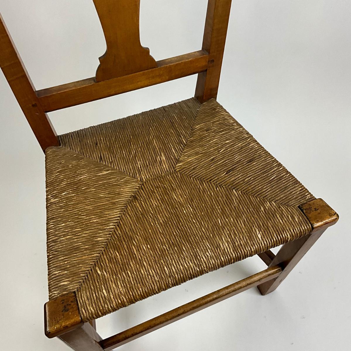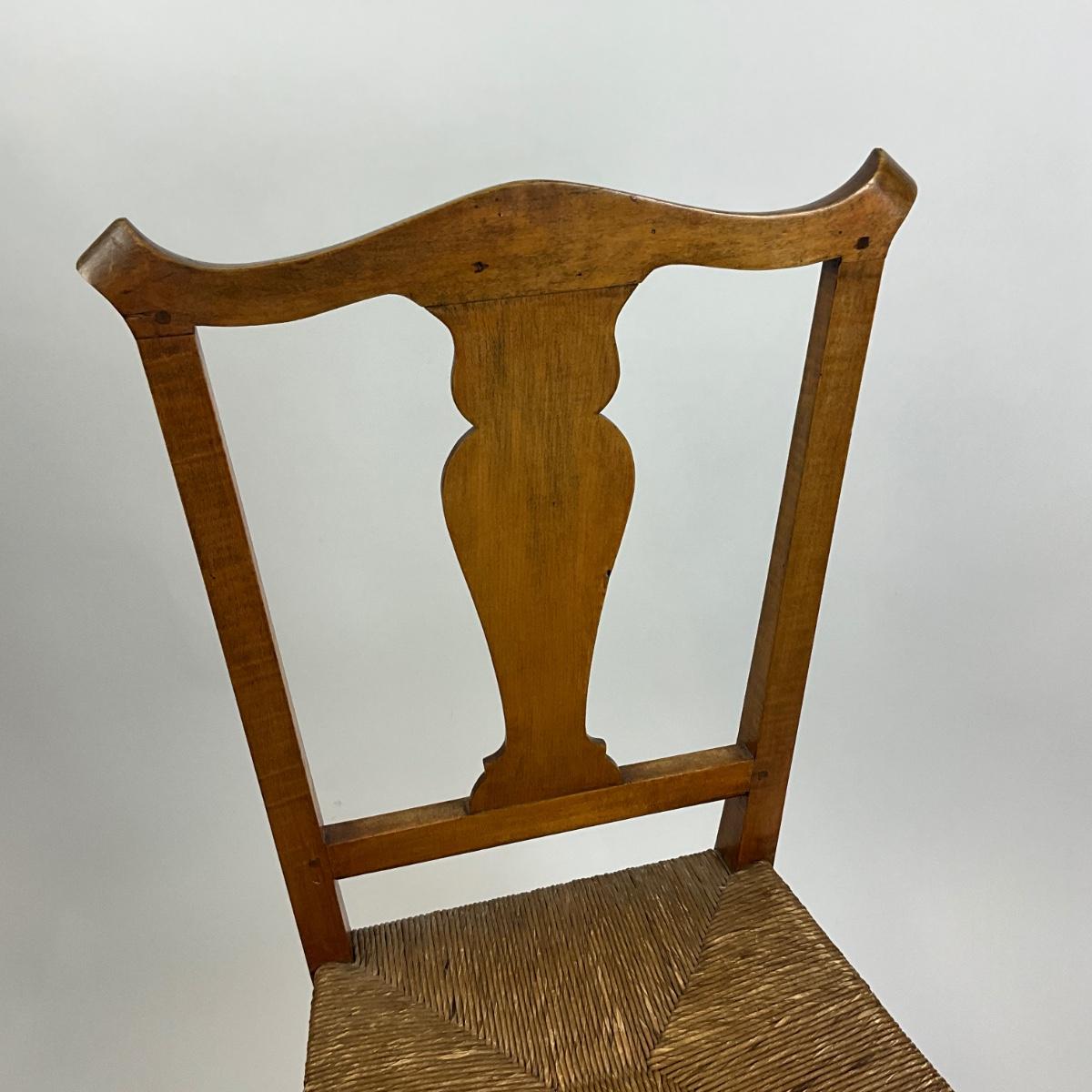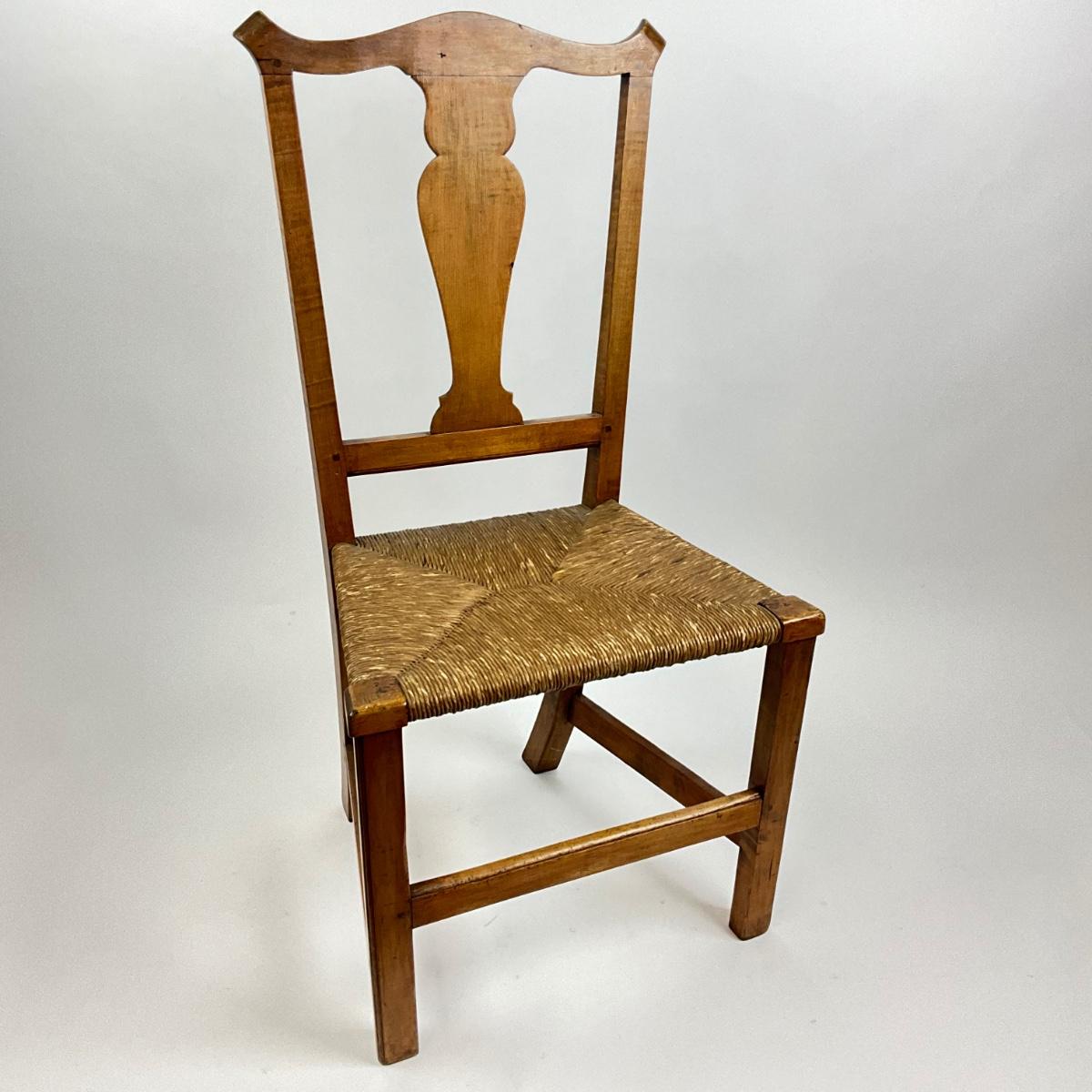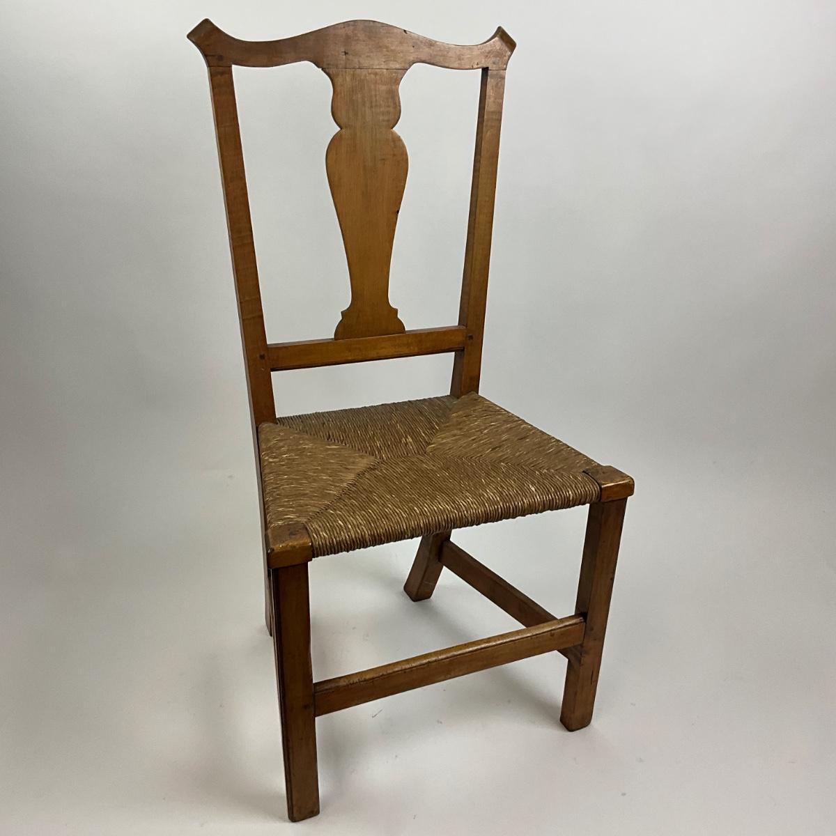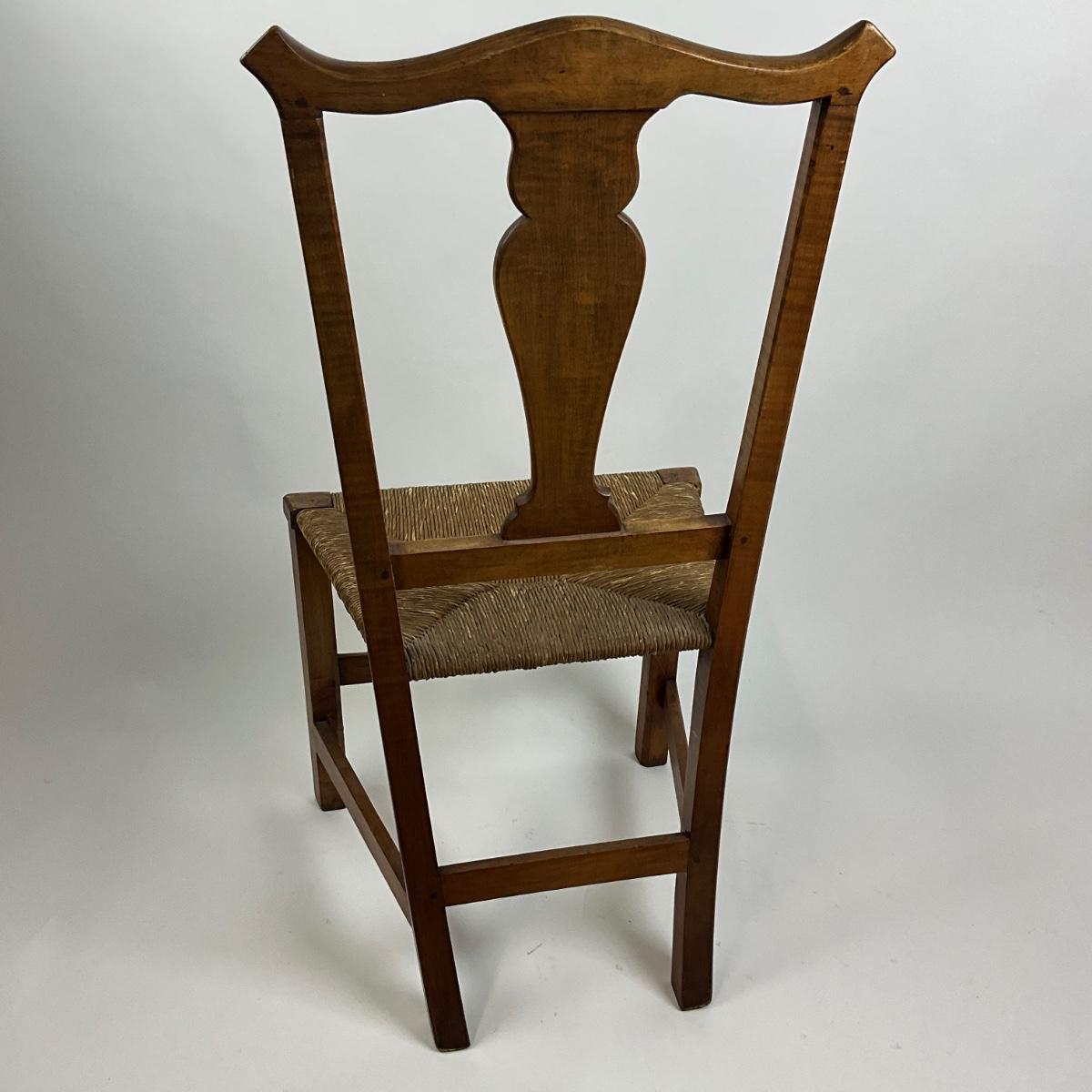 Chippendale style country chair with woven rush seat and vase form back splat. Measures 19"W, 14"D, 37"H, Seat 17"H.