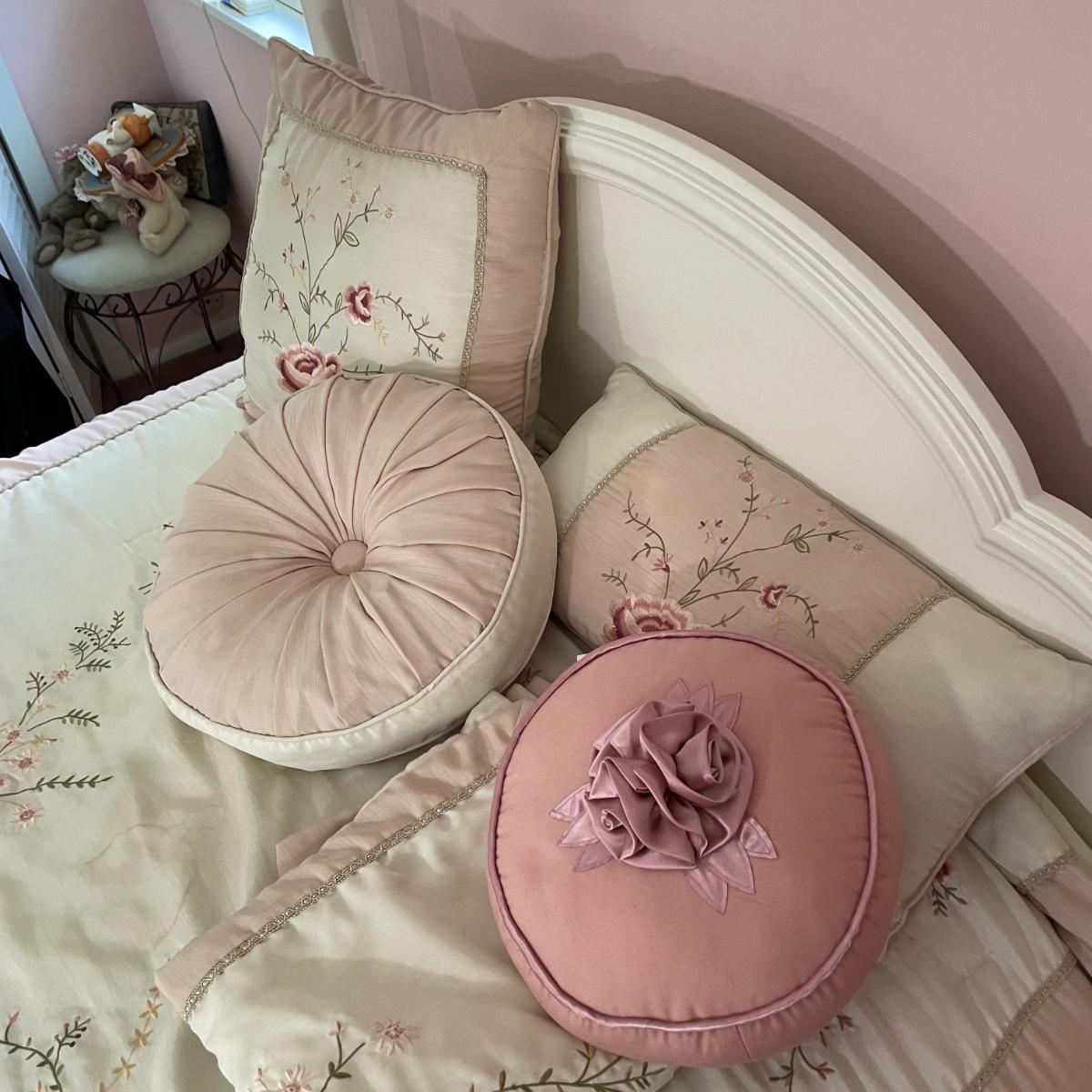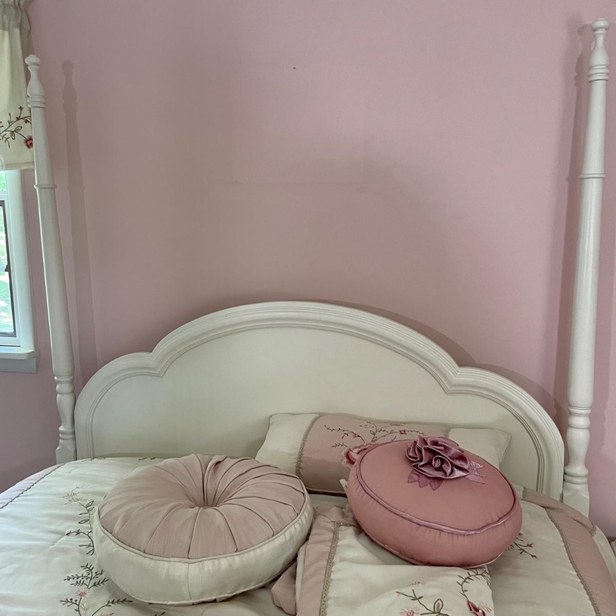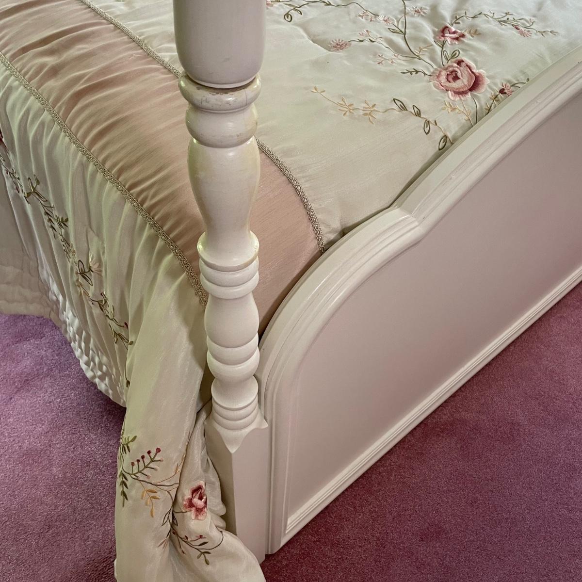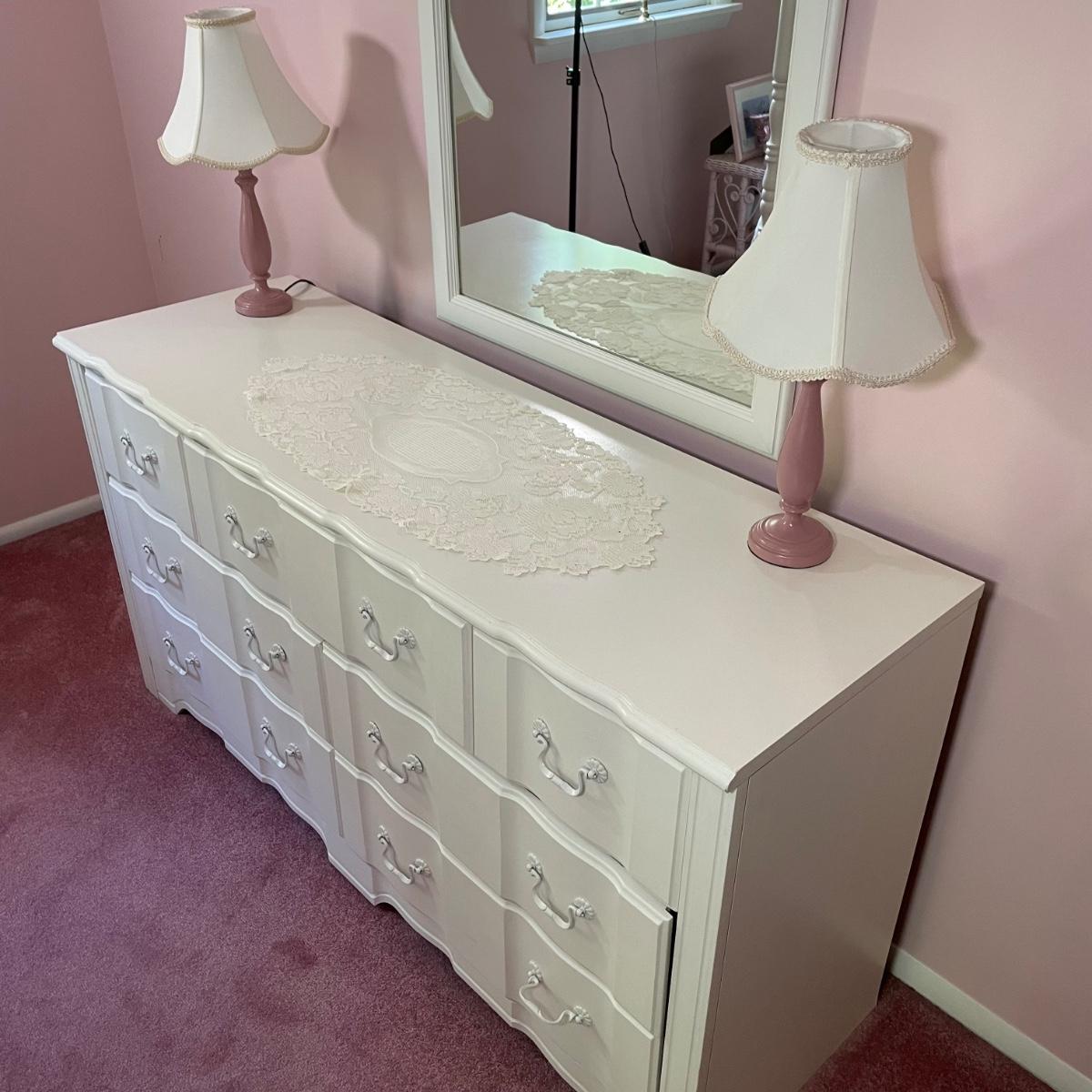 Night stand 22.5x16x22, bed 36x80.5x69.5, dresser 56x18x30, mirror 31x48.5 - Please see all pictures as they are the best representation of the items. The pictures show condition, measurements if taken, and what is included in the lot. Due to the large amount that we photograph and the time frame, we are not always able to take measurements. All items unless noted, are pre-owned and have been used. If you purchased furniture, you must bring help. We do not allow one person to carry large furniture out on their own. Bring help, tools and a truck for the safety of our client’s homes, and your personal safety. Any damages that result to the property including walls, and floors due to moving of the furniture will be charged to the buyer. Company policy. Thank you.