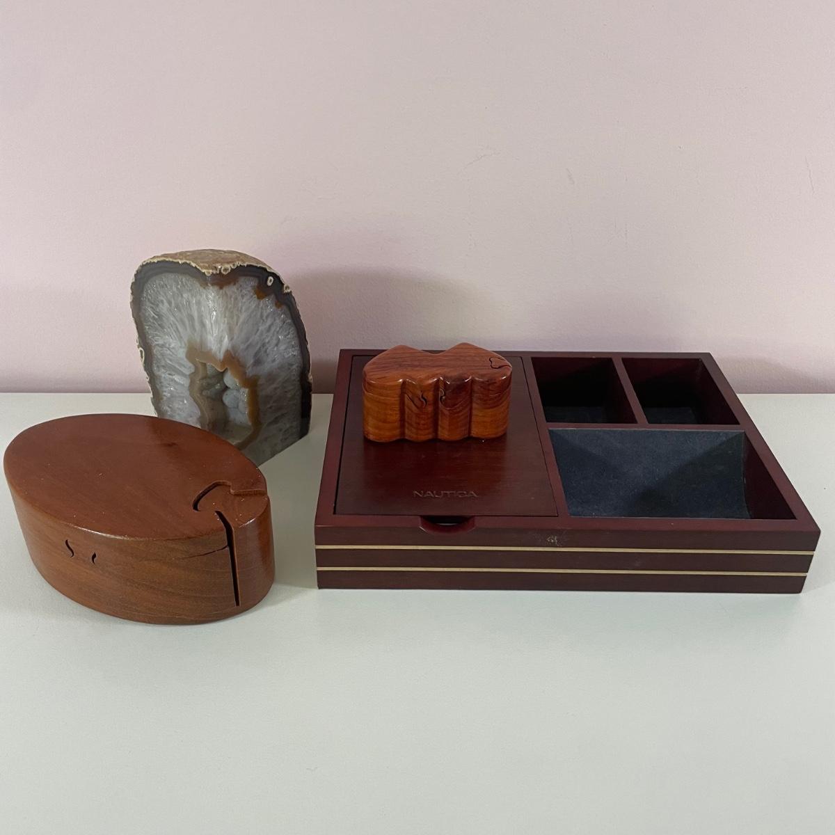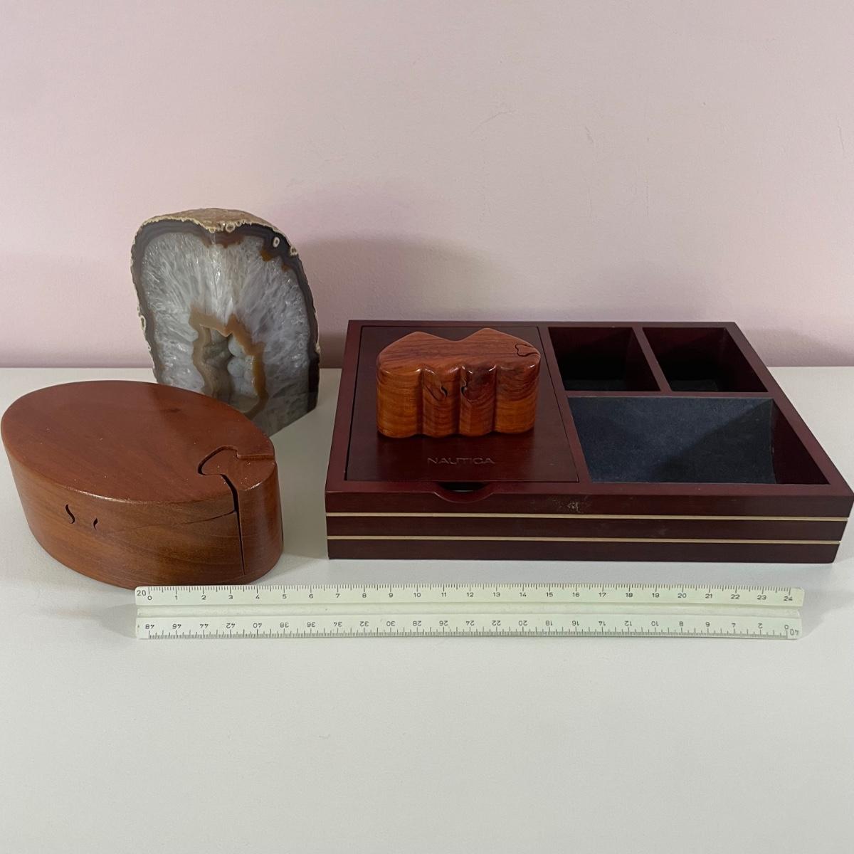 LOT 24Y: Nautica Valet Tray, Wooden Puzzle Boxes & Geode