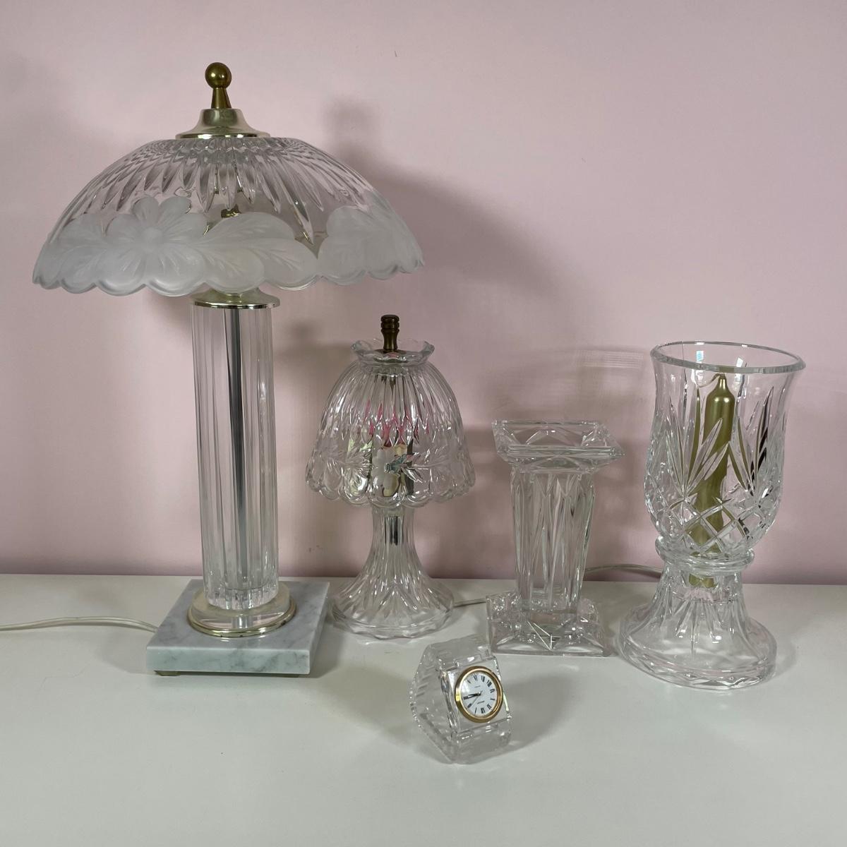 LOT 27M: Vintage Crystal Lamps, Clock & More