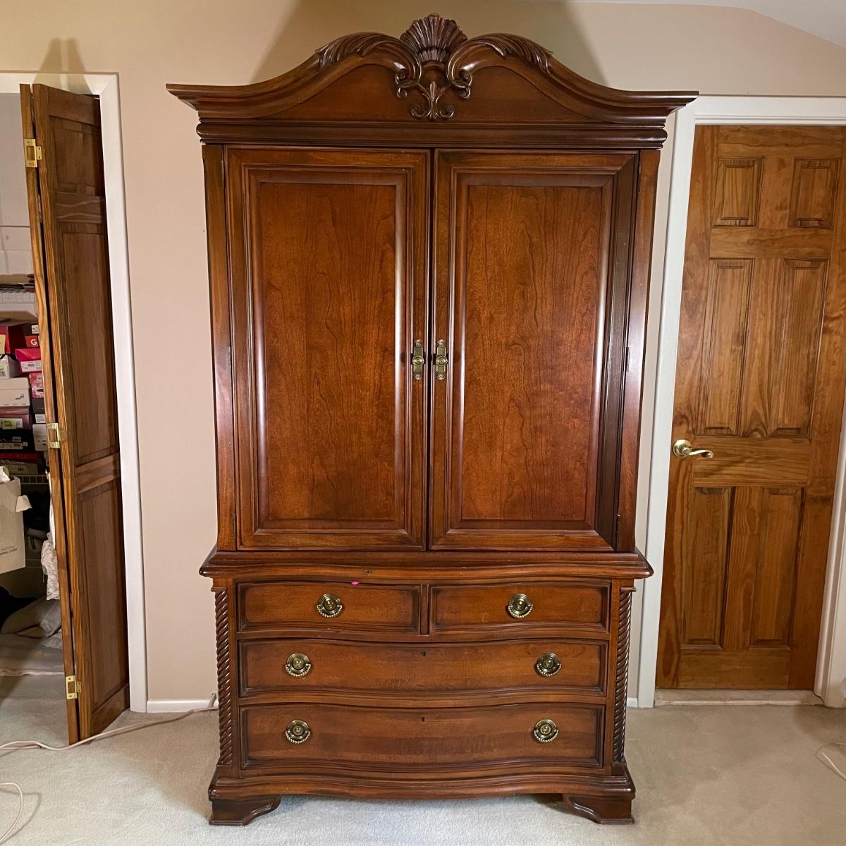 48x23x83 - Please see all pictures as they are the best representation of the items. The pictures show condition, measurements if taken, and what is included in the lot. Due to the large amount that we photograph and the time frame, we are not always able to take measurements. All items unless noted, are pre-owned and have been used. If you purchased furniture, you must bring help. We do not allow one person to carry large furniture out on their own. Bring help, tools and a truck for the safety of our client’s homes, and your personal safety. Any damages that result to the property including walls, and floors due to moving of the furniture will be charged to the buyer. Company policy. Thank you.