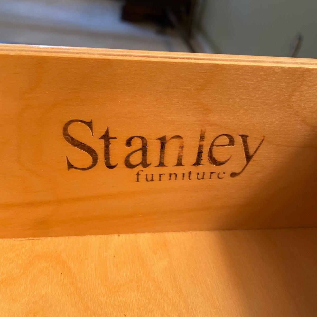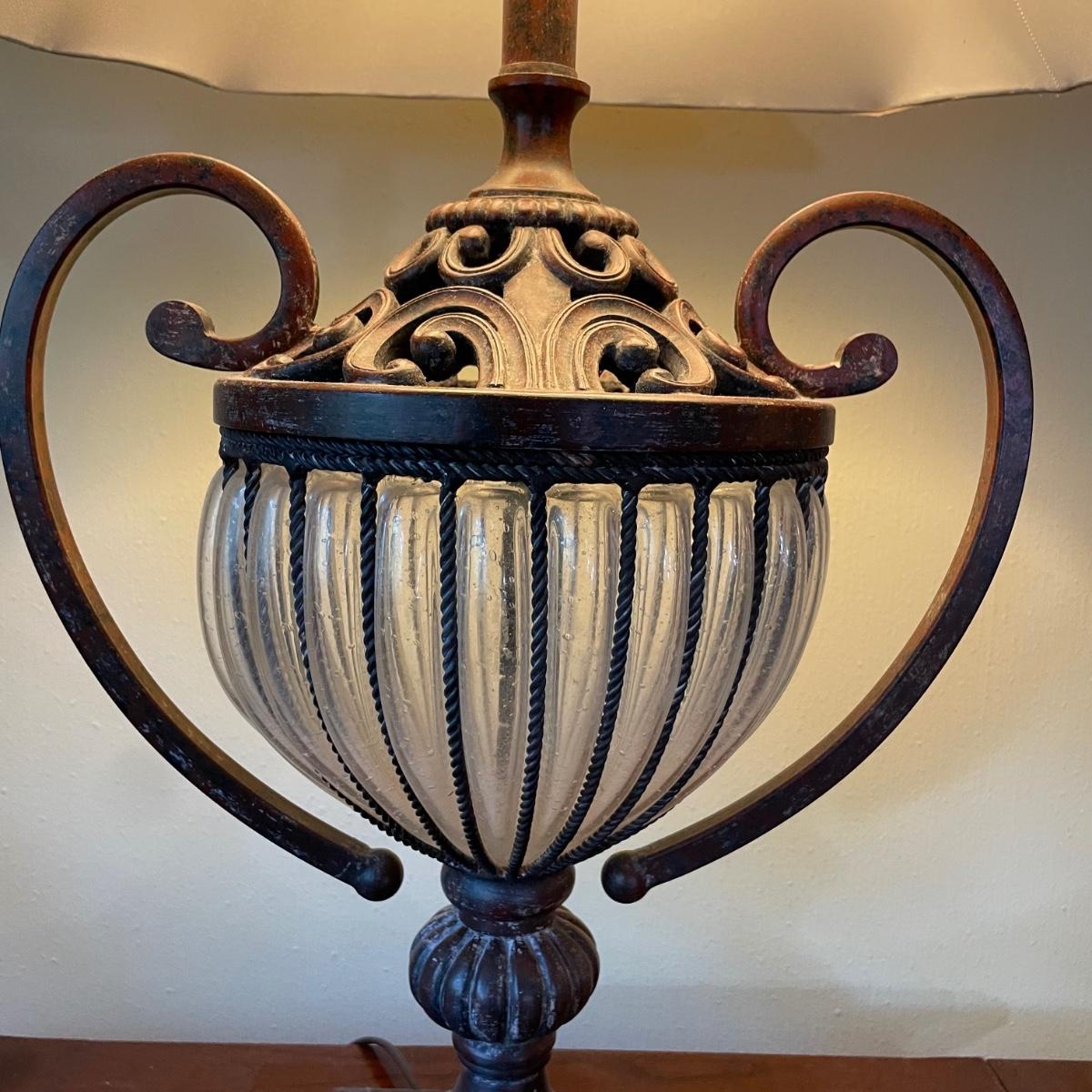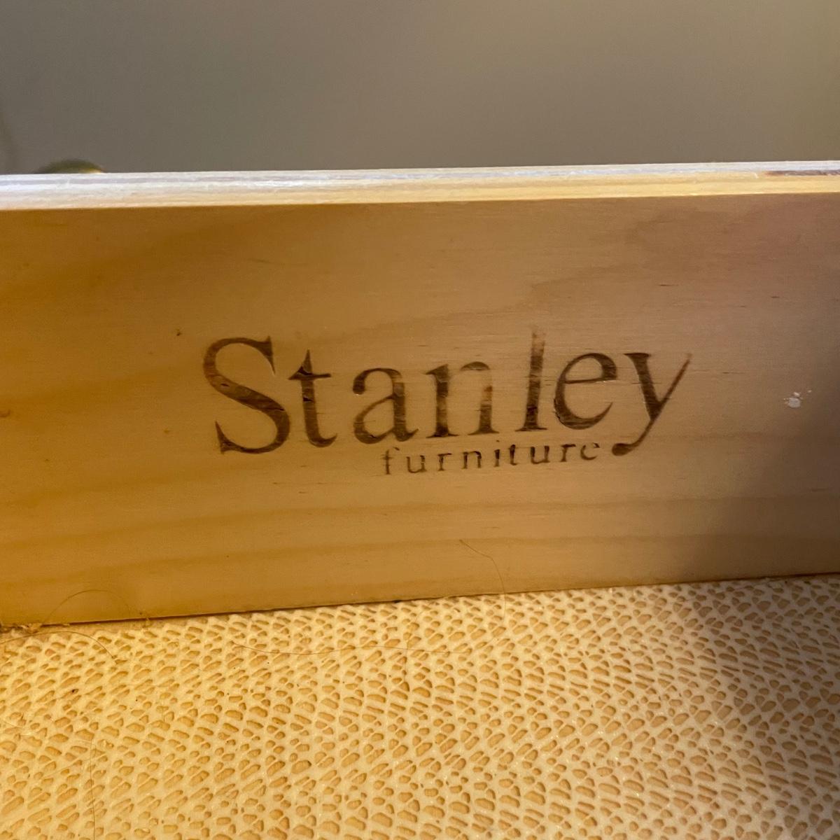 LOT 35M: Two Matching Stanley Furniture Side Tables w/ Two Matching Metal/Glass Lamps