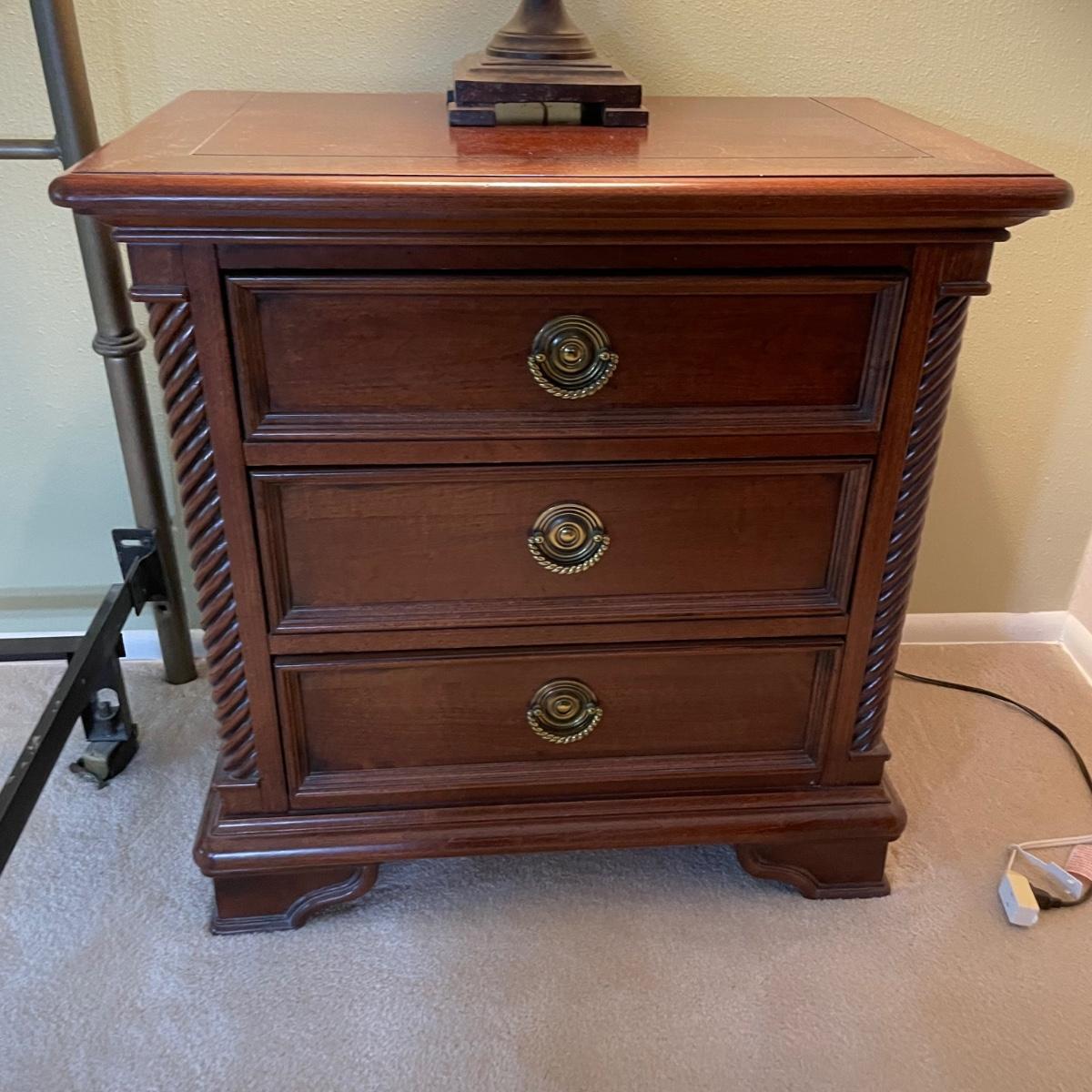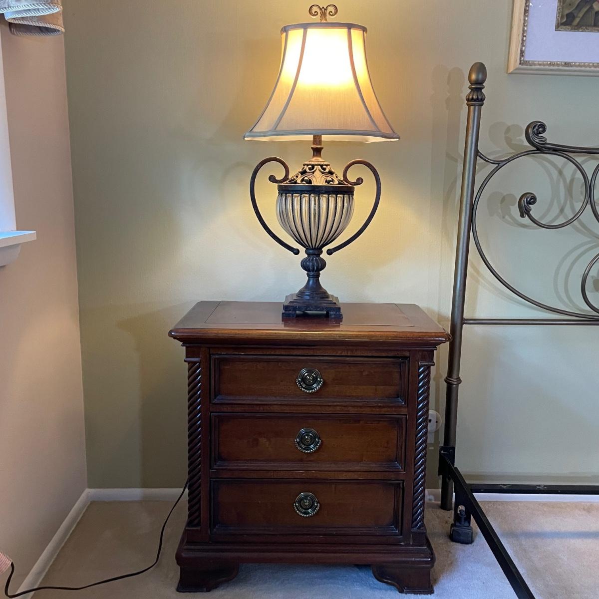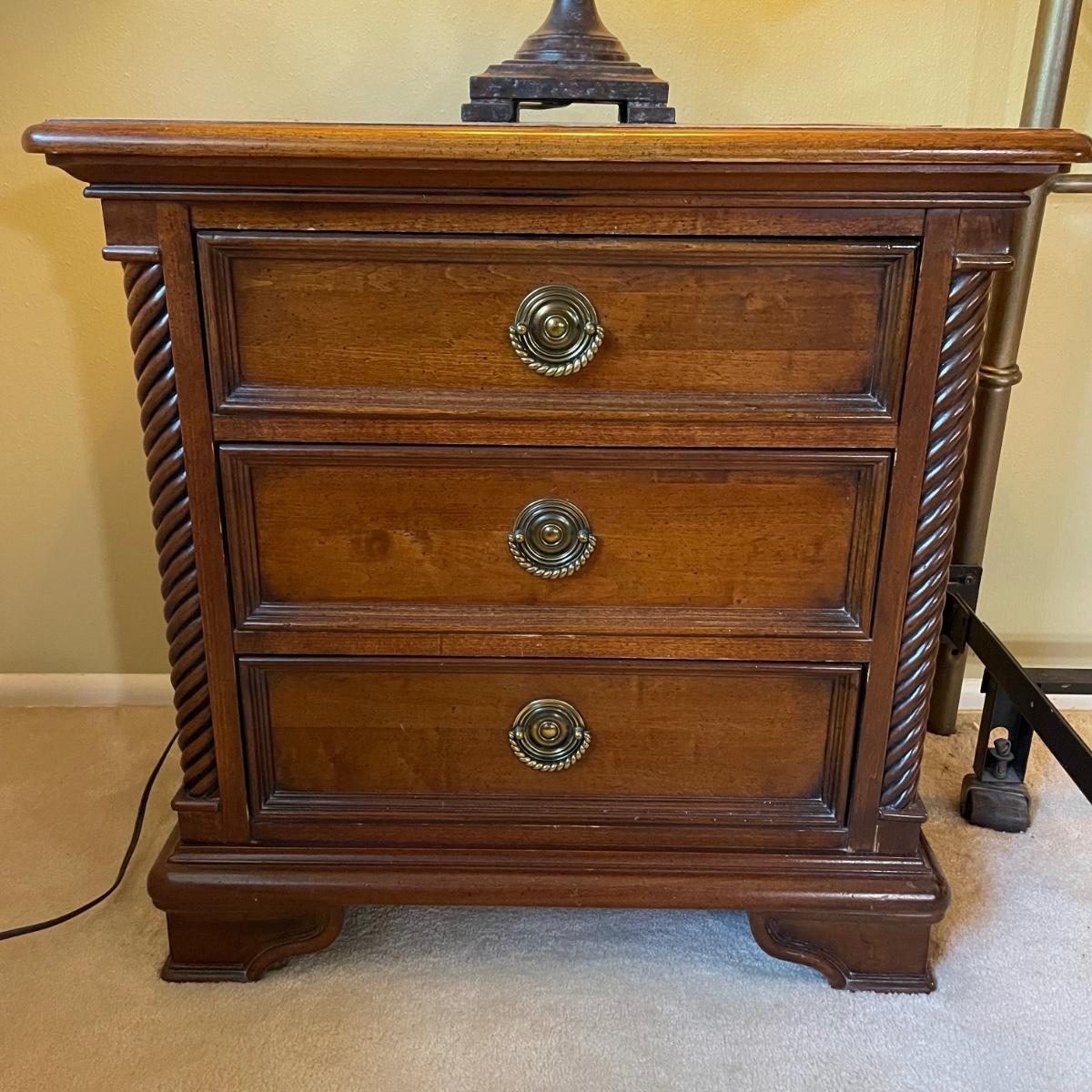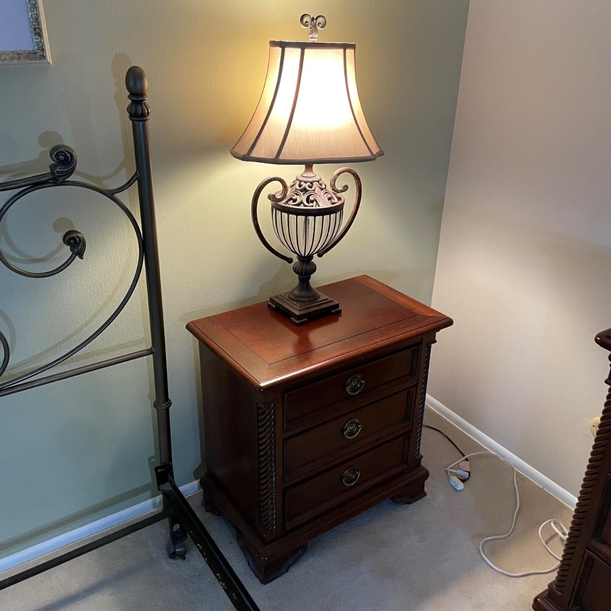 Night stands are 28.5x17x28 each and each lamp is 33 tall - Please see all pictures as they are the best representation of the items. The pictures show condition, measurements if taken, and what is included in the lot. Due to the large amount that we photograph and the time frame, we are not always able to take measurements. All items unless noted, are pre-owned and have been used. If you purchased furniture, you must bring help. We do not allow one person to carry large furniture out on their own. Bring help, tools and a truck for the safety of our client’s homes, and your personal safety. Any damages that result to the property including walls, and floors due to moving of the furniture will be charged to the buyer. Company policy. Thank you.