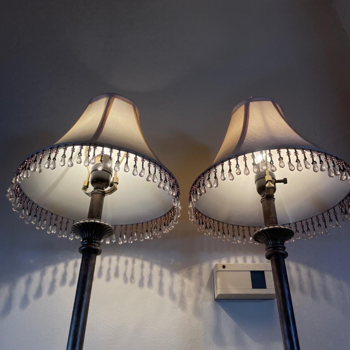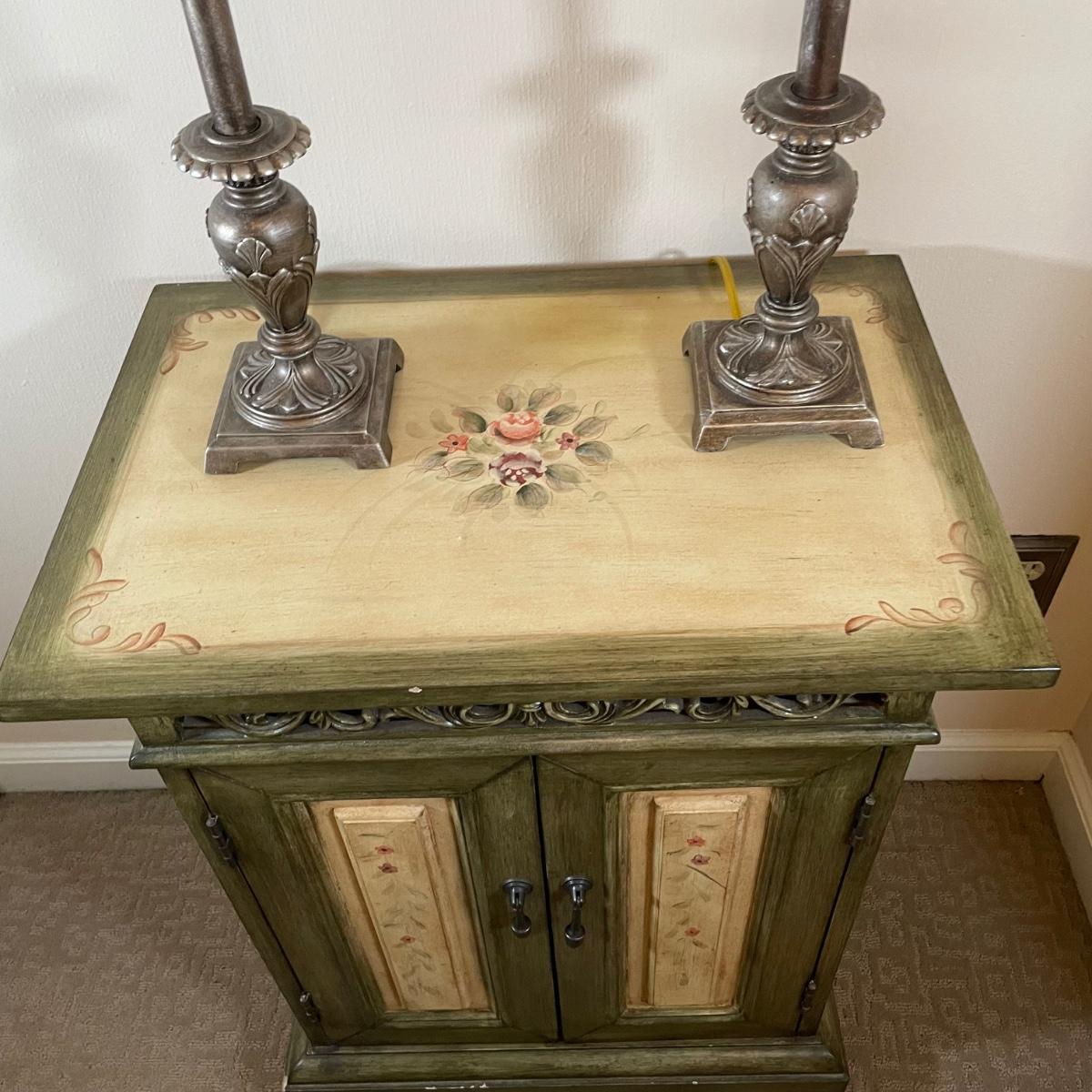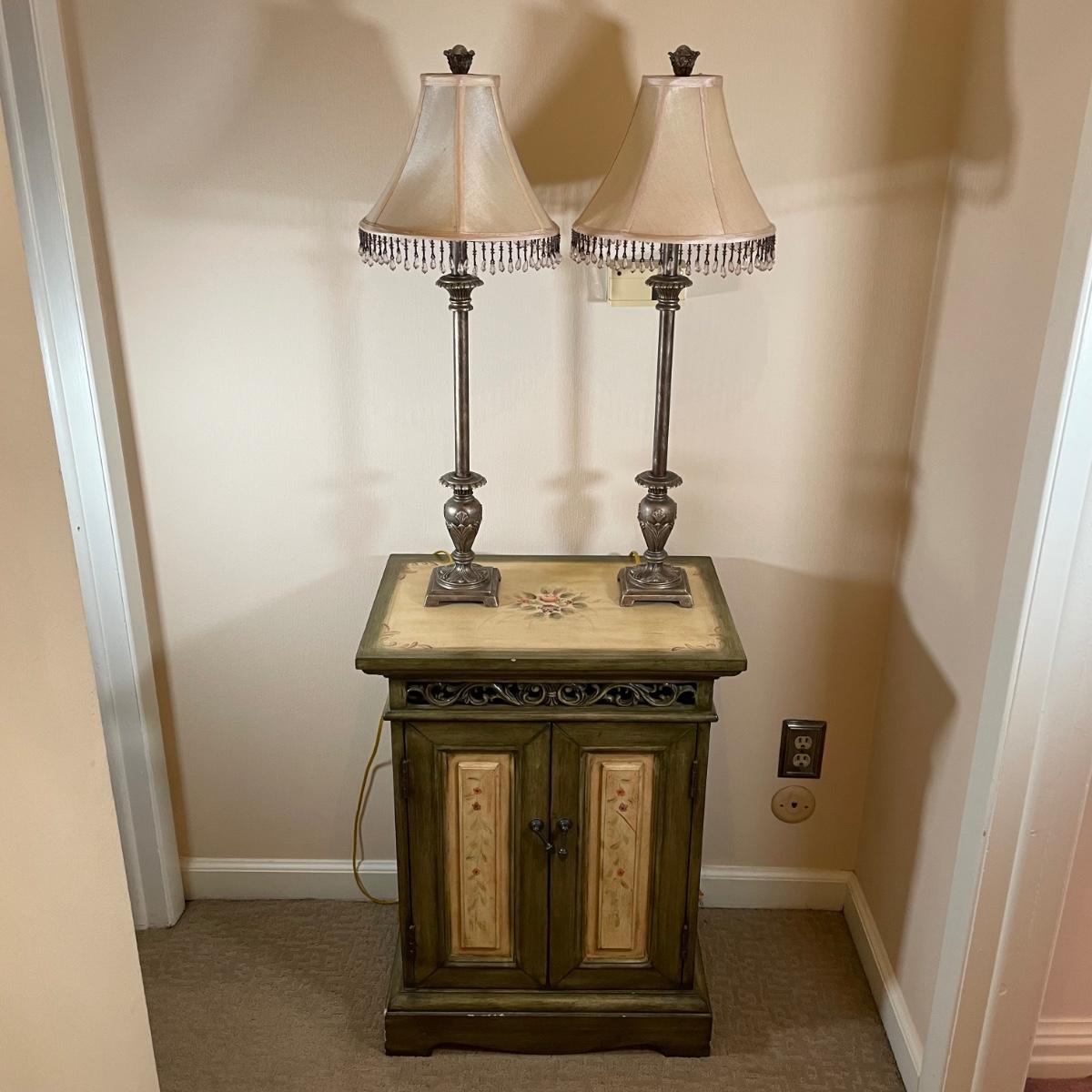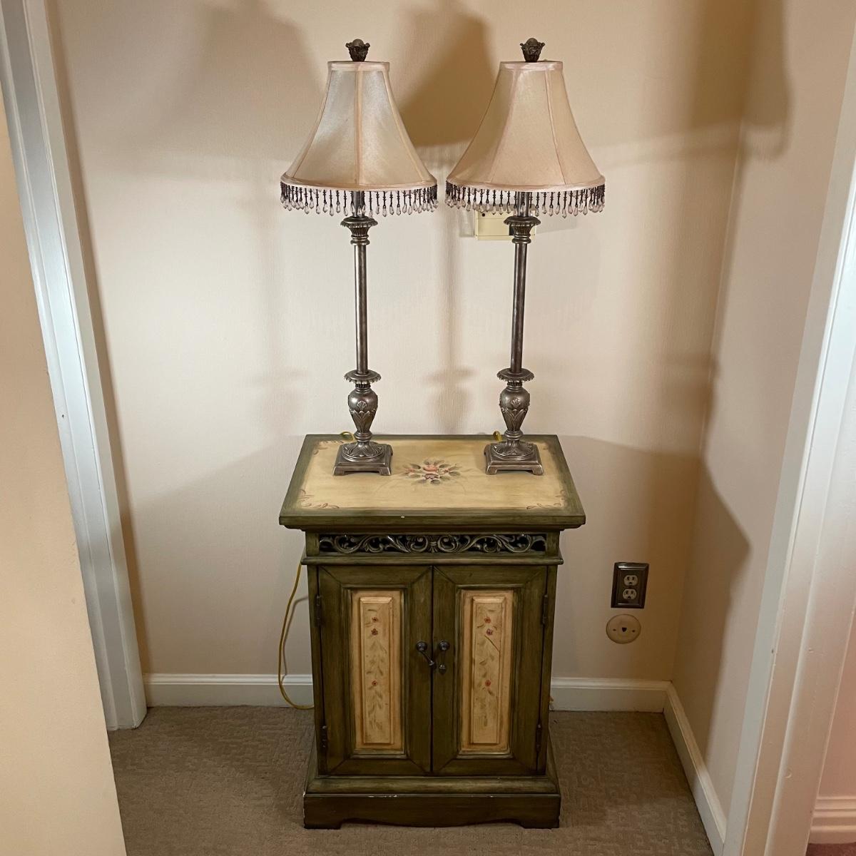 LOT 42X: Floral Painted Cabinet w/ Two Matching Lamps