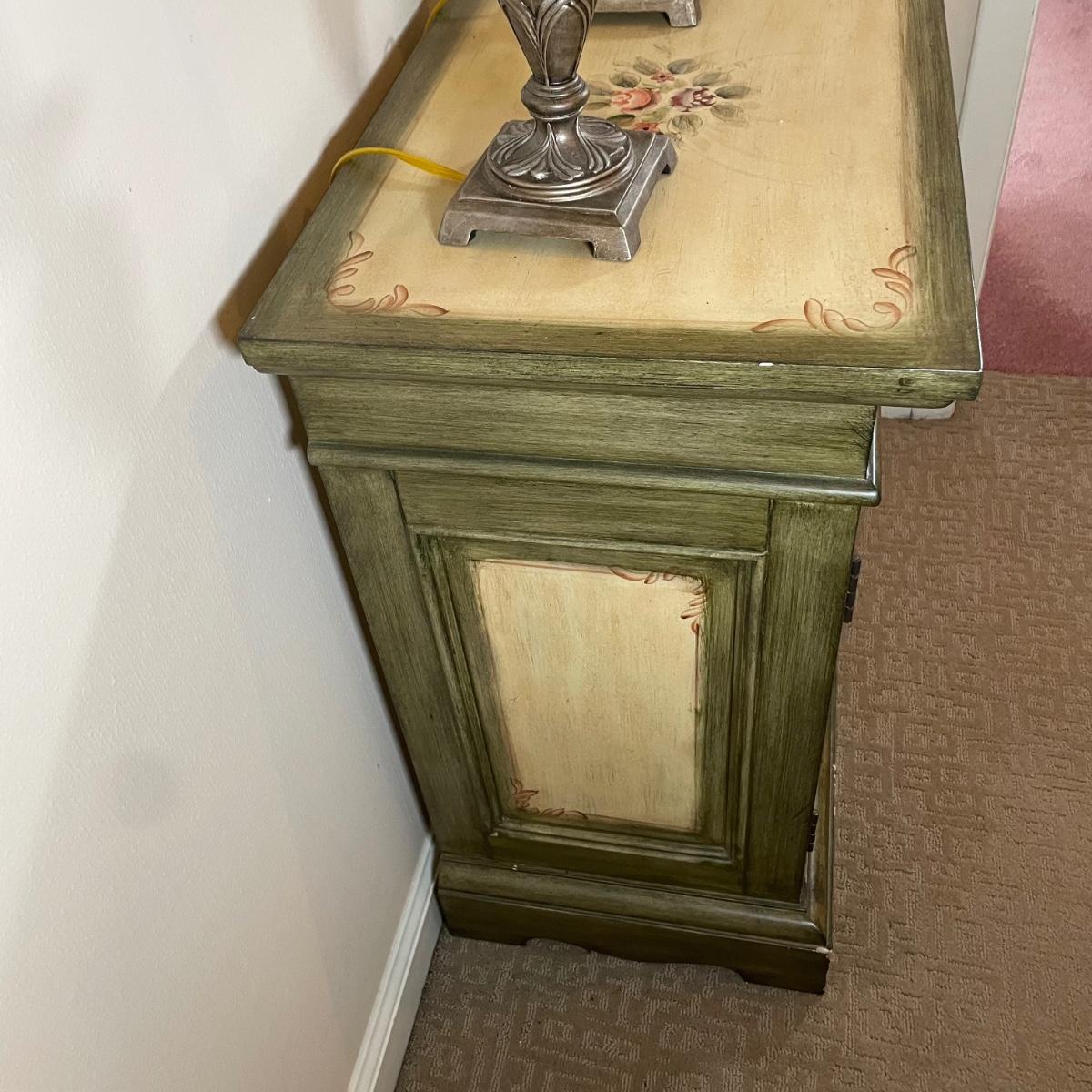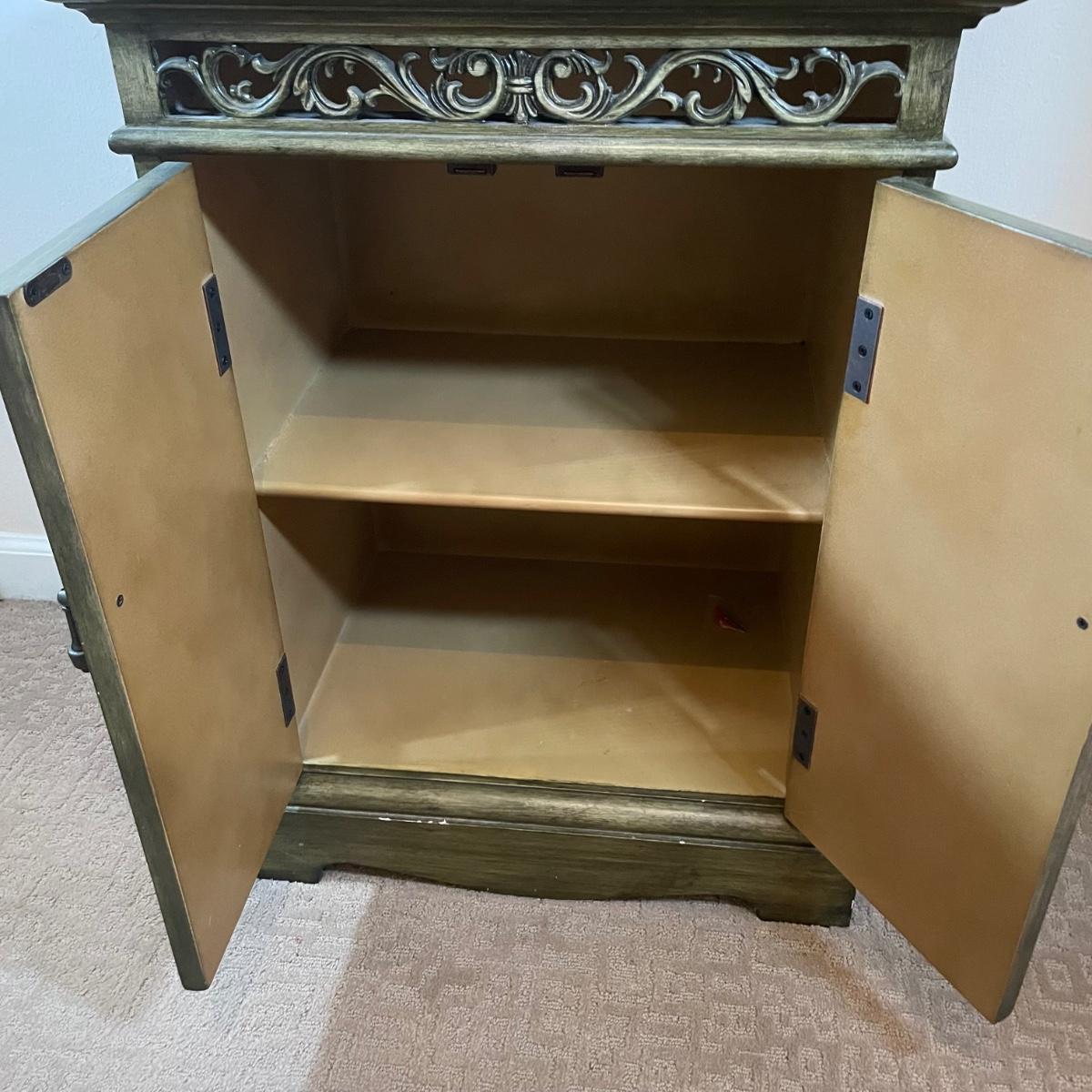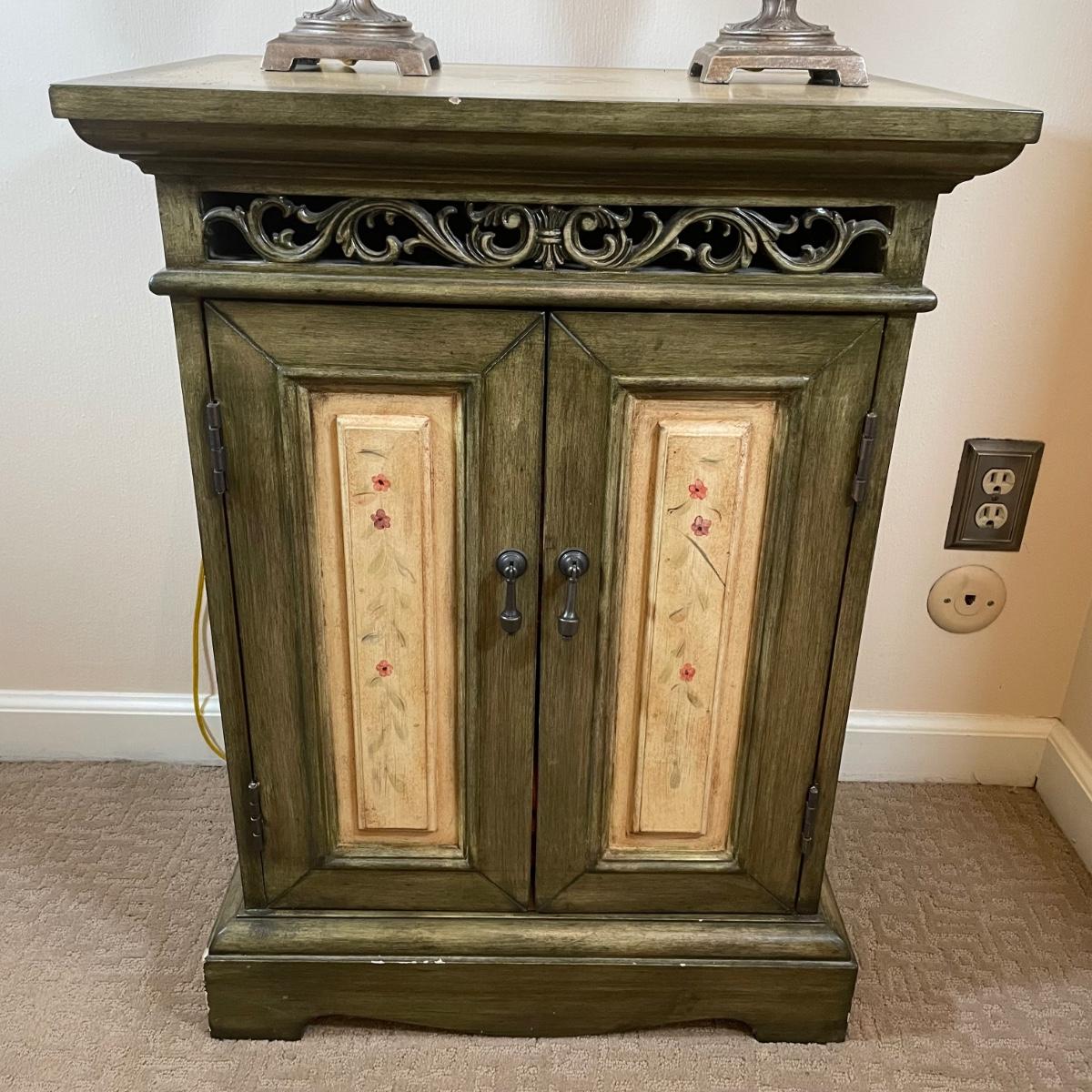 Cabinet is 22x15x30 - Please see all pictures as they are the best representation of the items. The pictures show condition, measurements if taken, and what is included in the lot. Due to the large amount that we photograph and the time frame, we are not always able to take measurements. All items unless noted, are pre-owned and have been used. If you purchased furniture, you must bring help. We do not allow one person to carry large furniture out on their own. Bring help, tools and a truck for the safety of our client’s homes, and your personal safety. Any damages that result to the property including walls, and floors due to moving of the furniture will be charged to the buyer. Company policy. Thank you.