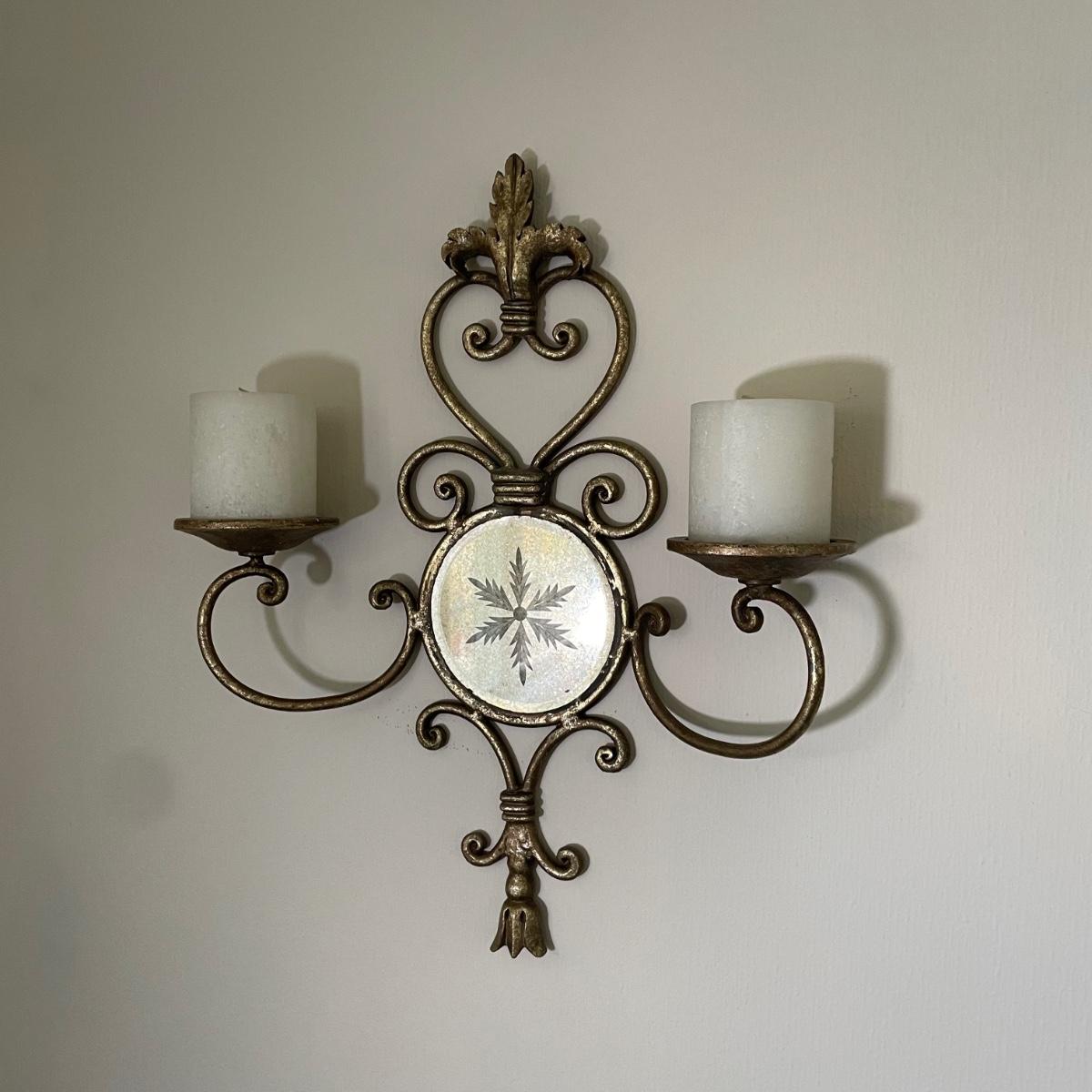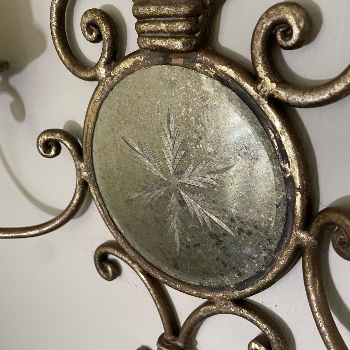 LOT 59F: Large Octagon Shaped Mirror w/ Sconces