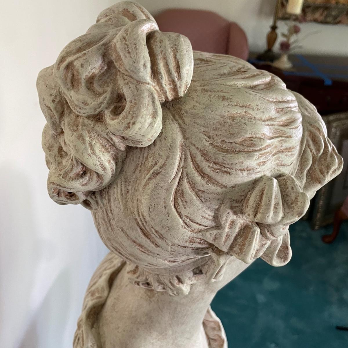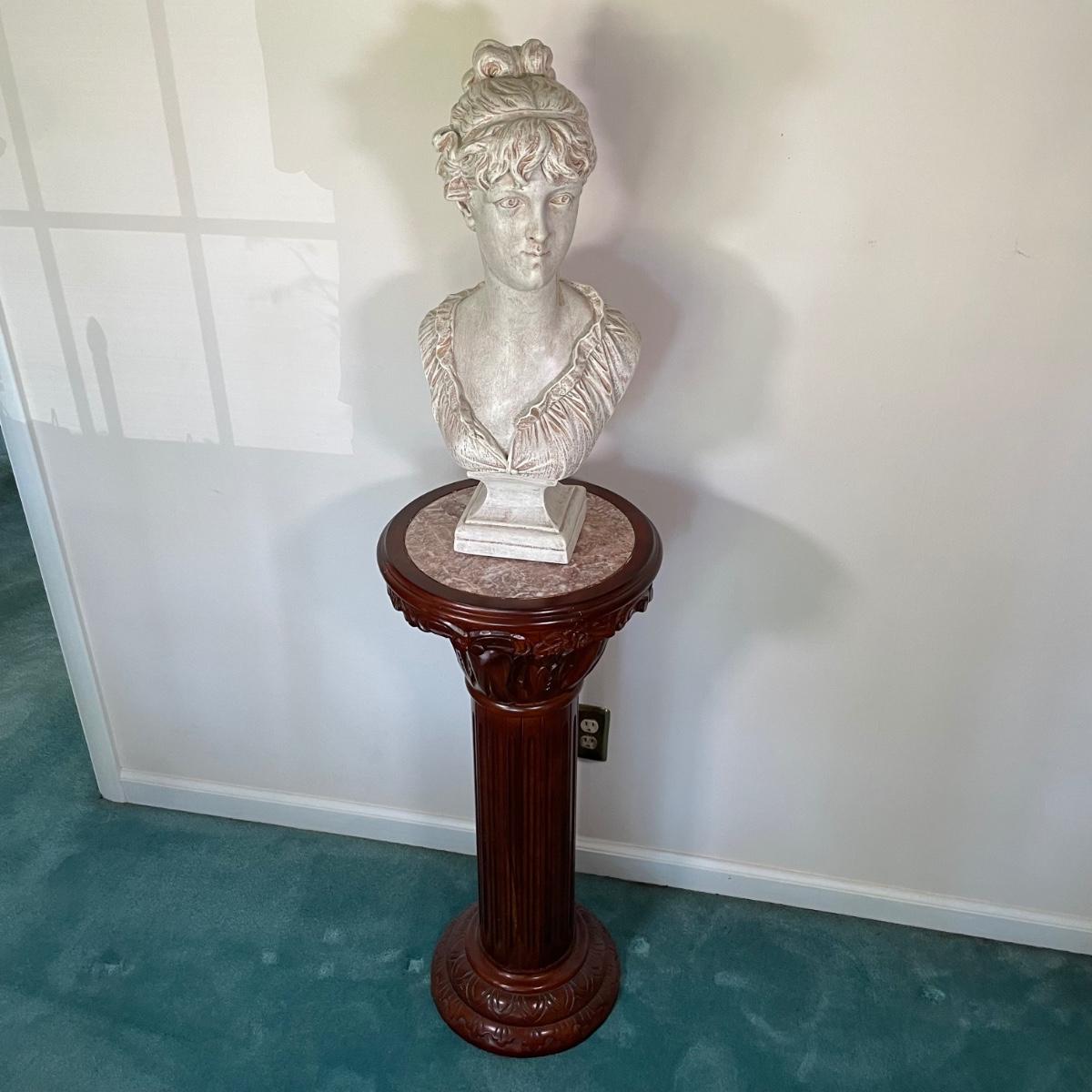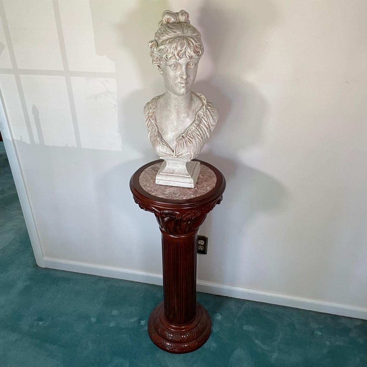 Bust is not real (maybe ceramic), pedestal is 16x36 - Please see all pictures as they are the best representation of the items. The pictures show condition, measurements if taken, and what is included in the lot. Due to the large amount that we photograph and the time frame, we are not always able to take measurements. All items unless noted, are pre-owned and have been used. If you purchased furniture, you must bring help. We do not allow one person to carry large furniture out on their own. Bring help, tools and a truck for the safety of our client’s homes, and your personal safety. Any damages that result to the property including walls, and floors due to moving of the furniture will be charged to the buyer. Company policy. Thank you.