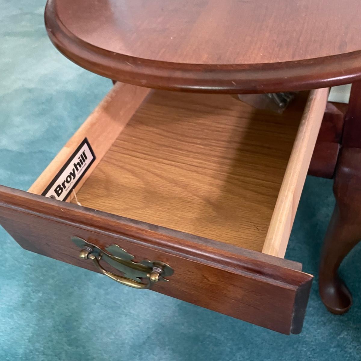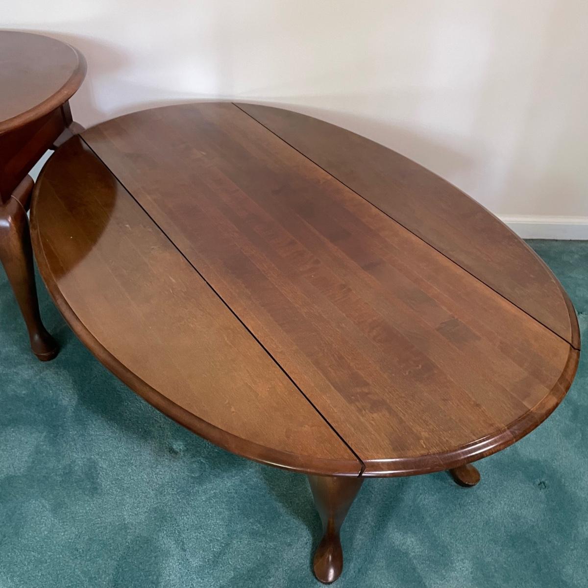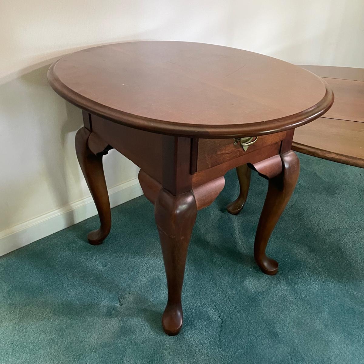 LOT 64F: Broyhill Round End Table & Oval Drop Leaf Table