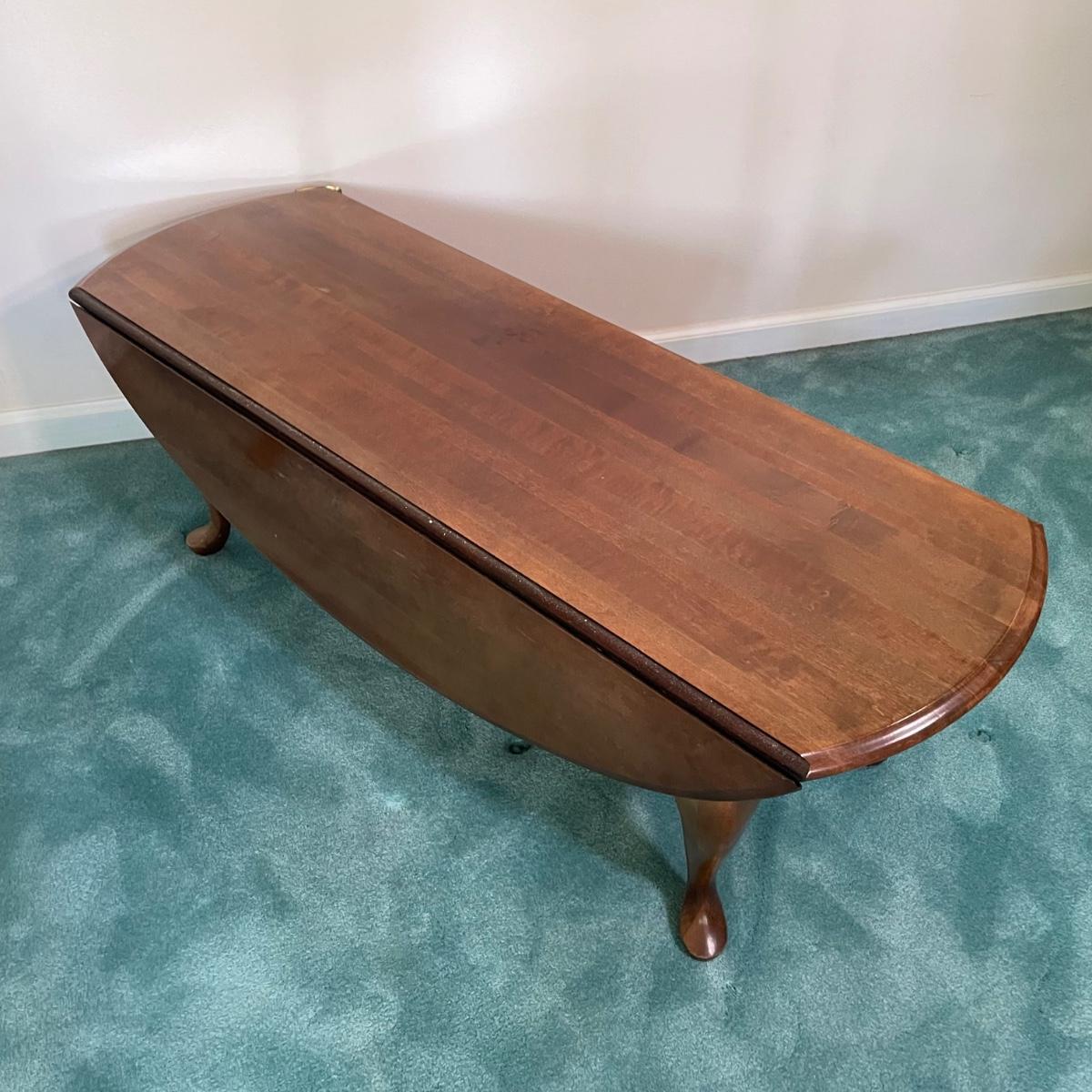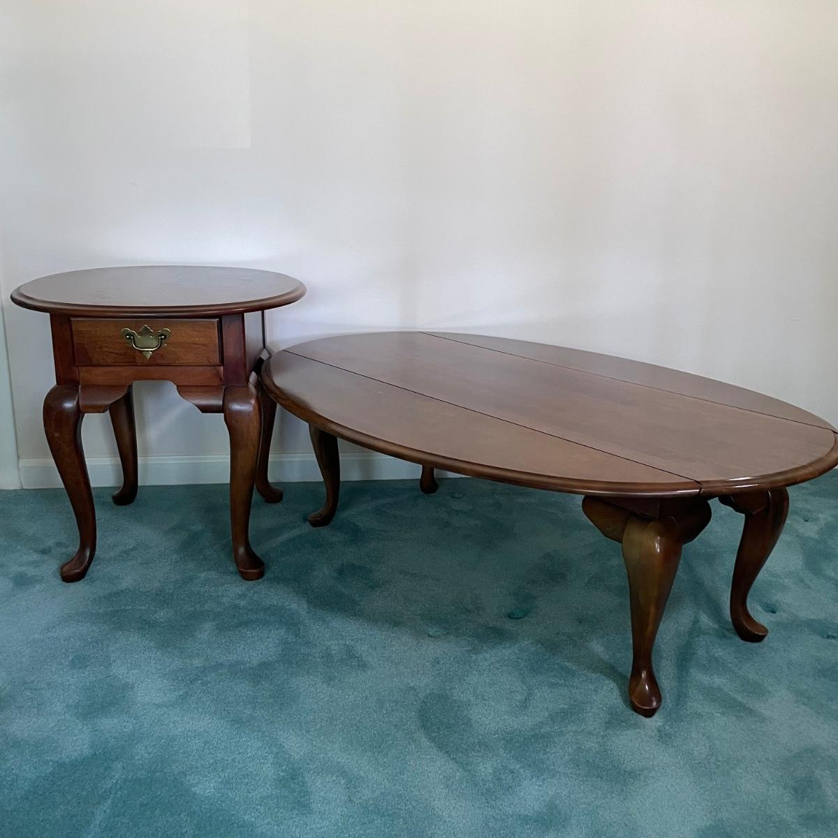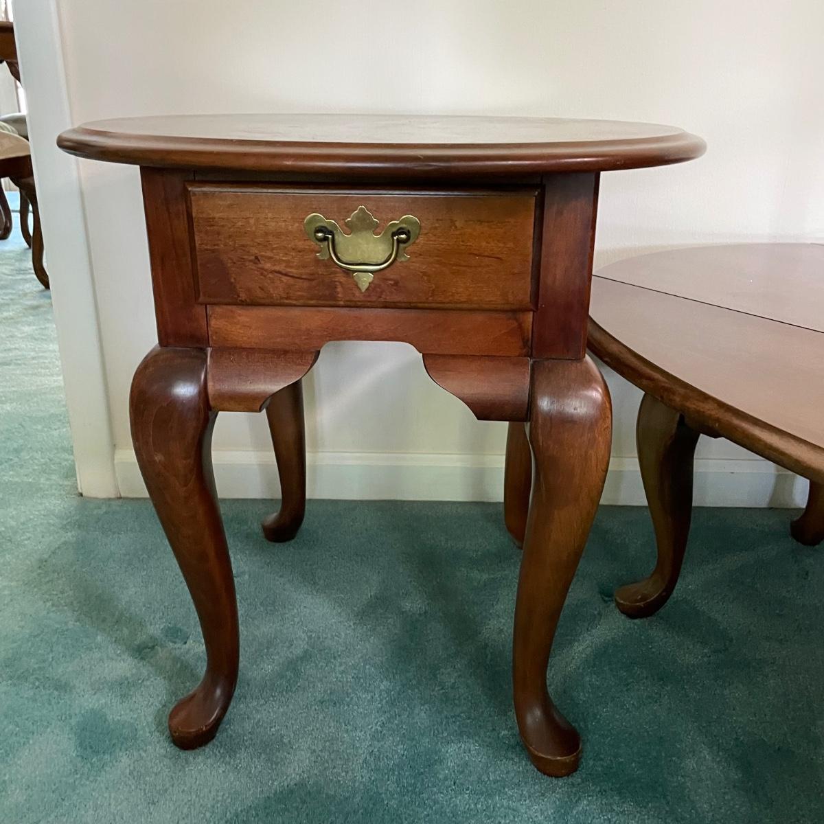 LOT 64F: Broyhill Round End Table & Oval Drop Leaf Table