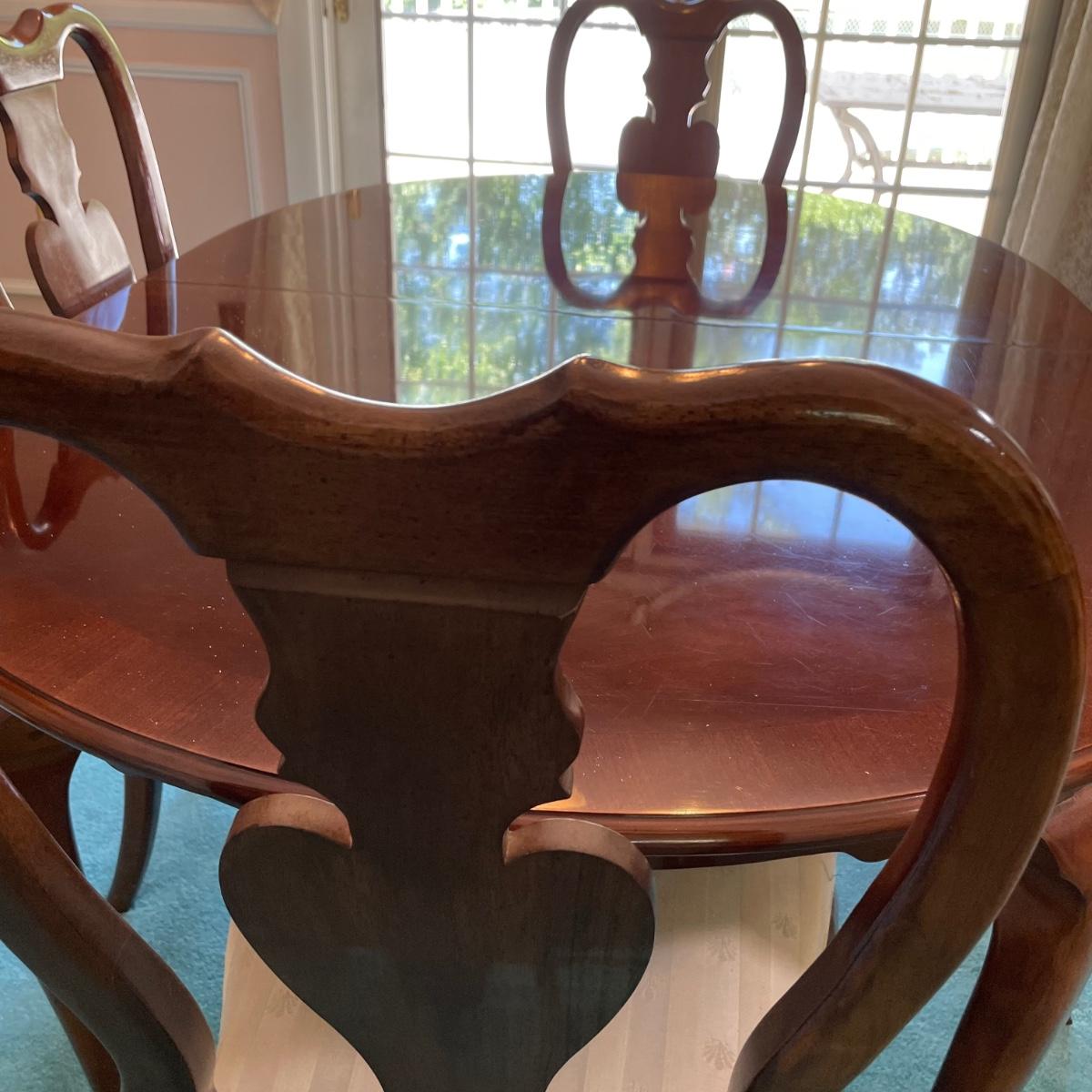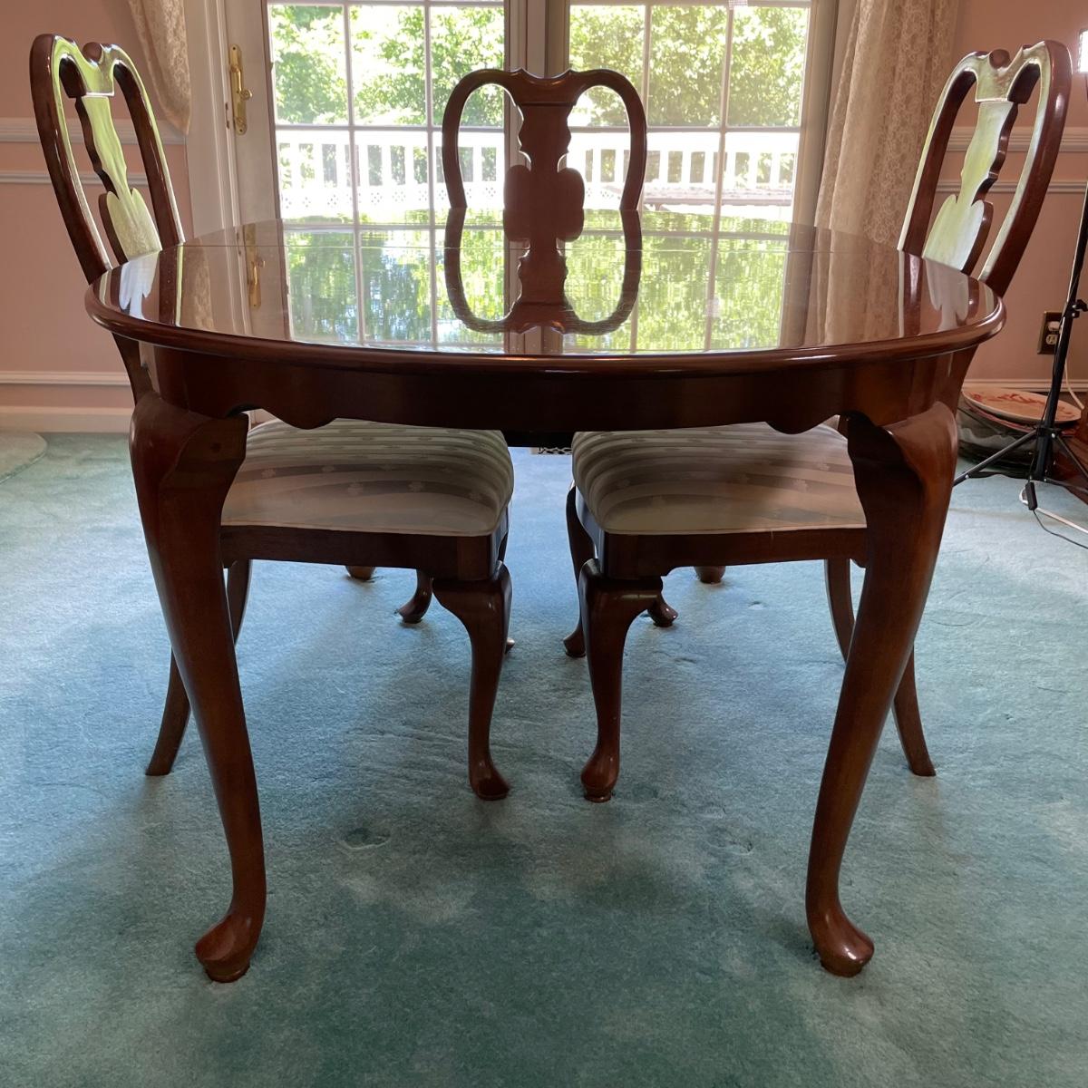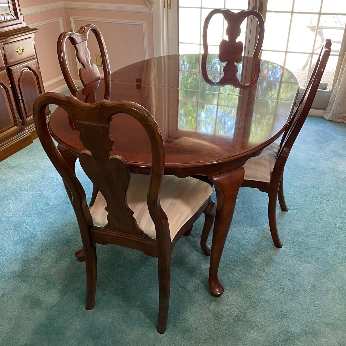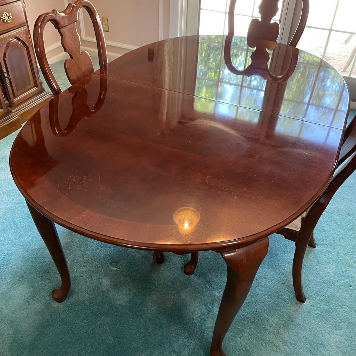 LOT 72D: Beautiful Universal Furniture Dining Table With Extra Leaf & Chairs