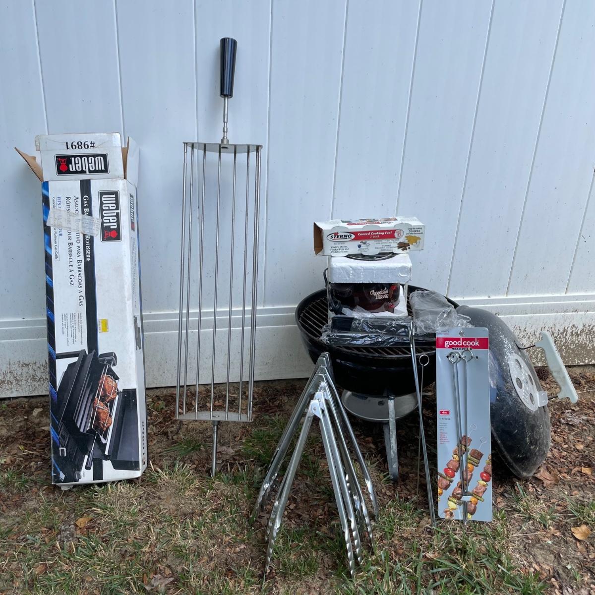LOT 78S: Grilling Essentials! Weber Grill, E Z Que, Tongs & More