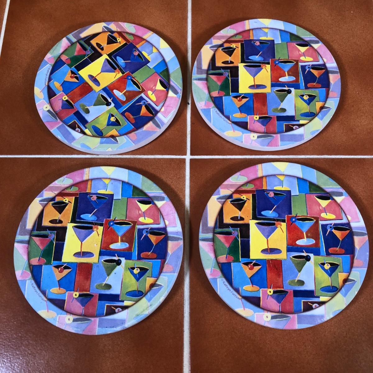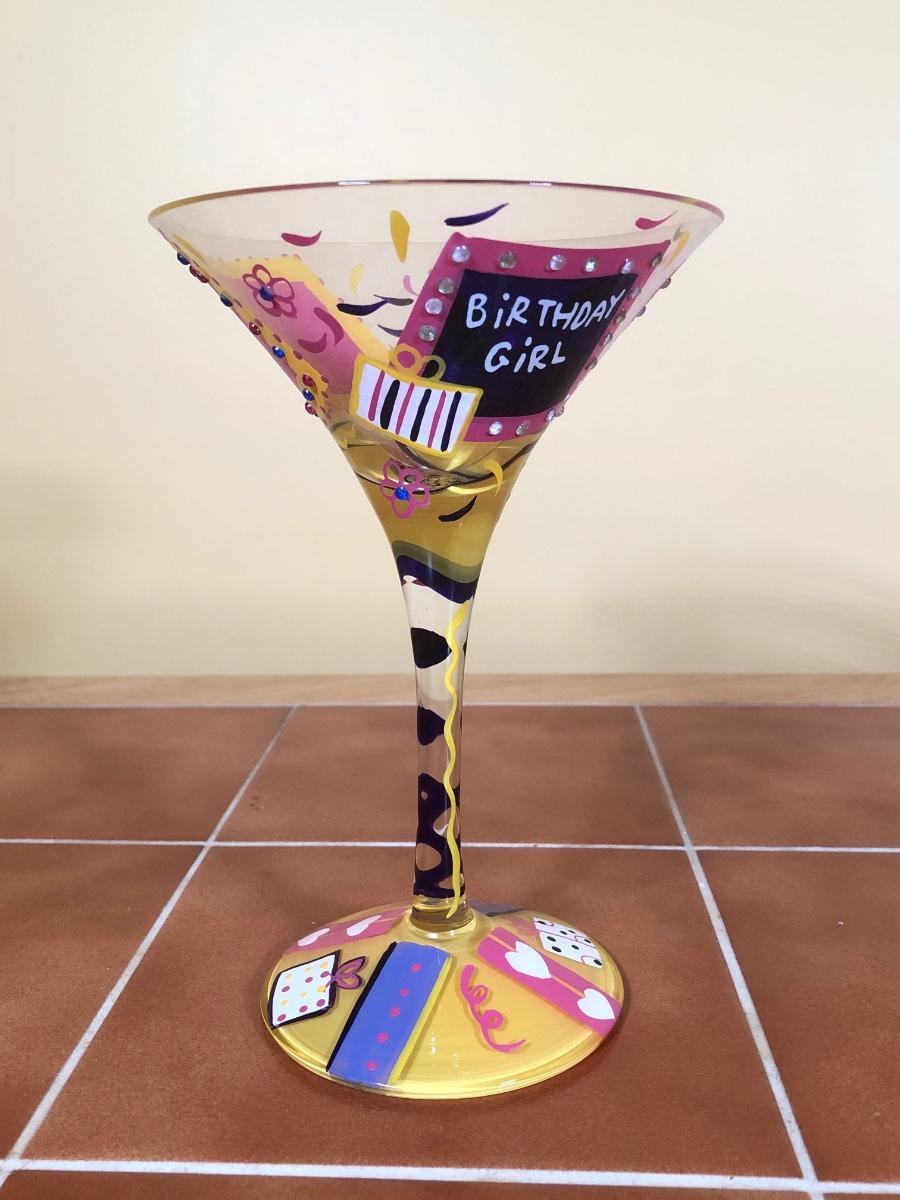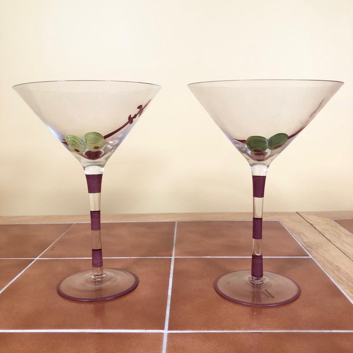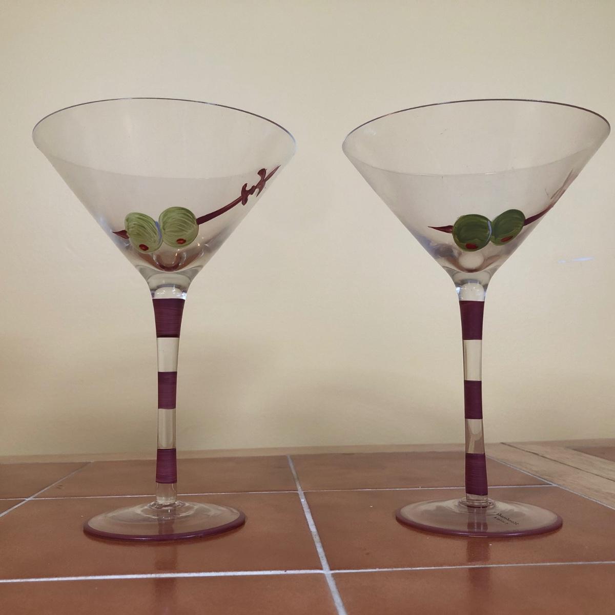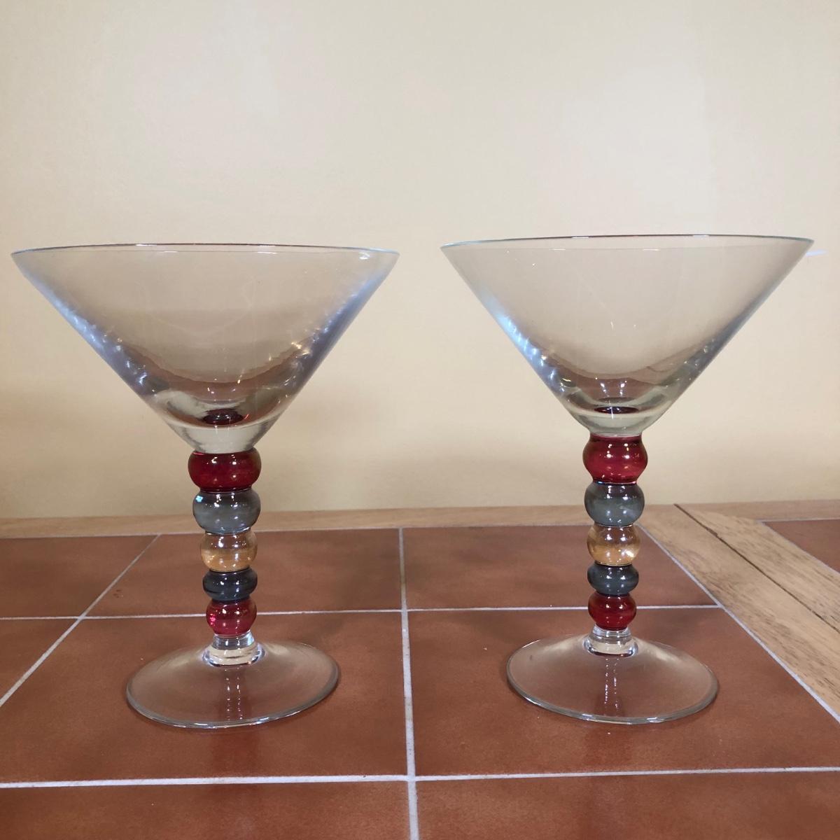 LOT 83B: Advantage Industries Neon Martini Sign Model AD-599 w/ Lolita Birthday Martini Glasses, Colorful Pearl Stem Glasses, Handpainted Glasses & Cork Back Coasters