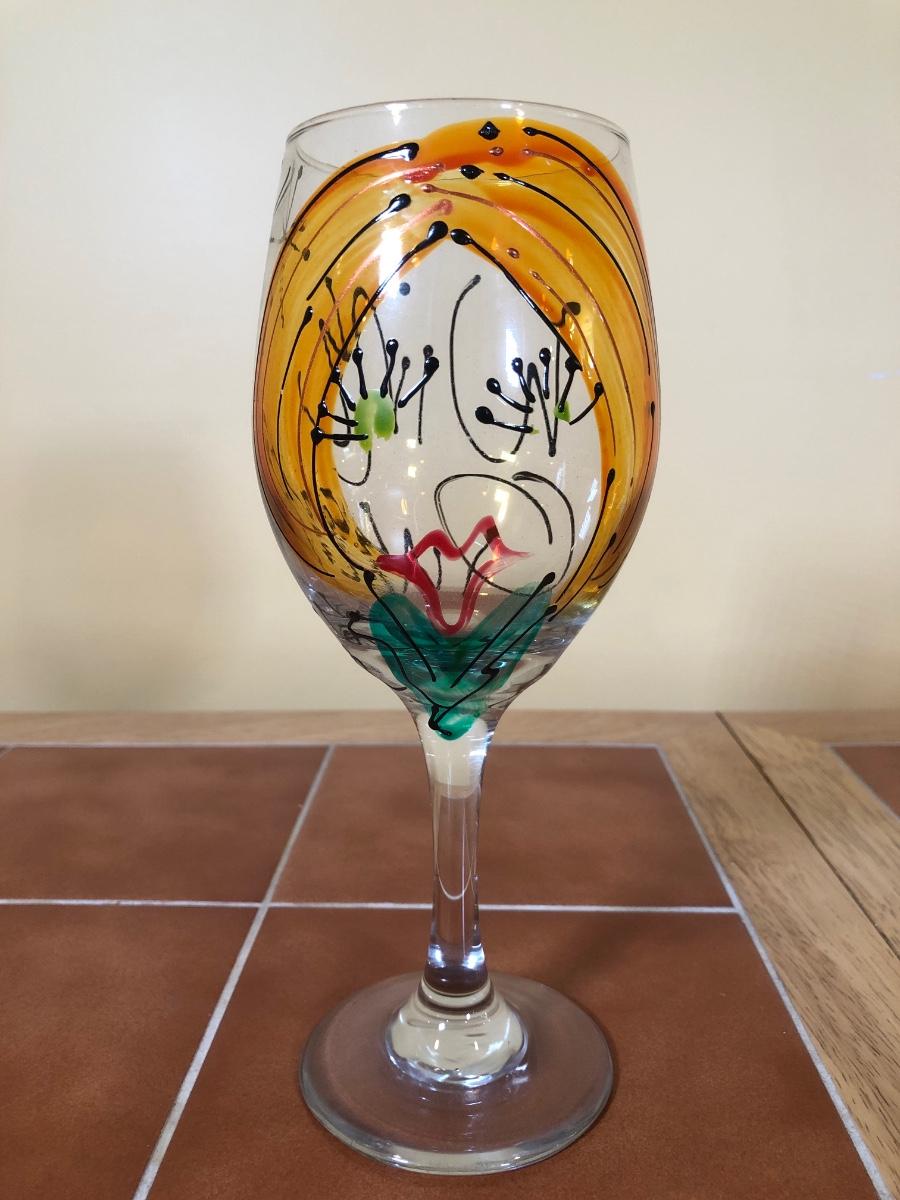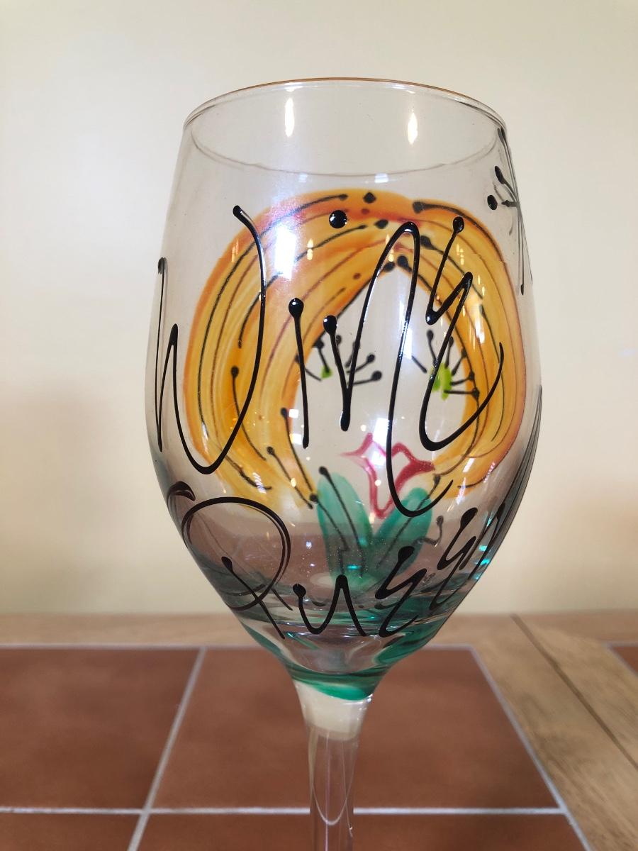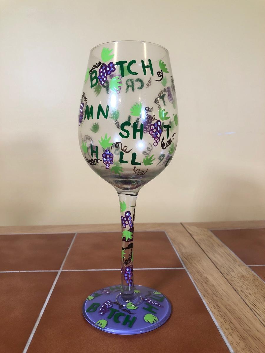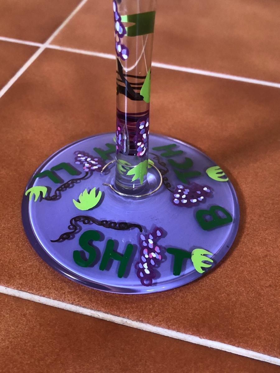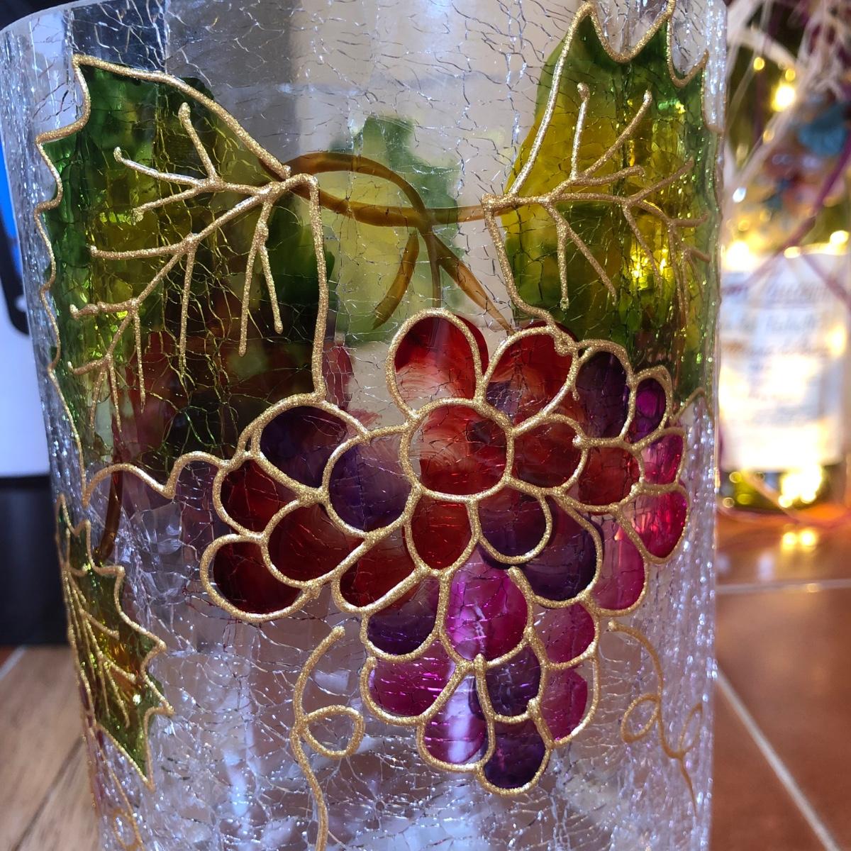 LOT 86B: NIB The Sharper Image Wine Chiller, Lolita "Dirty Wine Glass," Kate McRostie 3D Shadowbox Decor, Hand Painted Wine Queen Glass, Grape Motif Crackle Glass, Lit Decor Bottle & Funky Wine Rack