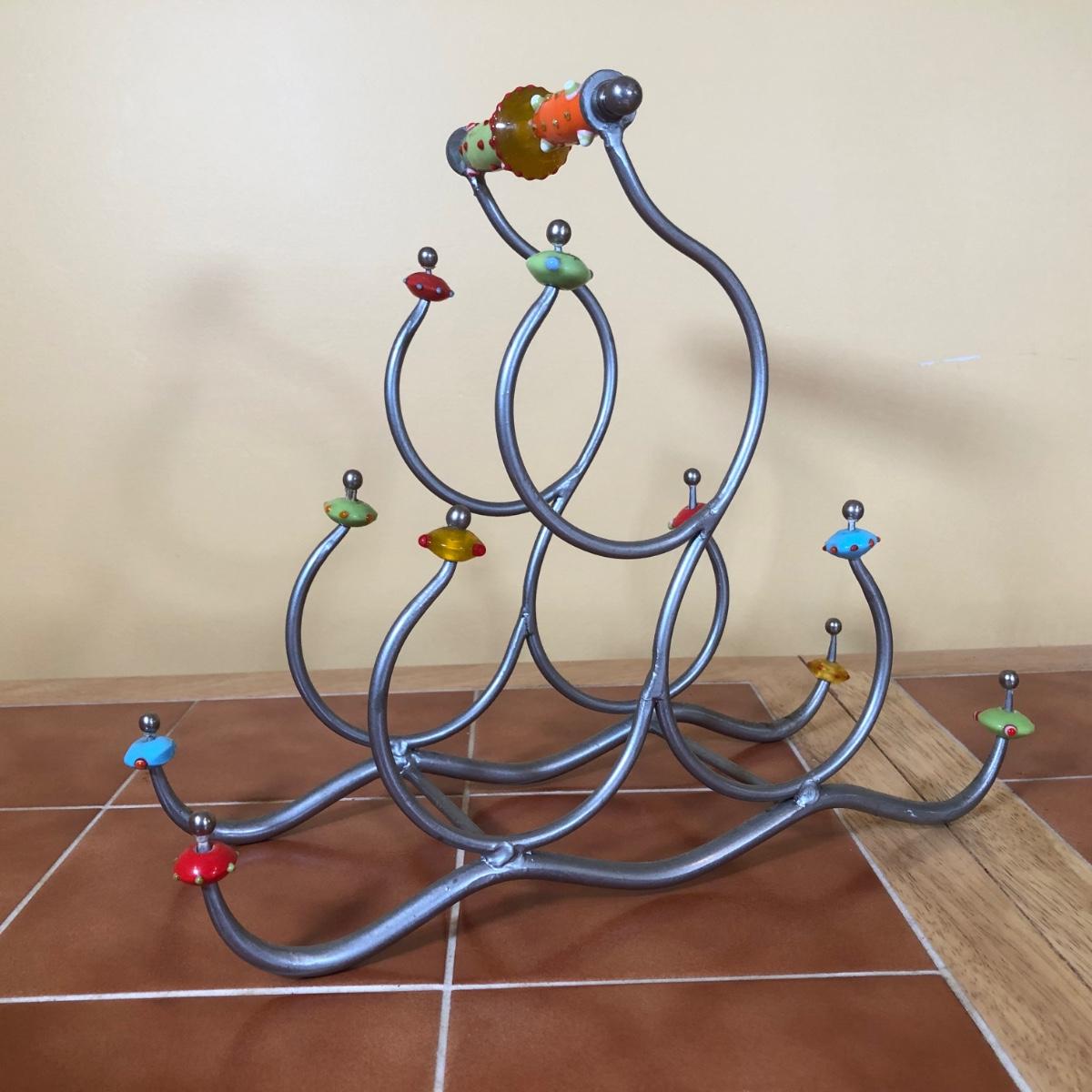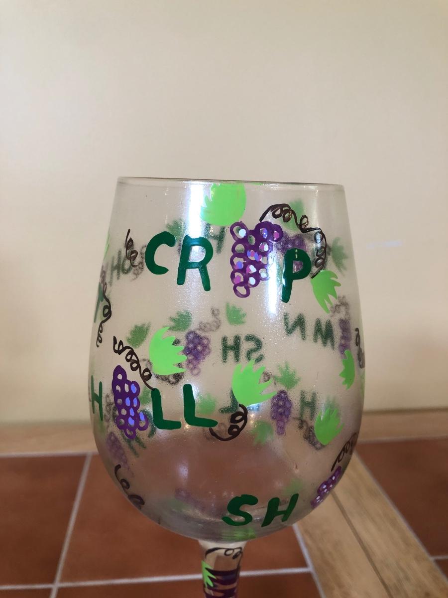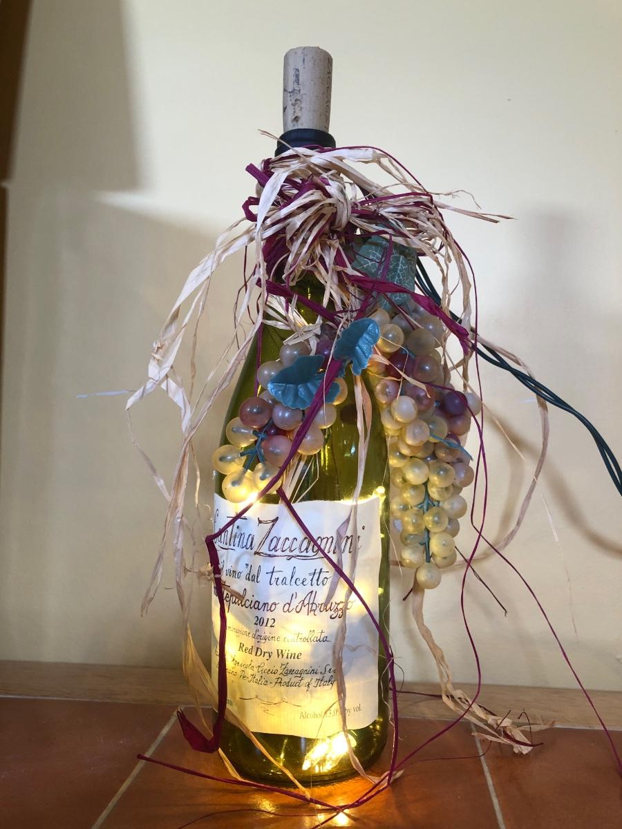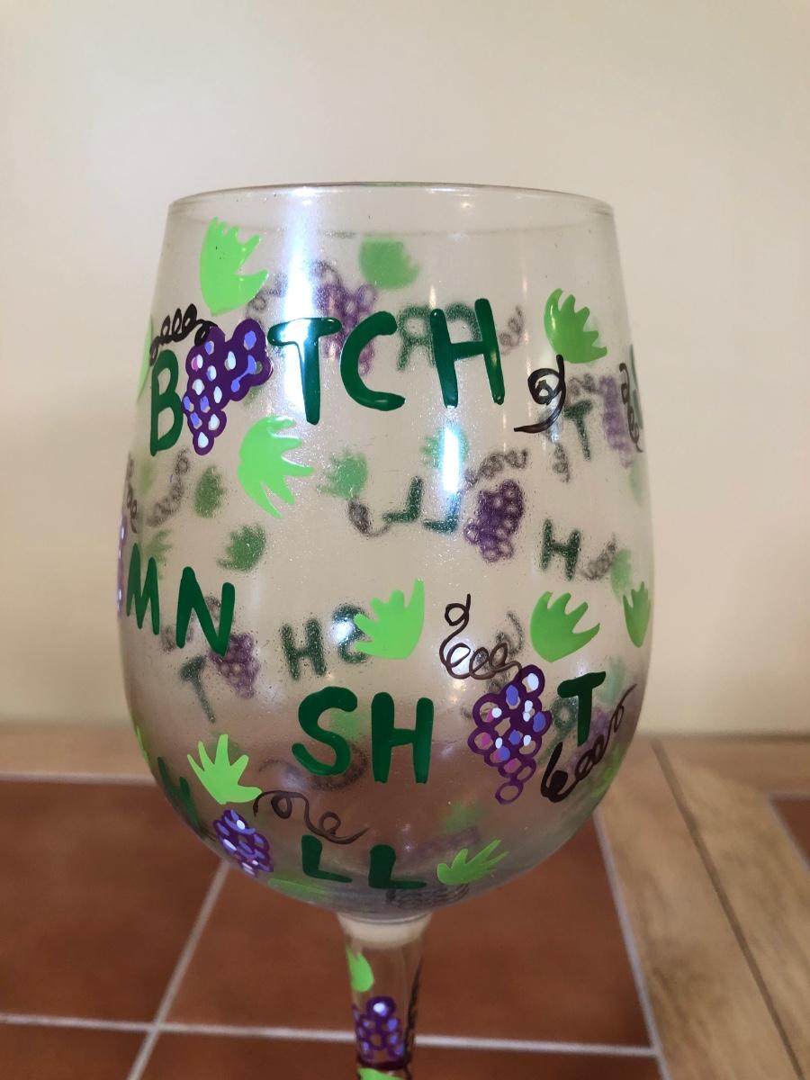 LOT 86B: NIB The Sharper Image Wine Chiller, Lolita "Dirty Wine Glass," Kate McRostie 3D Shadowbox Decor, Hand Painted Wine Queen Glass, Grape Motif Crackle Glass, Lit Decor Bottle & Funky Wine Rack