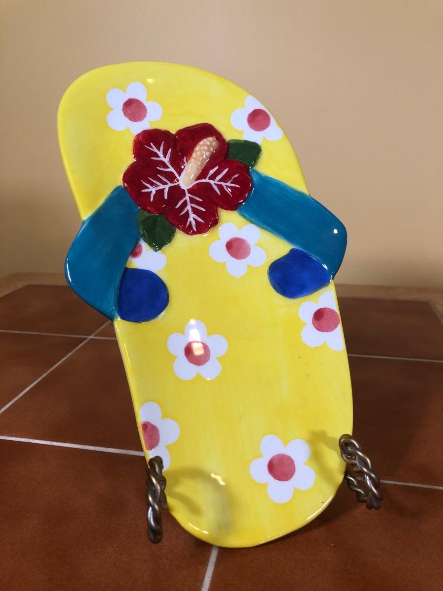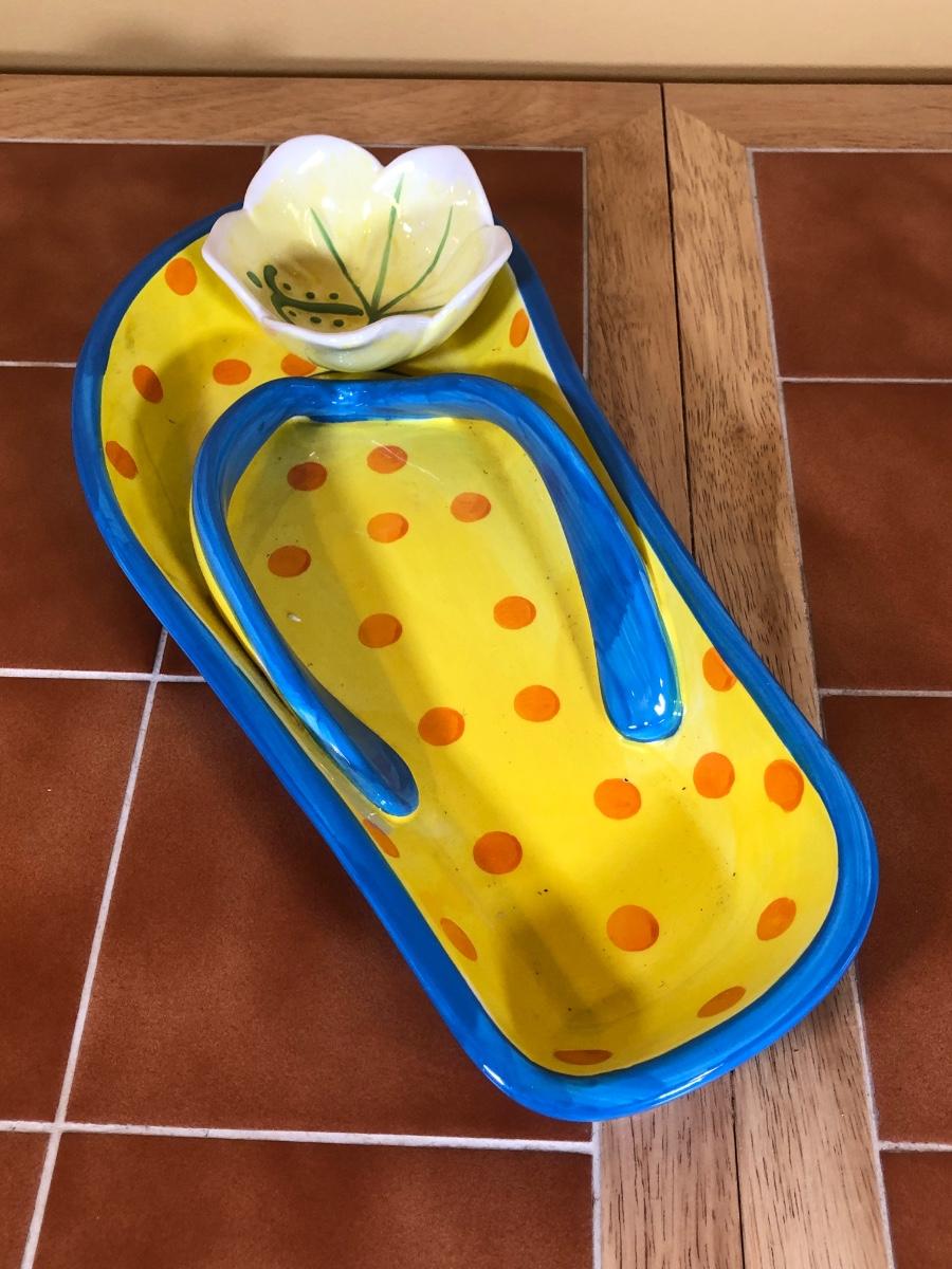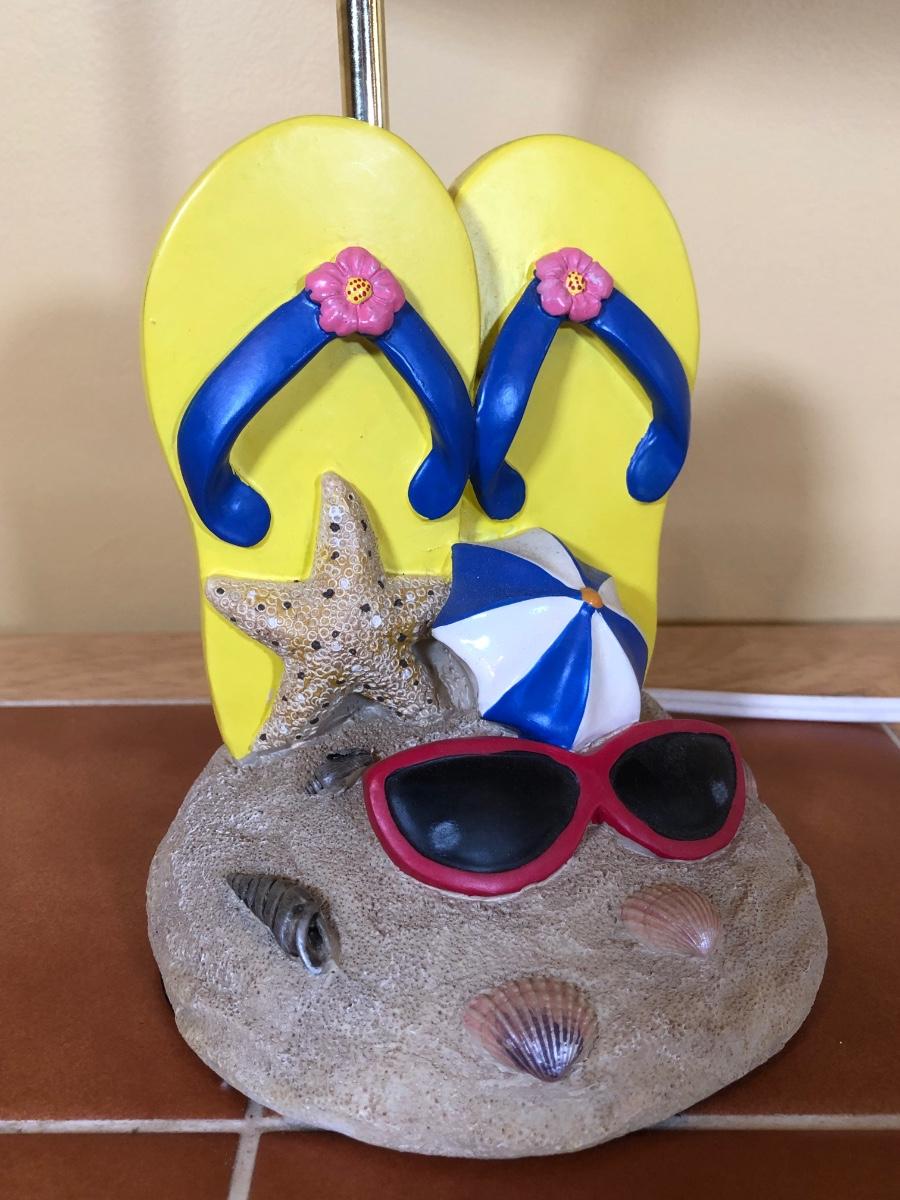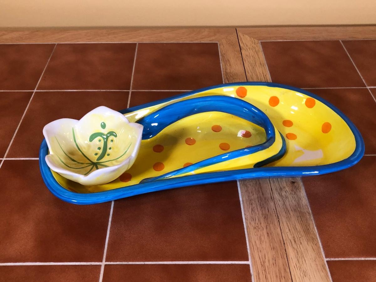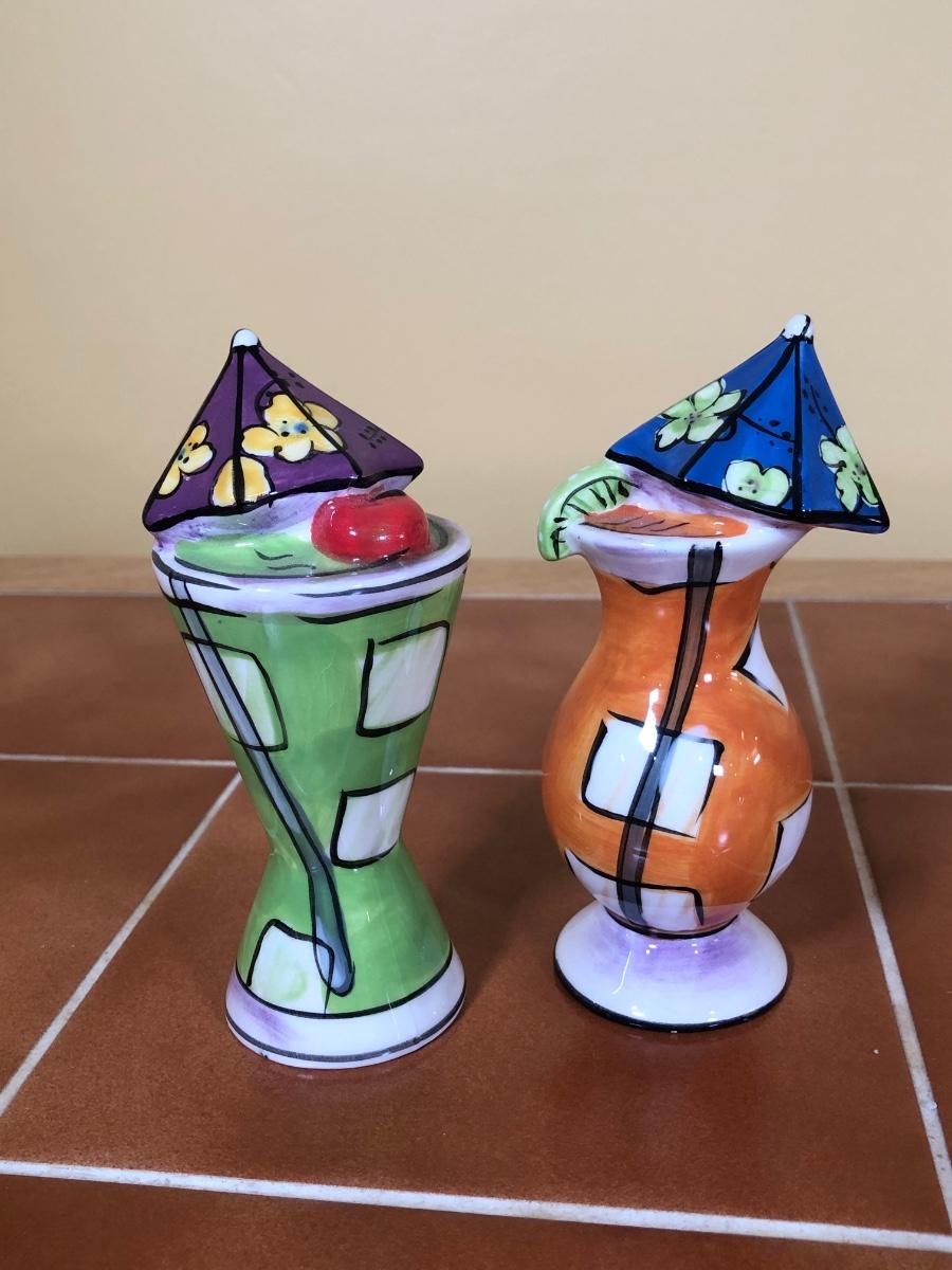 LOT 88B: Dennis East International Flip Flop Lamp & Serving Tray w/ Clay Art S&P Shakers, Cocktail Themed Dishes & More