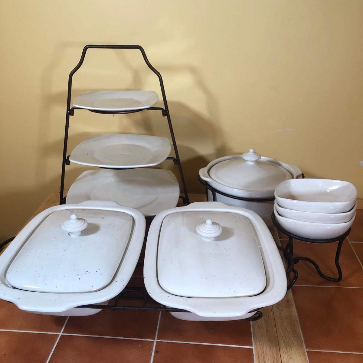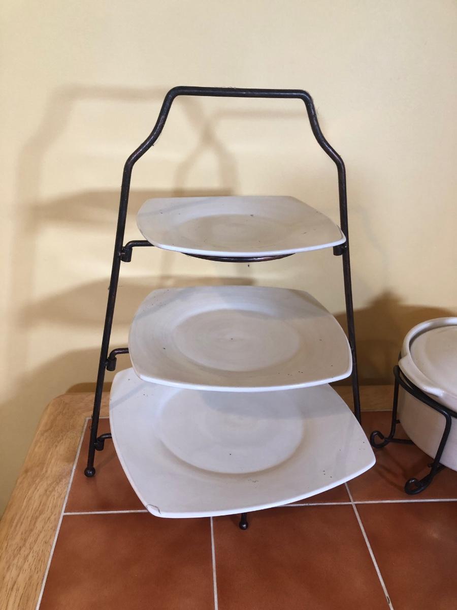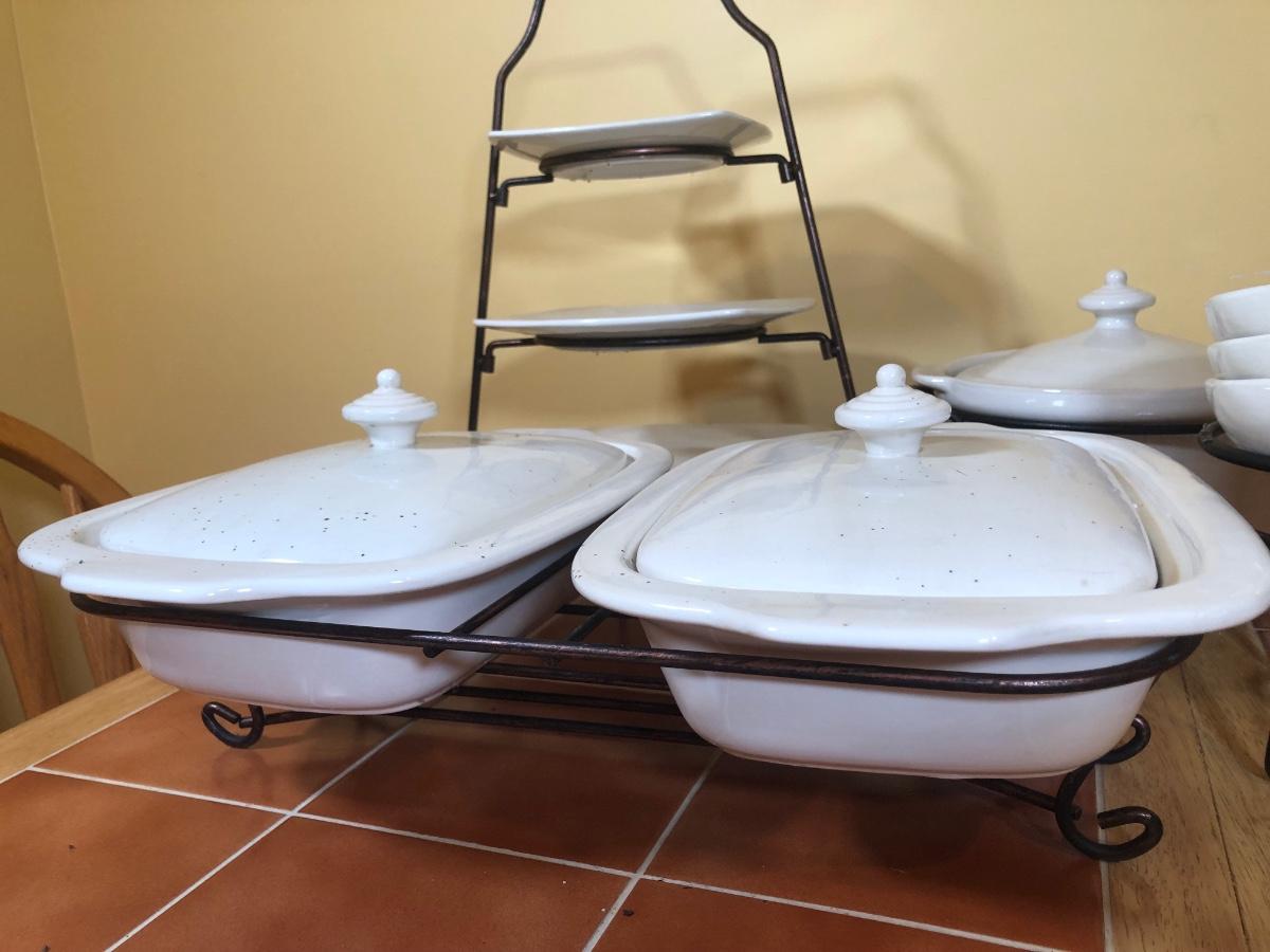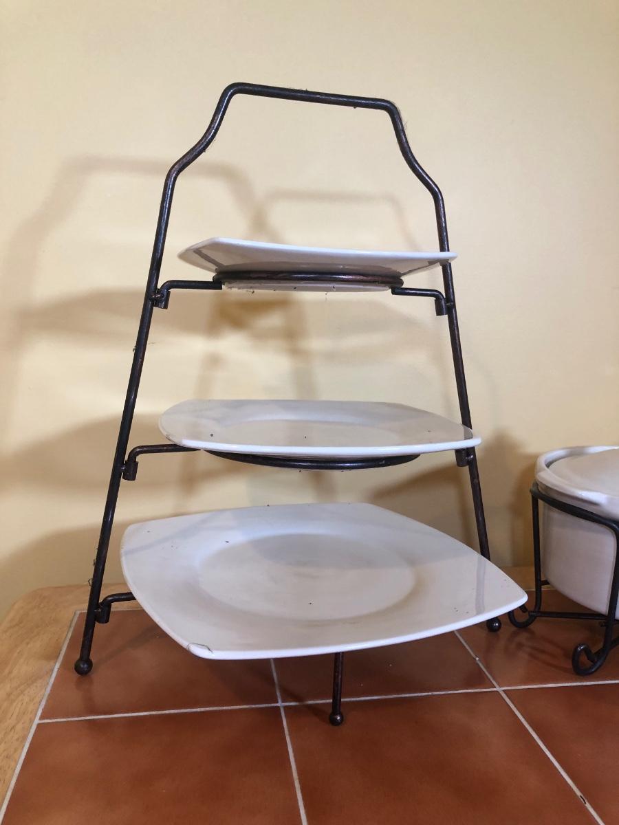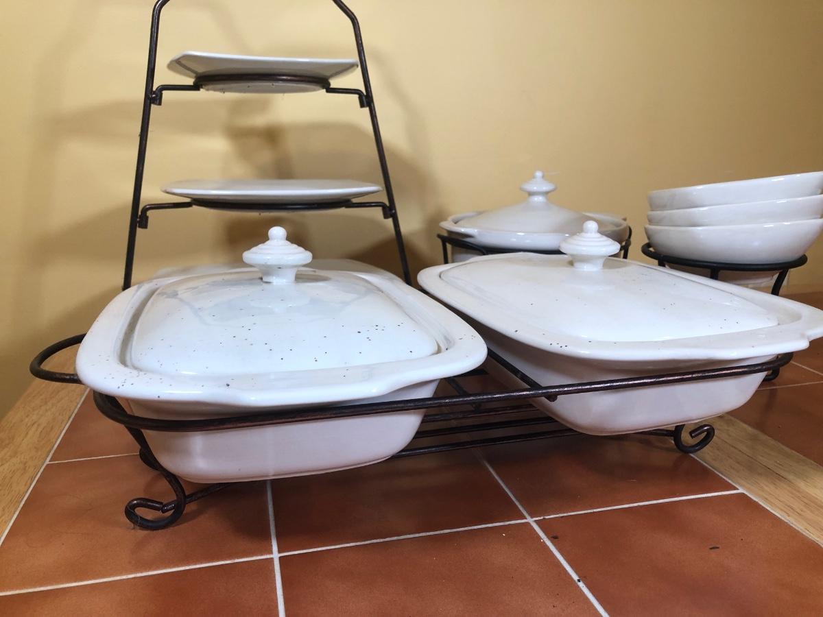LOT 118B: Alco Industries White Serving Dishes w/ Metal Stands