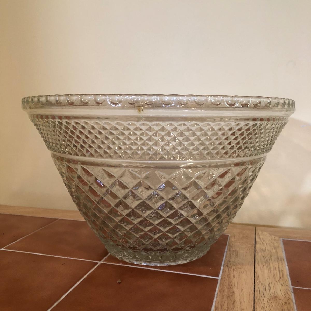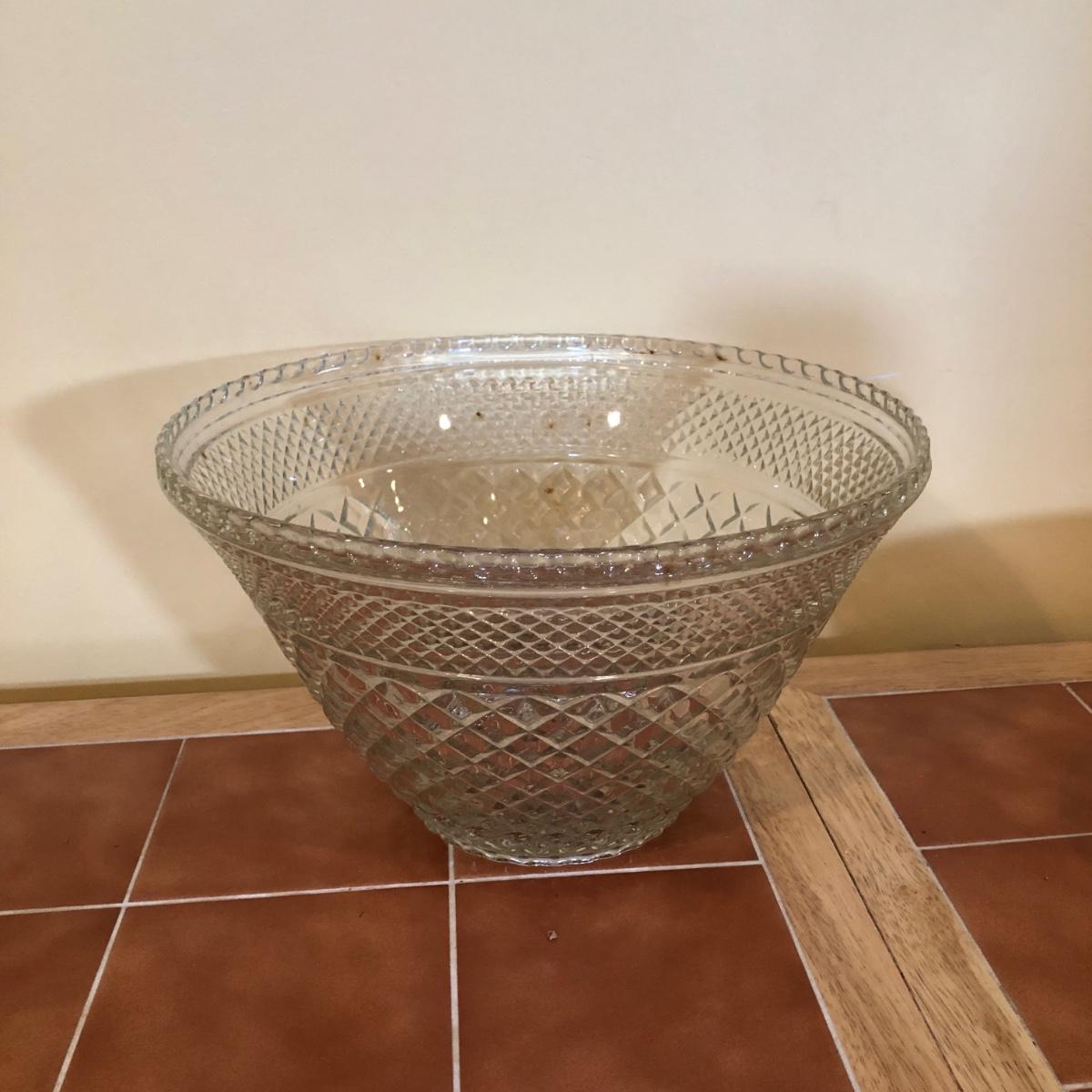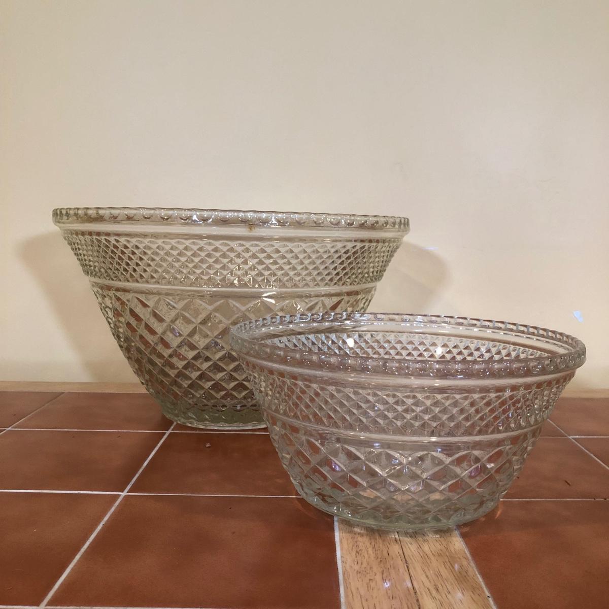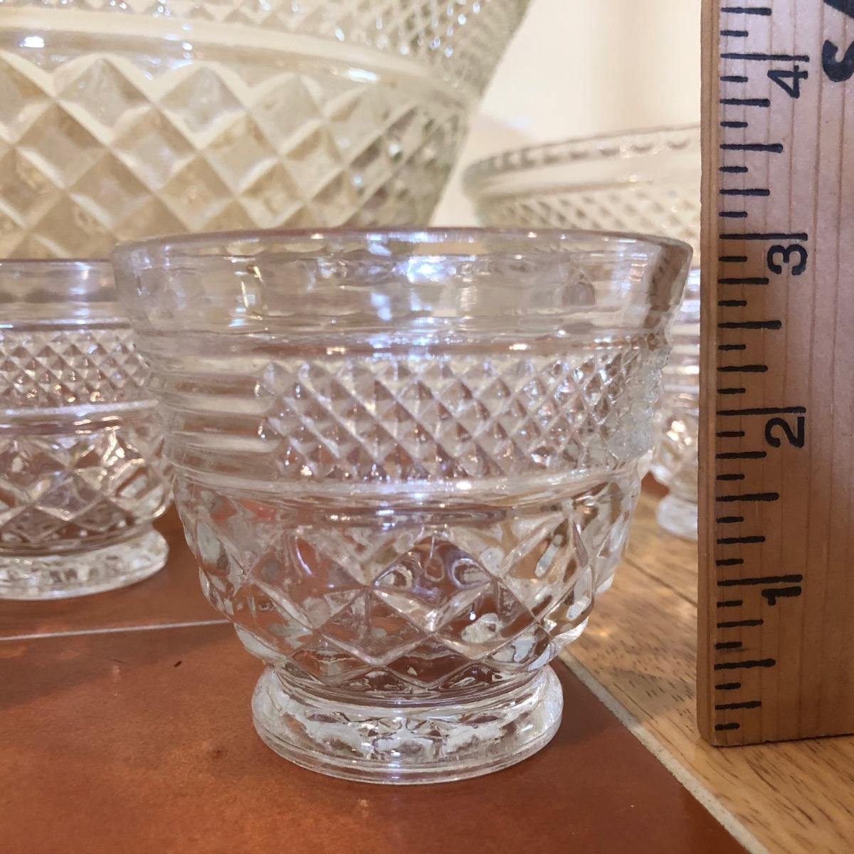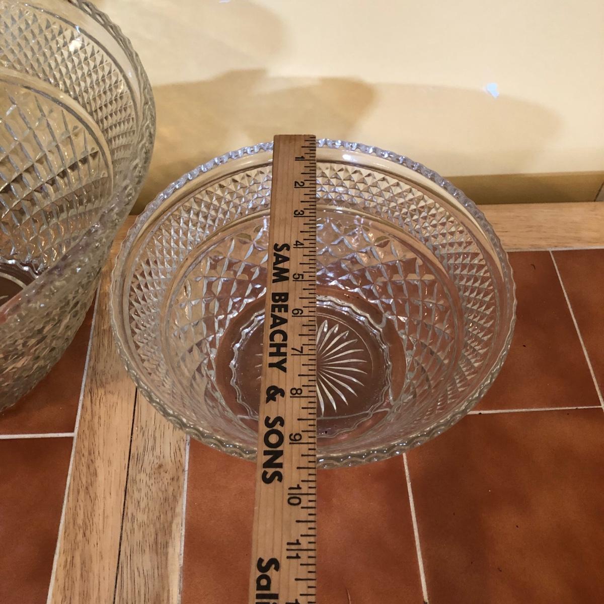 LOT 128B: Large & Medium Matching Glass Punch Bowls w/ 18 Cups