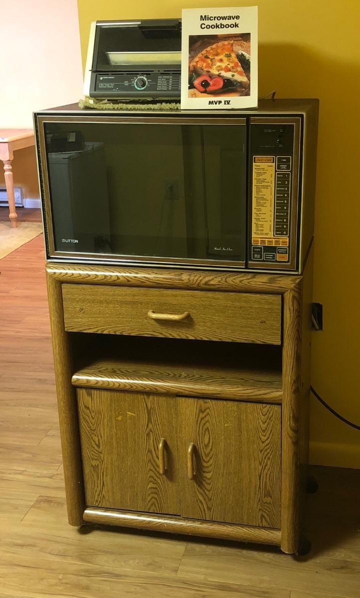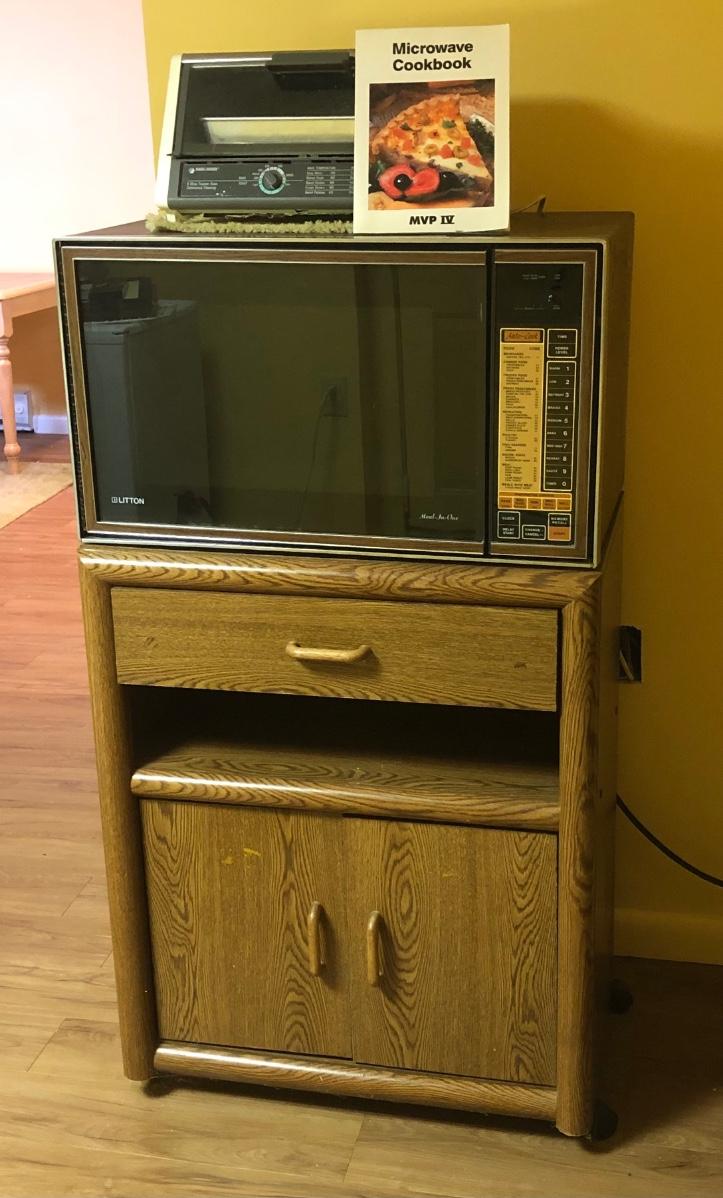 LOT 129B: Black & Decker Toaster Oven Model T670-TY2, Vintage Litton Microwave Oven Model 1585.000 & Rolling Cart