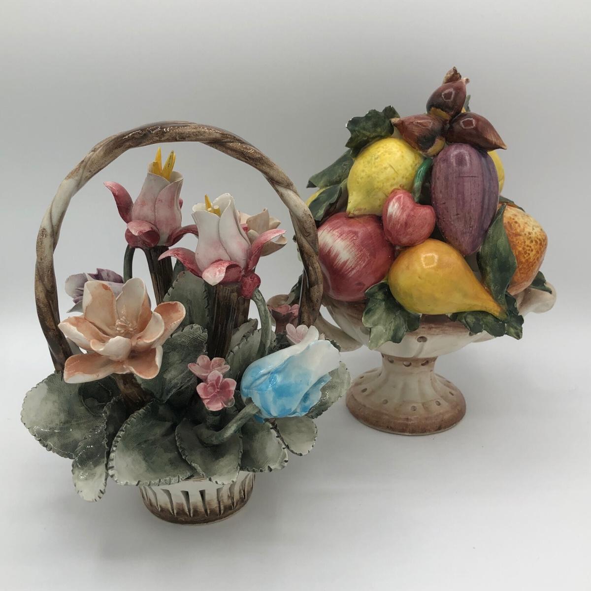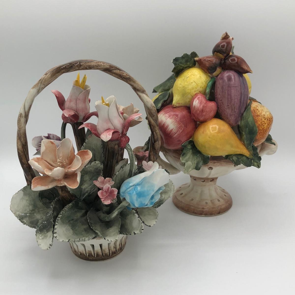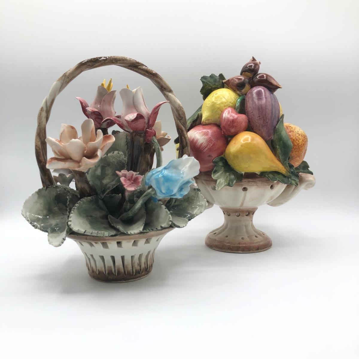 LOT 145K: Floral Porcelain Basket & Ceramic Fruit Basket
