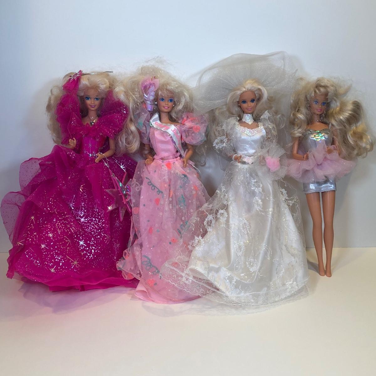 LOT 146K: Vintage Mattel Barbies - 1991 Sparkle Eyes, 1989 Wedding Fantasy, 1990 Happy Birthday & 1990 Happy Holidays