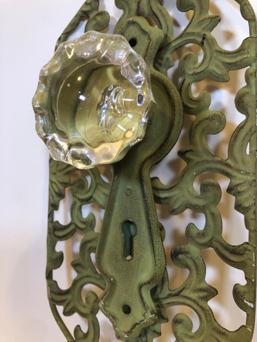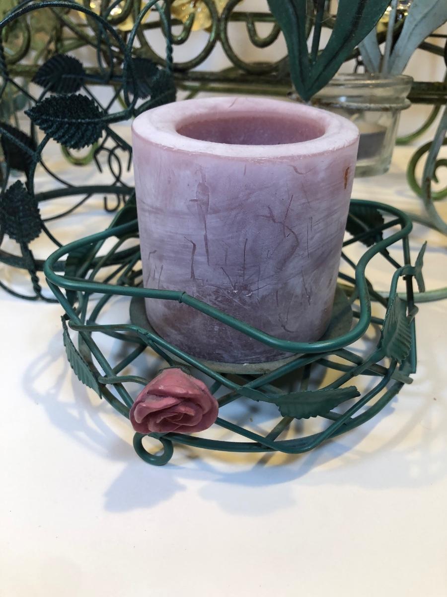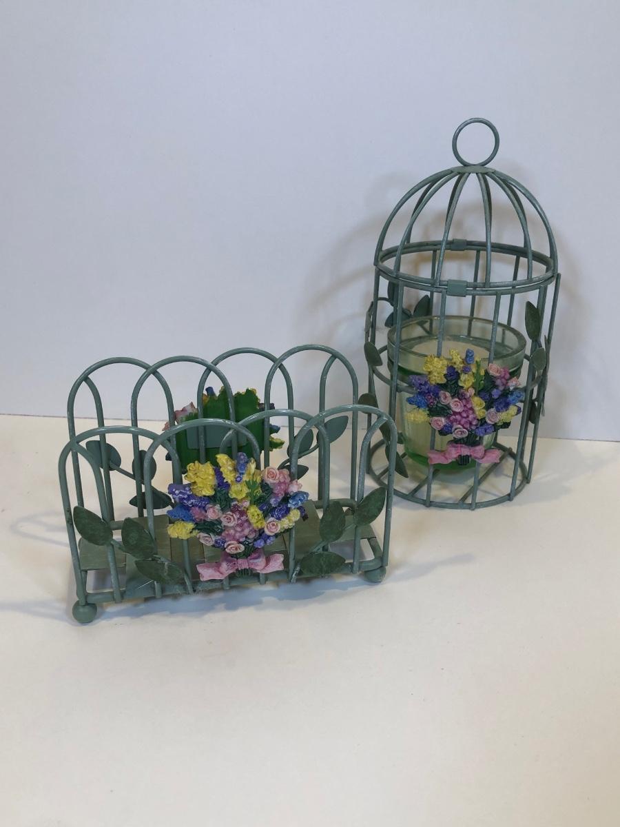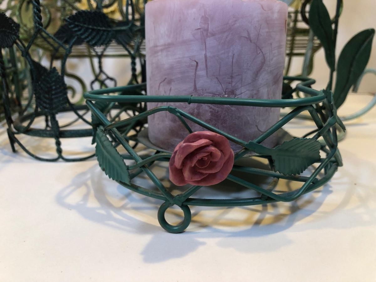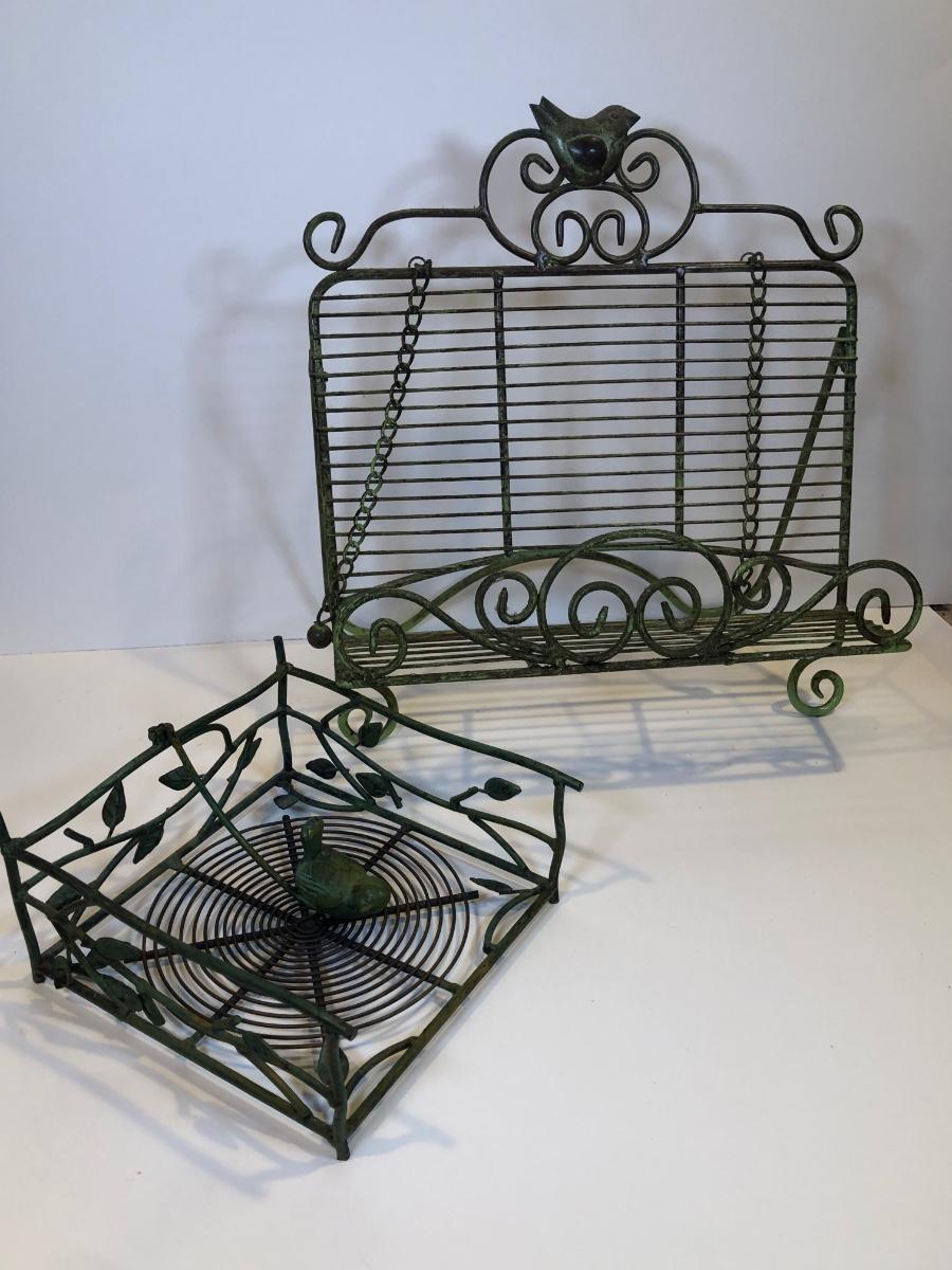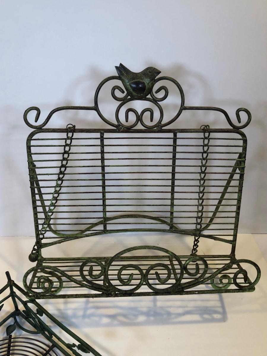 LOT 153K: Green Metal Home Decor - Recipe Stand, Napkin Holder, Wall Decor & Candle Holders