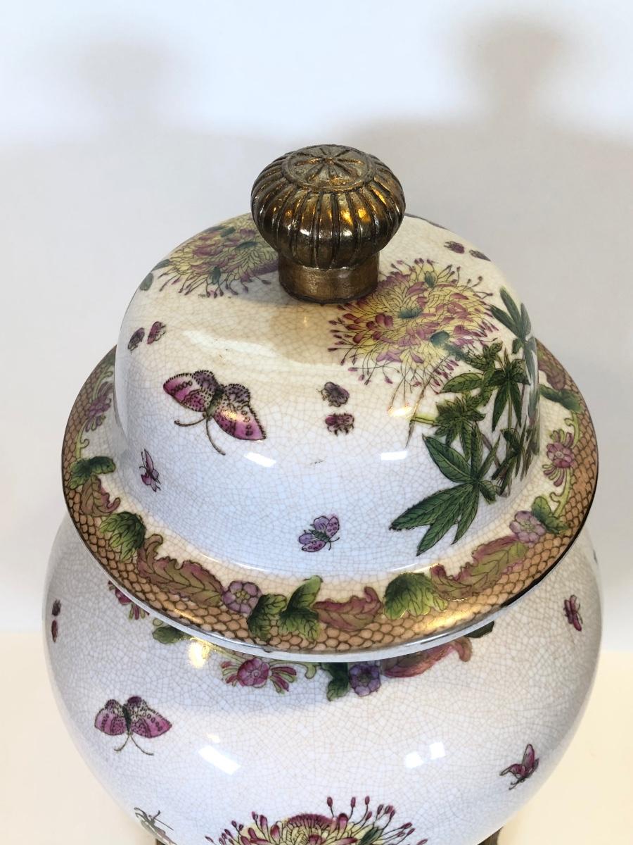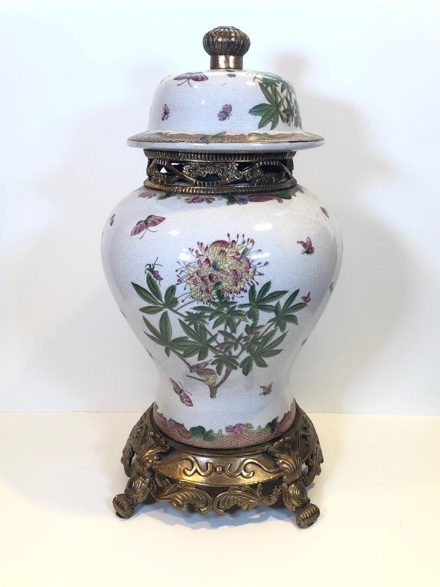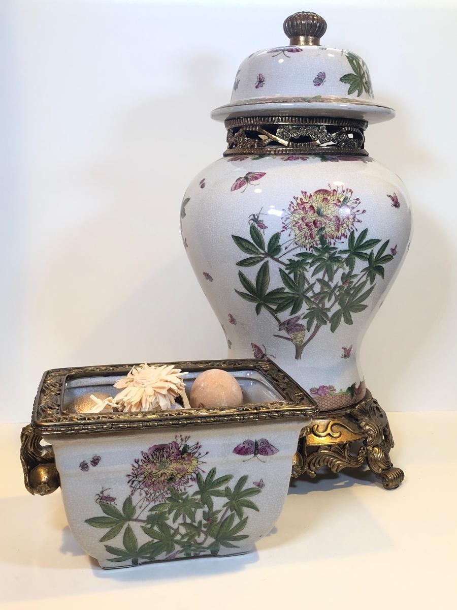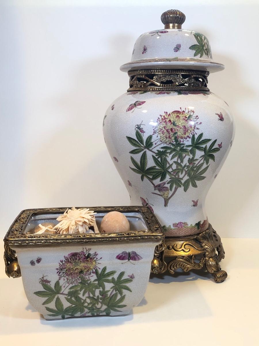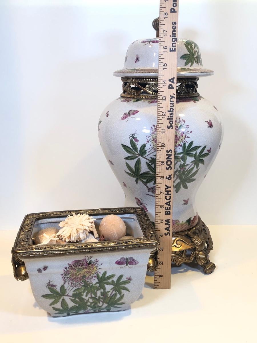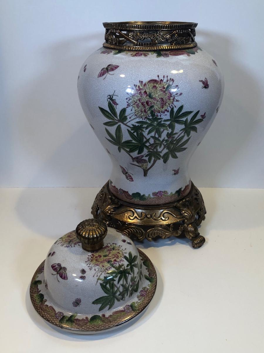 LOT 159K: Large Ornate Asian Style Lidded Urn Vase w/ Matching Potpourri Dish