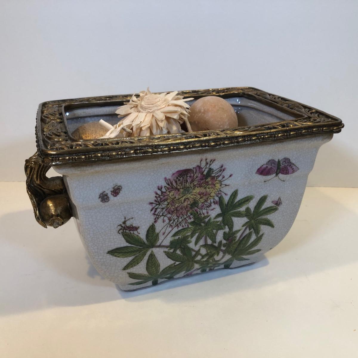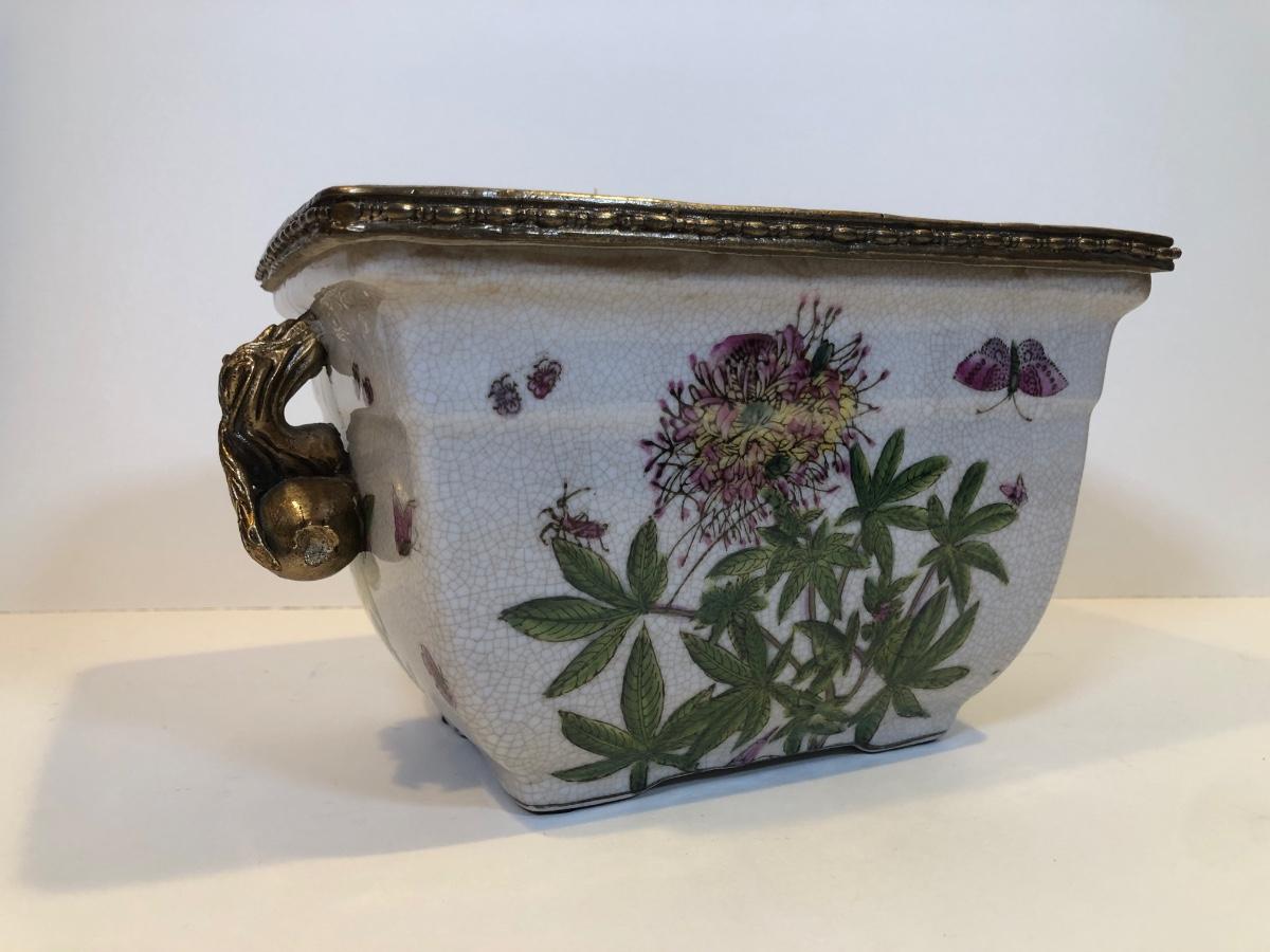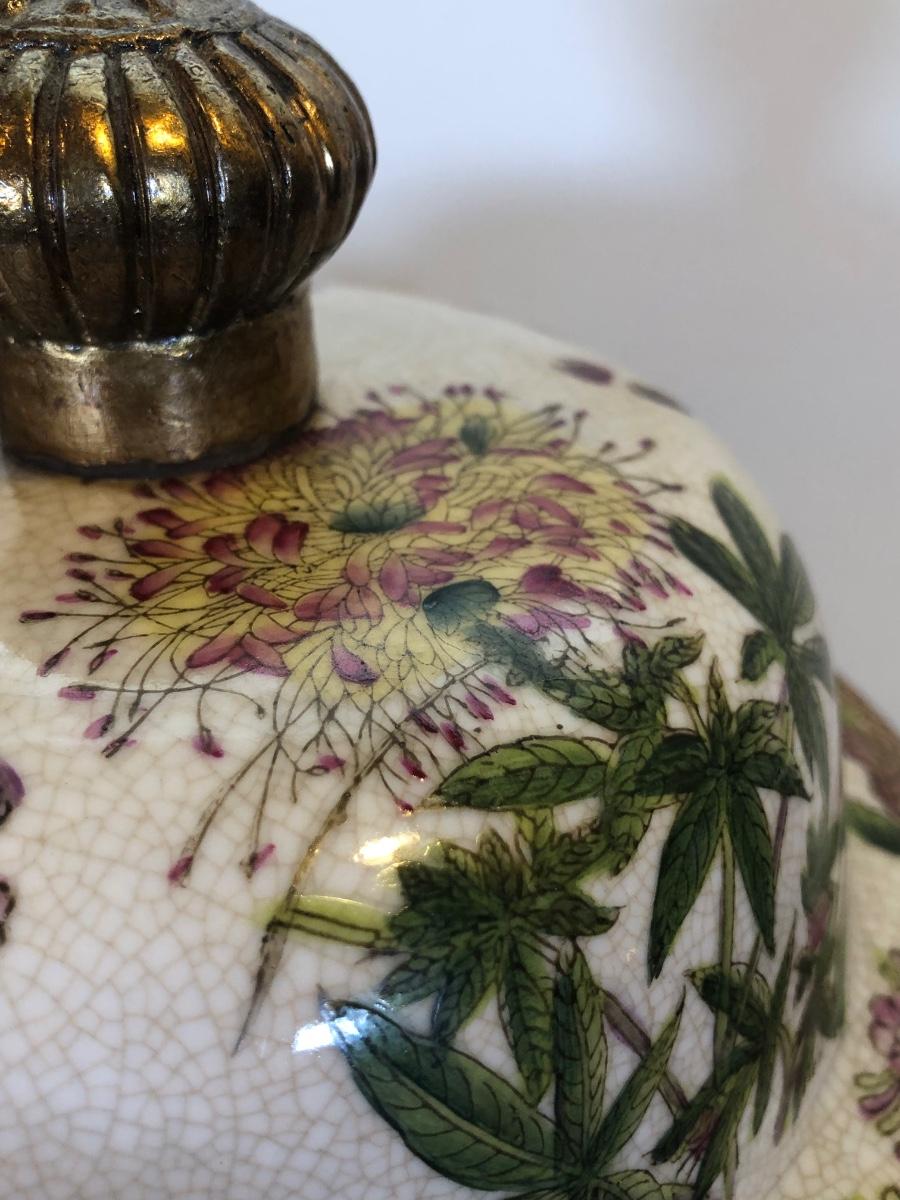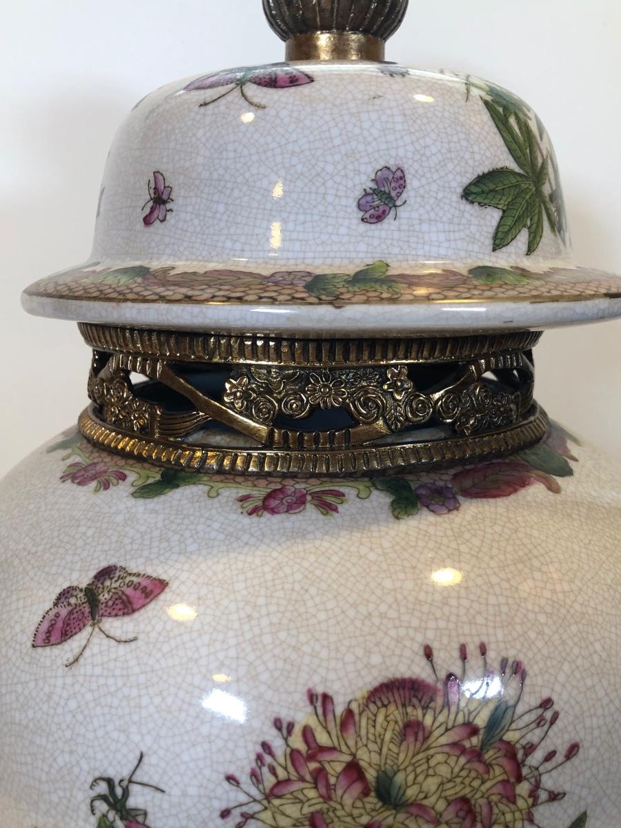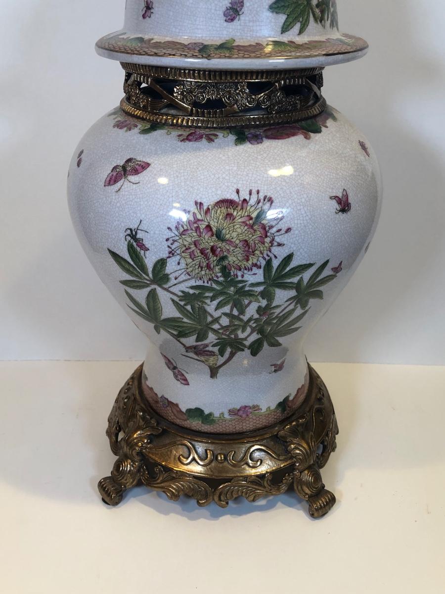 LOT 159K: Large Ornate Asian Style Lidded Urn Vase w/ Matching Potpourri Dish