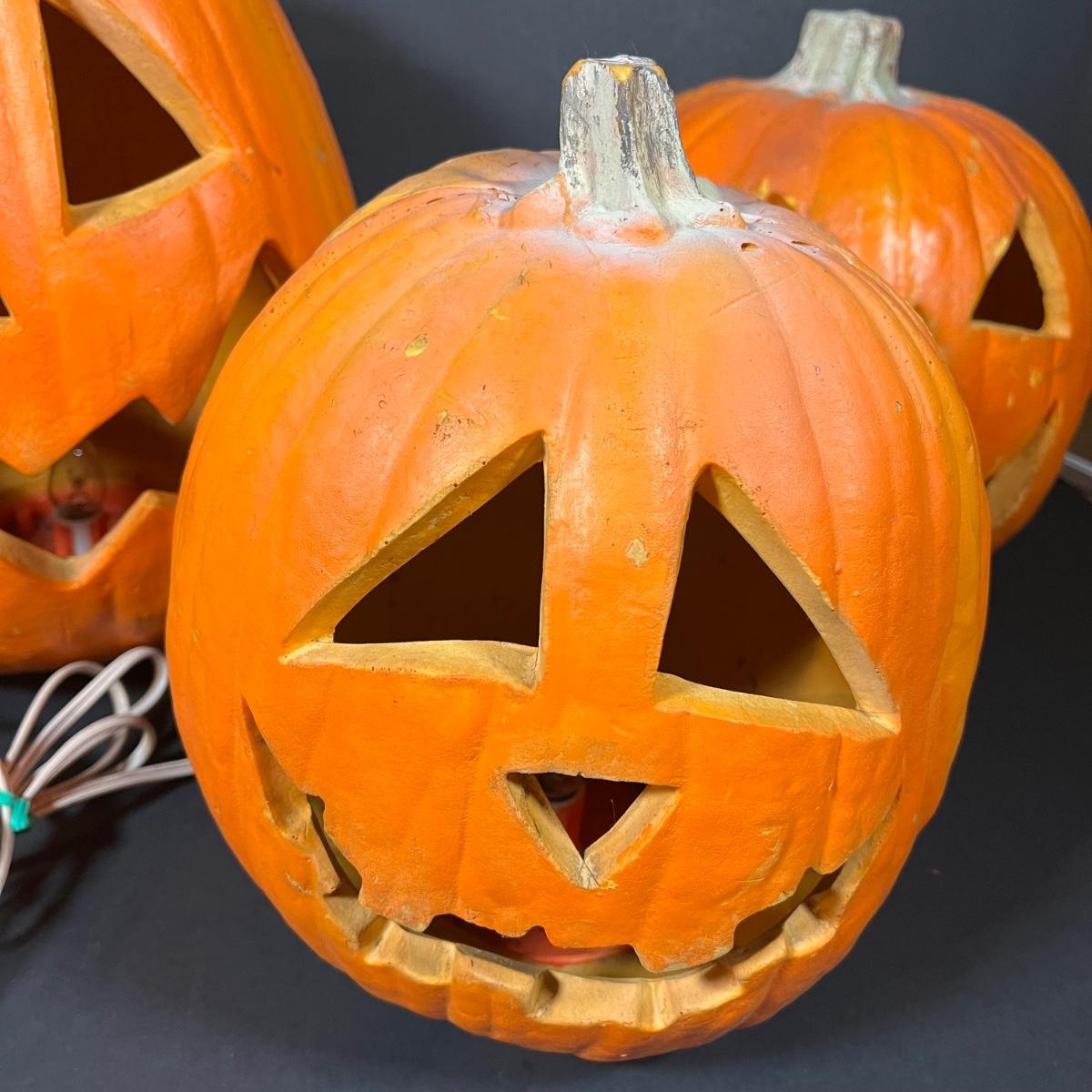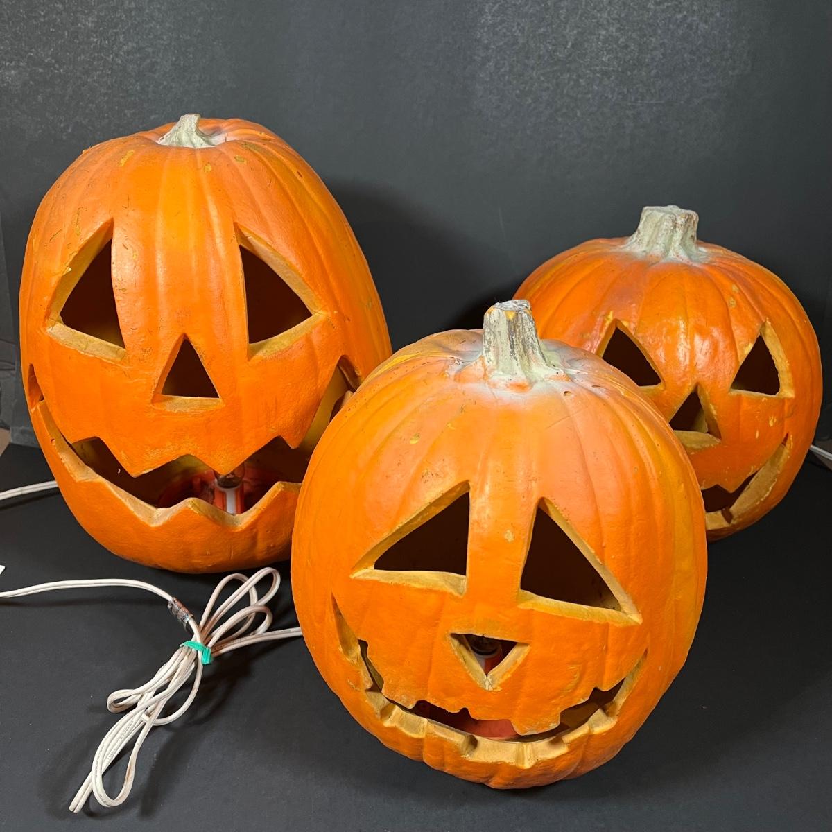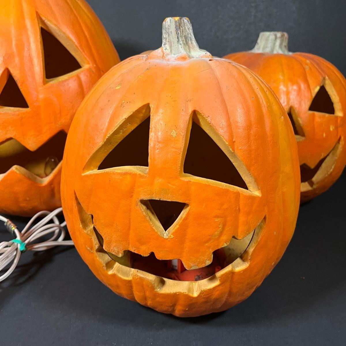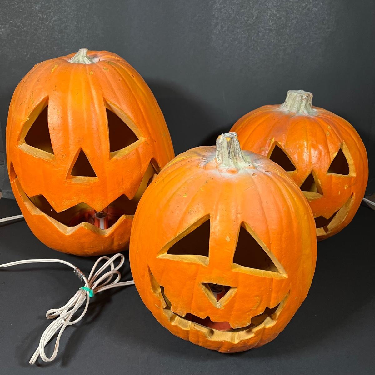 LOT 167G: Vintage Light-Up Foam Pumpkin Jack-O-Lanterns - Trendmasters and Jakks