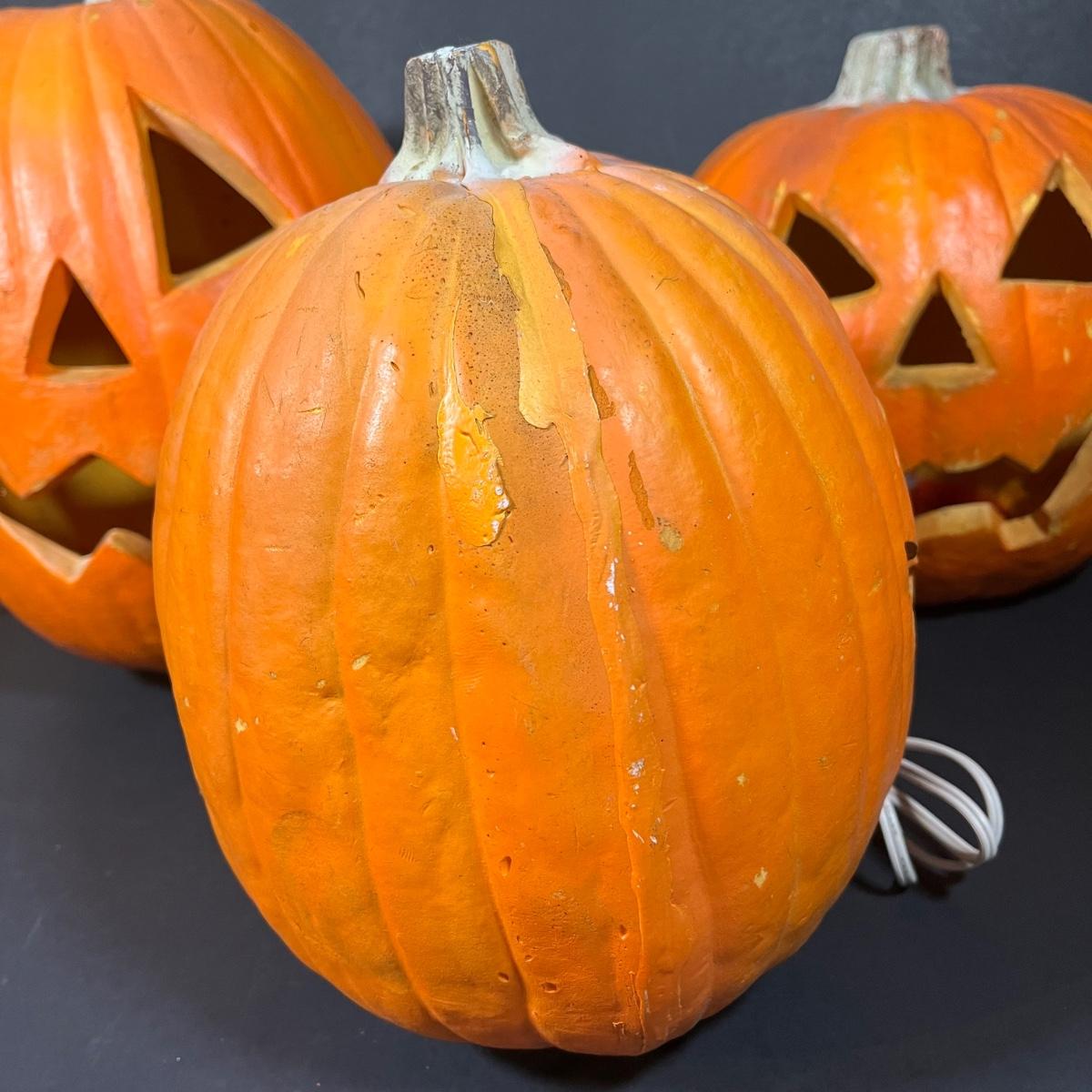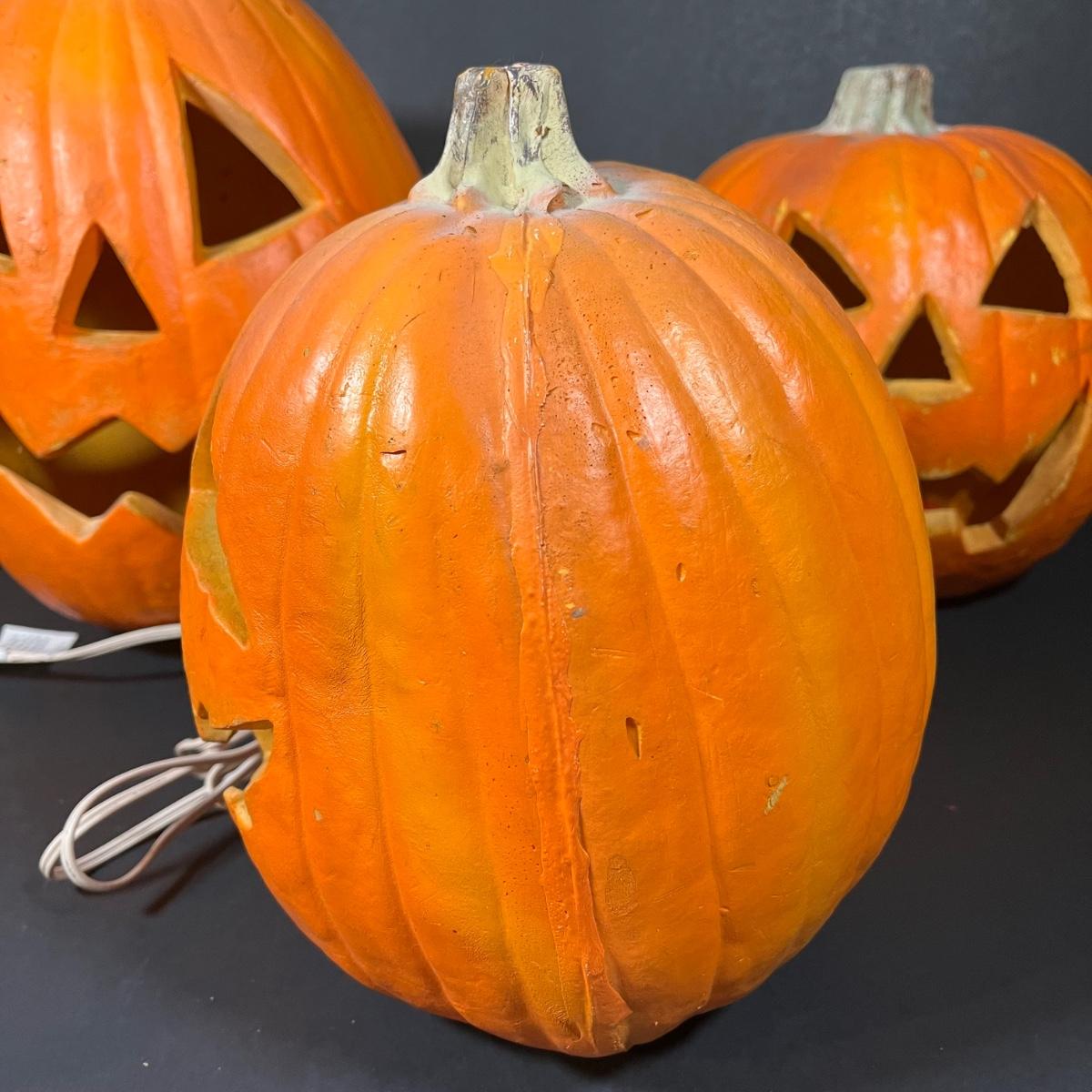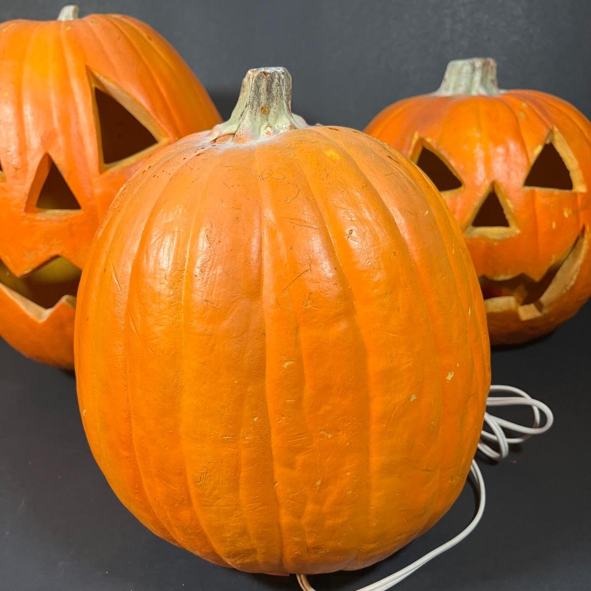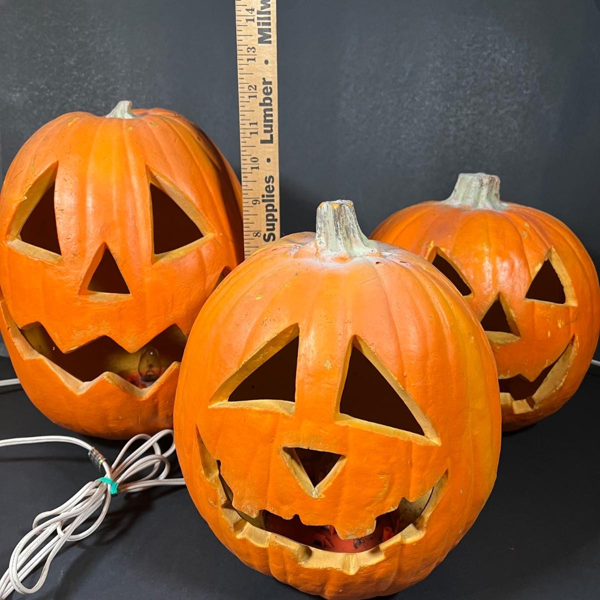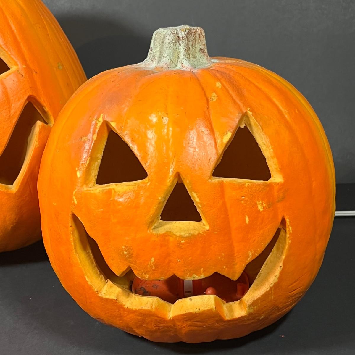 LOT 167G: Vintage Light-Up Foam Pumpkin Jack-O-Lanterns - Trendmasters and Jakks