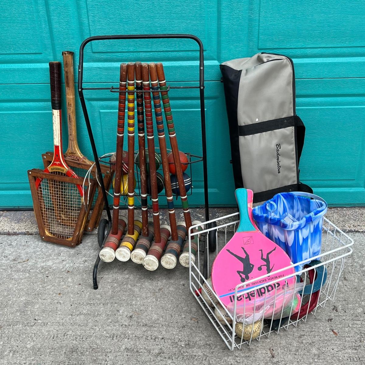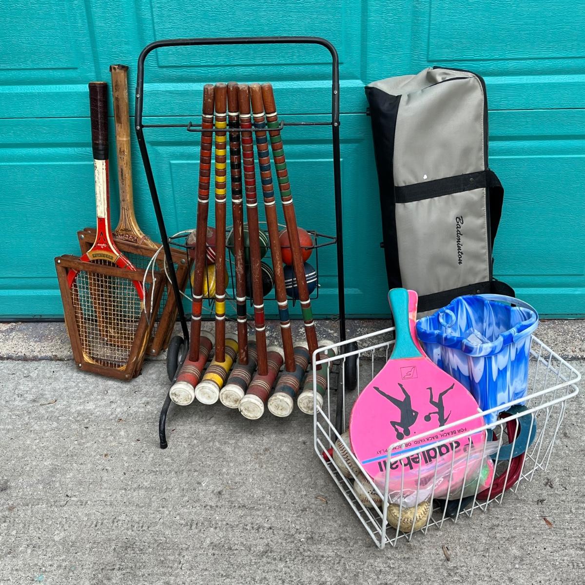 LOT 174G: Vintage Croquet Set, Badminton And More