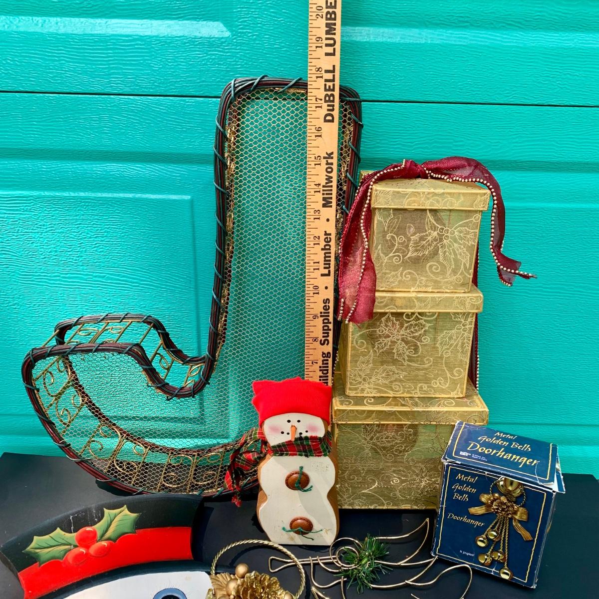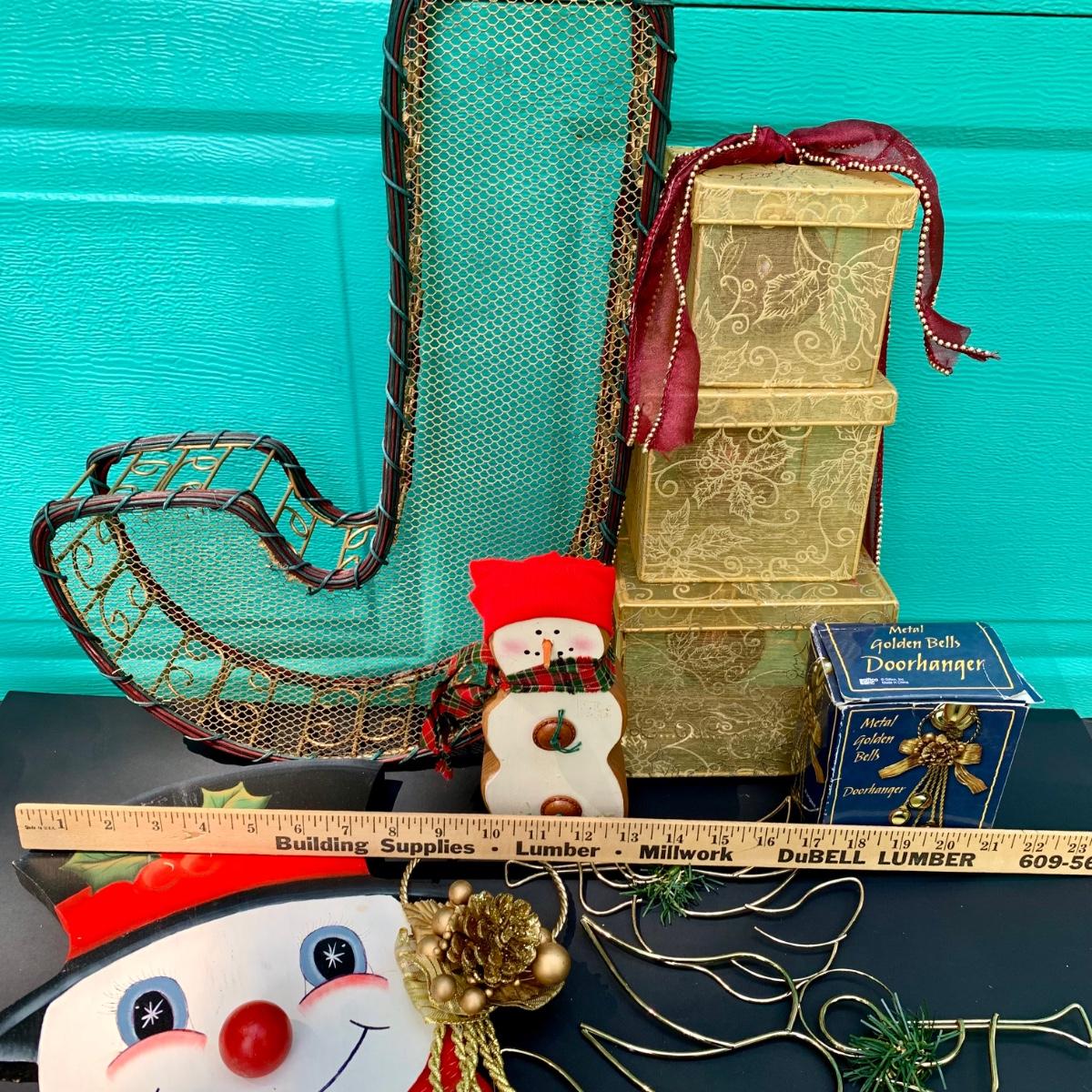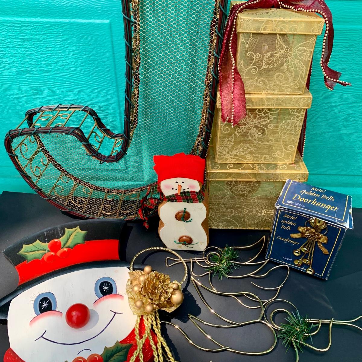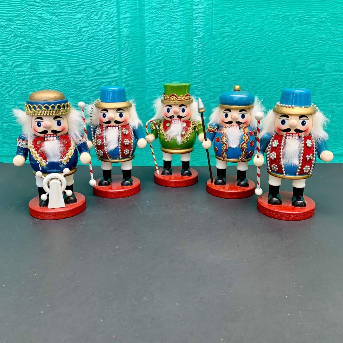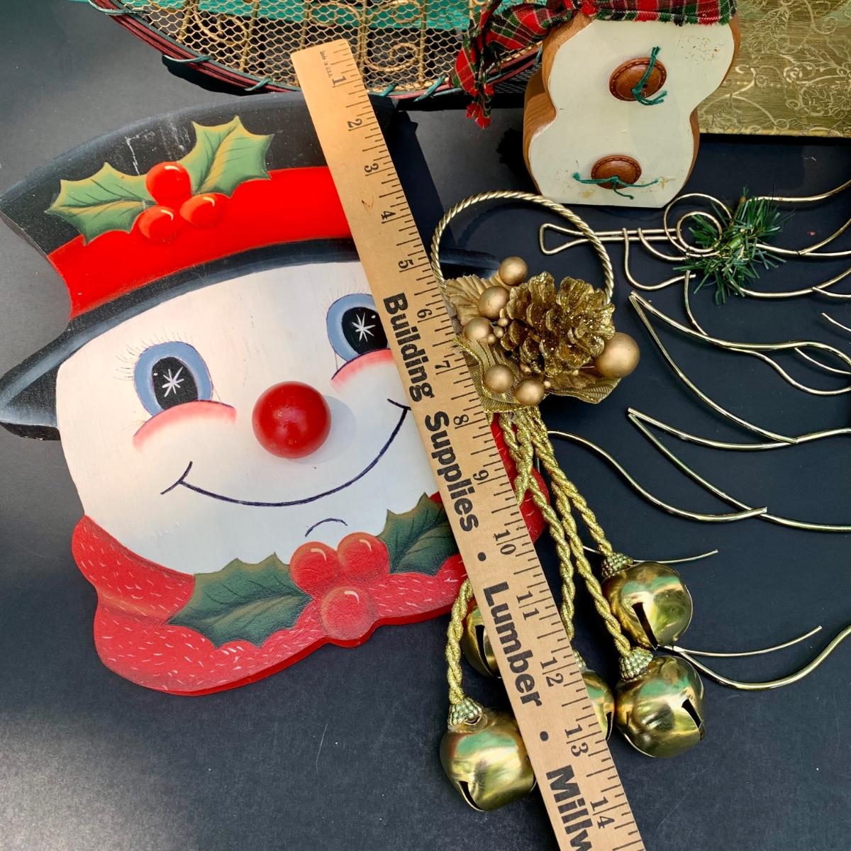LOT 184 G: Christmas Decor Collection: Throw Pillows, Nutcrackers, Misaka Crystal Angel Candle Holder, Poker & Wine Santas, Musical Wind Up Nose Frosty The Snowman, & More