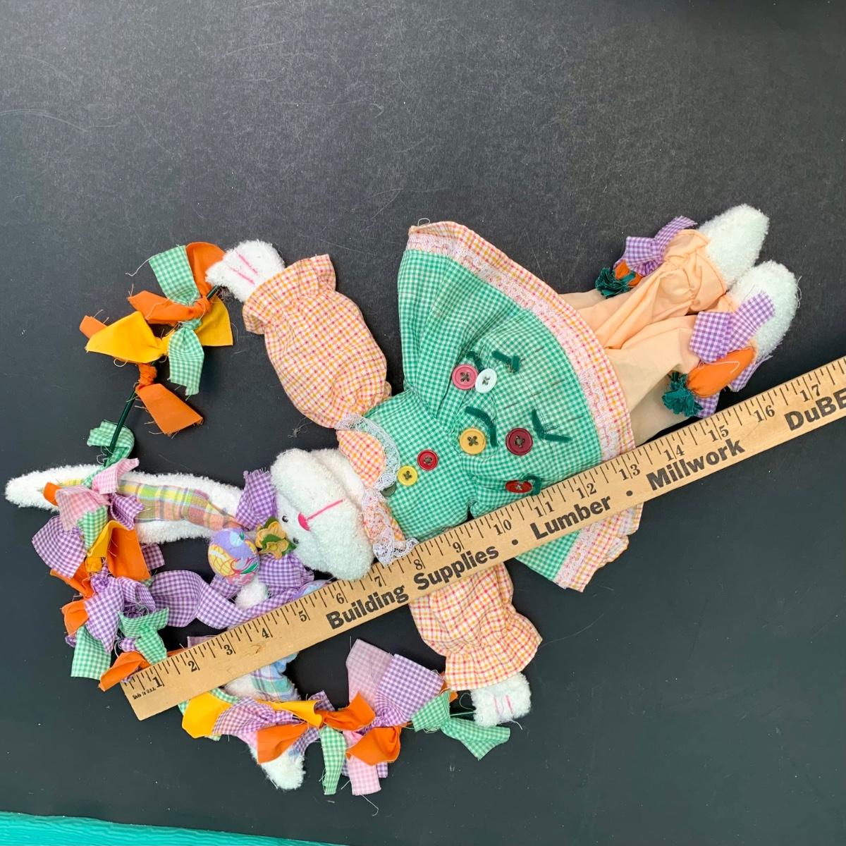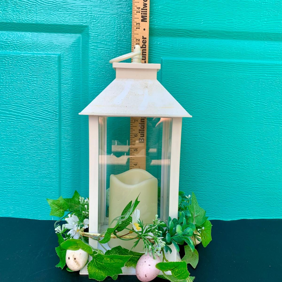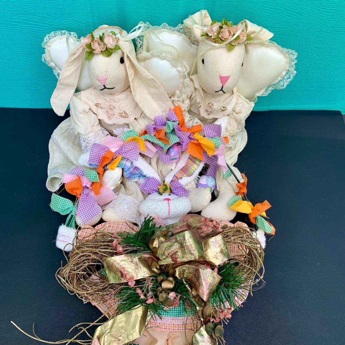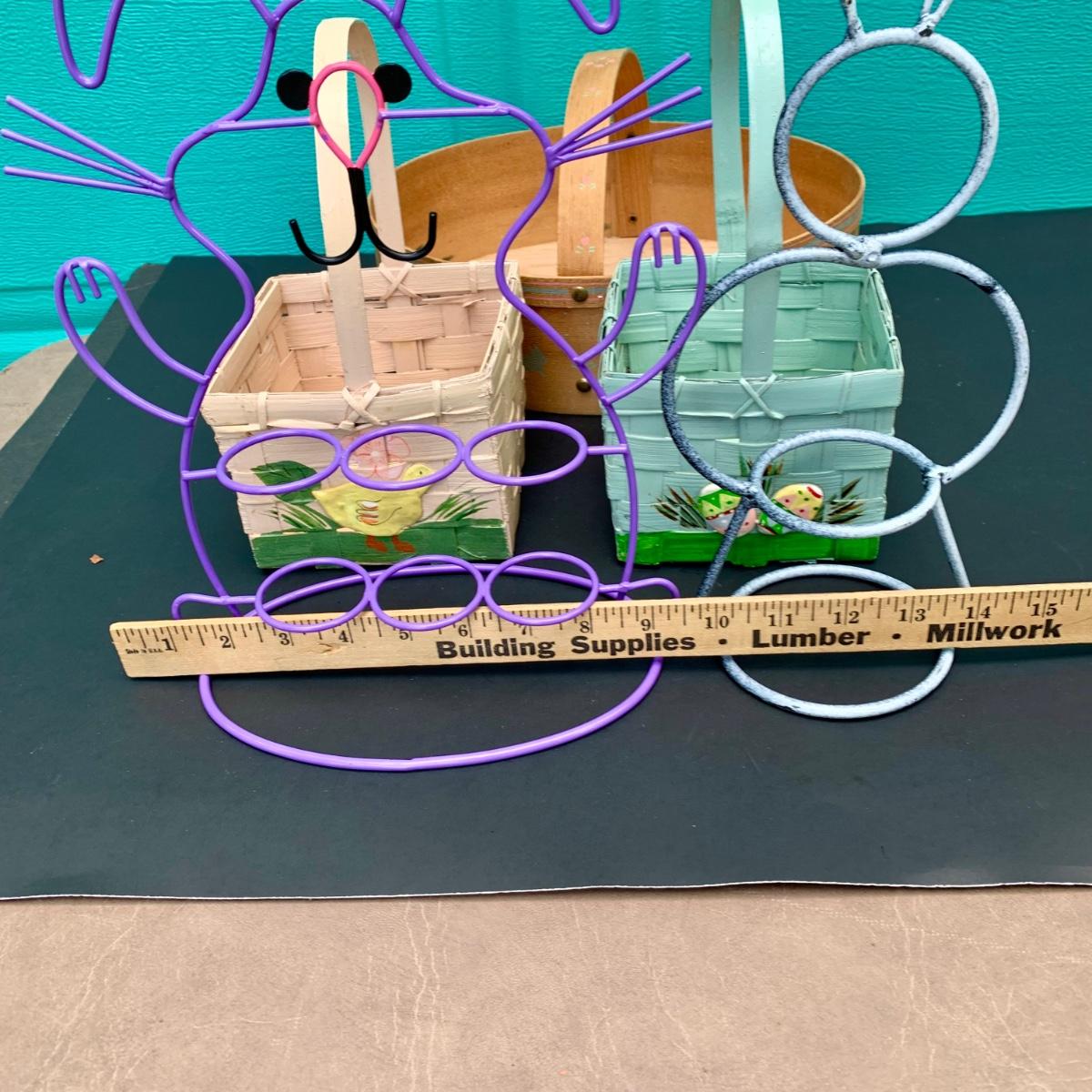 LOT 187 G: Easter Basket & Decor Collection: Wreath, Battery Operated Lantern, Baskets, Wire Egg Holder, Stuffed Angel Bunny Set & More