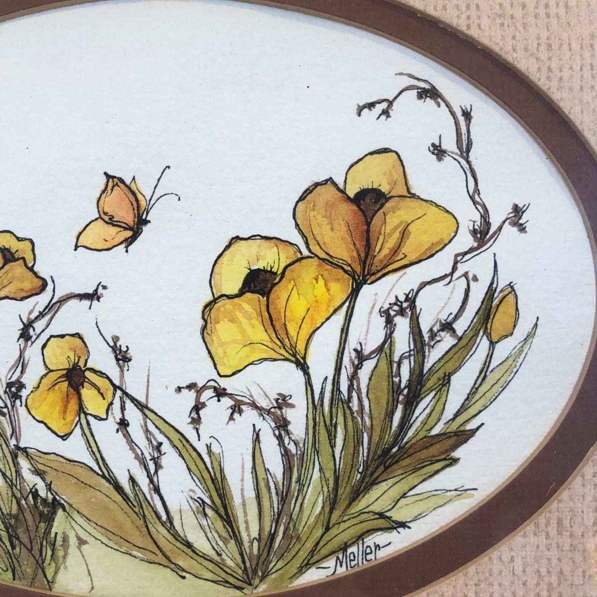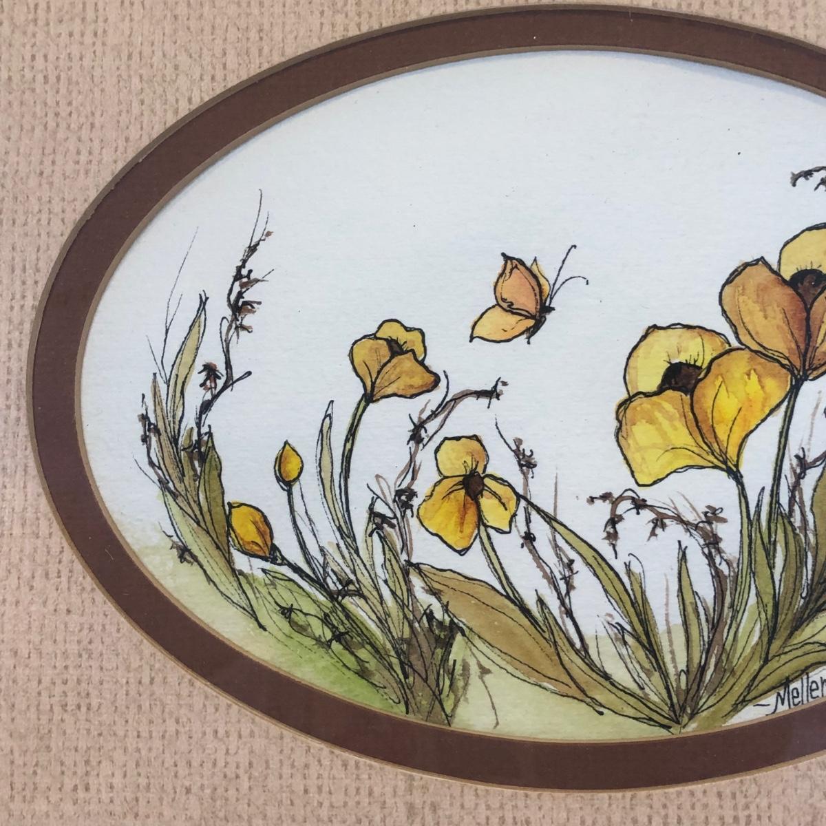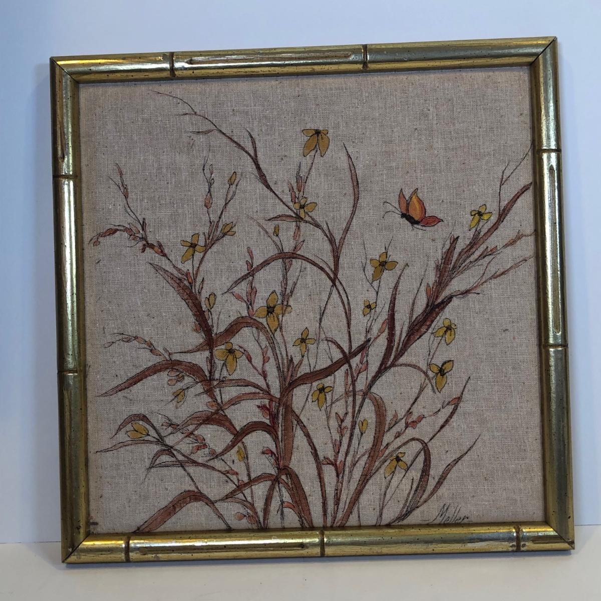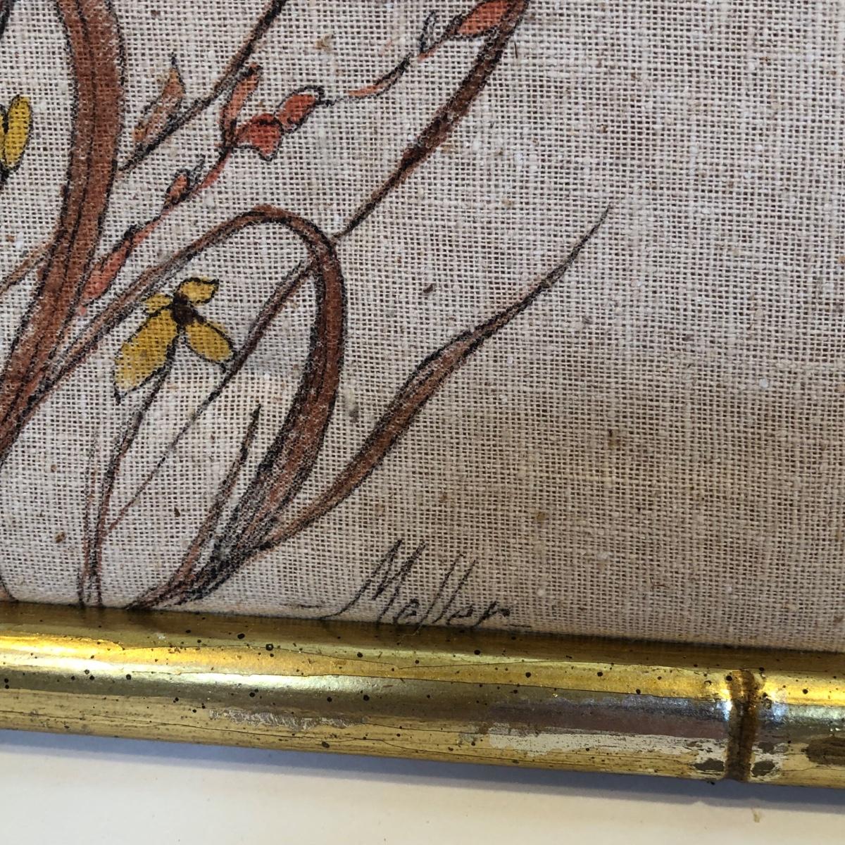 LOT 202K: JoAnne Meller Signed Floral Paintings w/ Brazilian Matarazzo Tiles