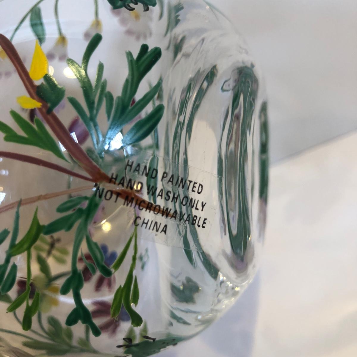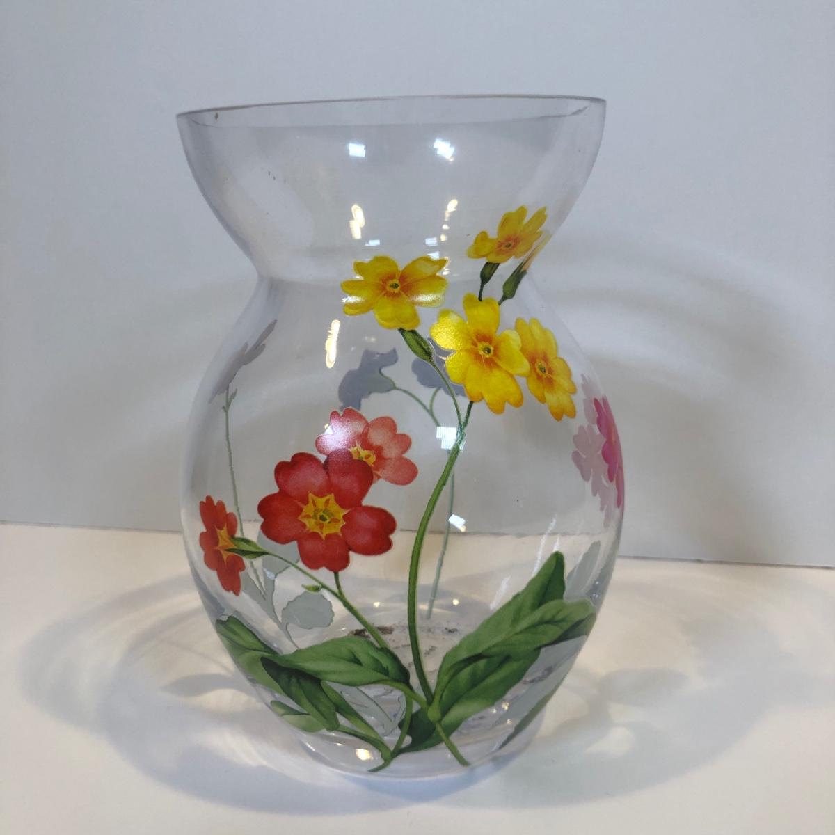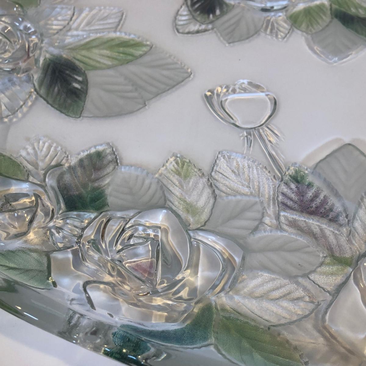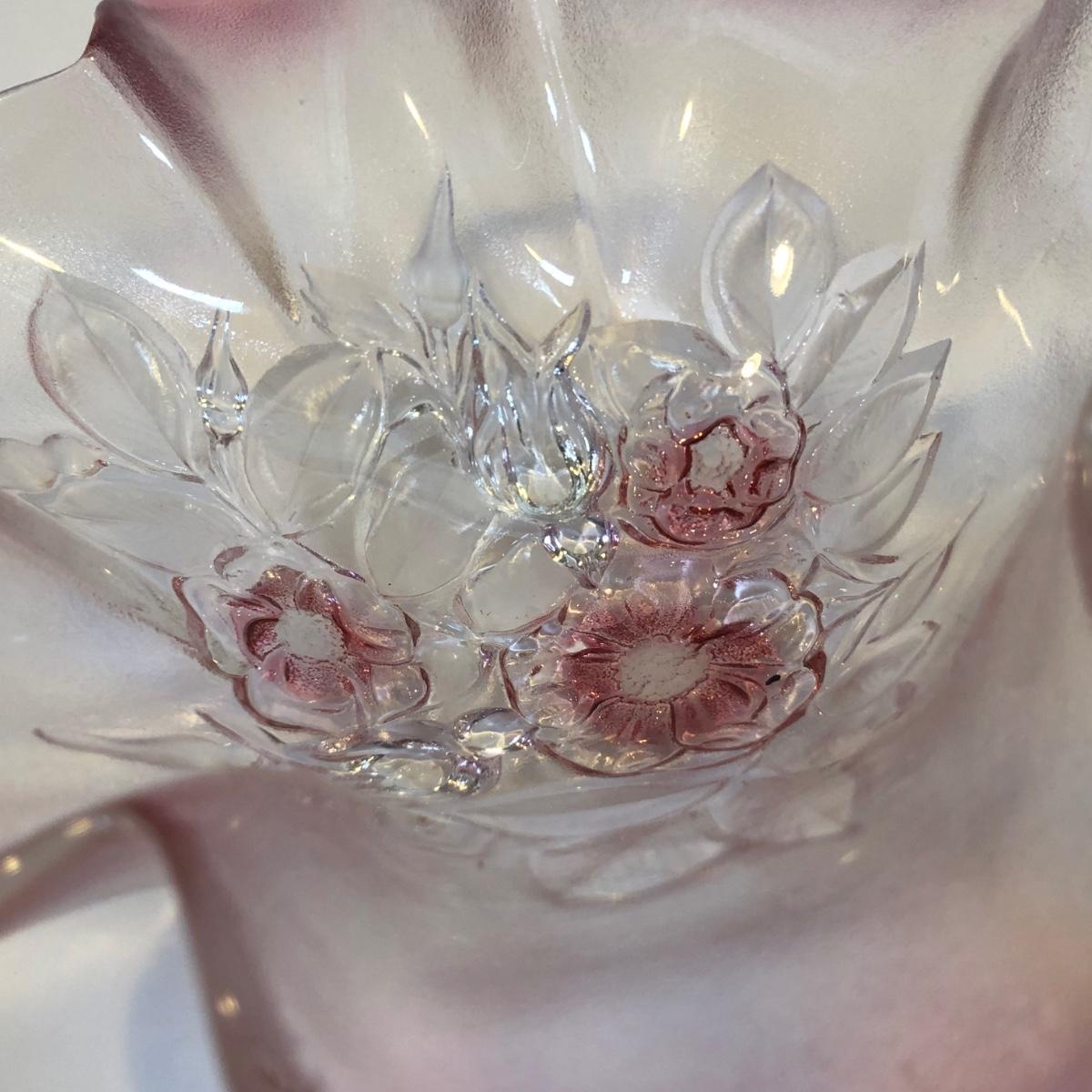 LOT 203K: Wheaton Village Glass Frog Paperweight, Godinger Floral Painted Decanter, Blown Glass Frog & Pretty Colorful Glass Floral Serving Dishes