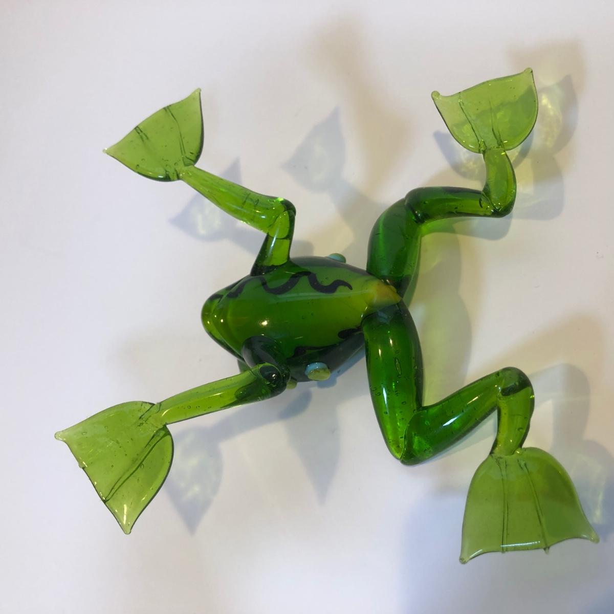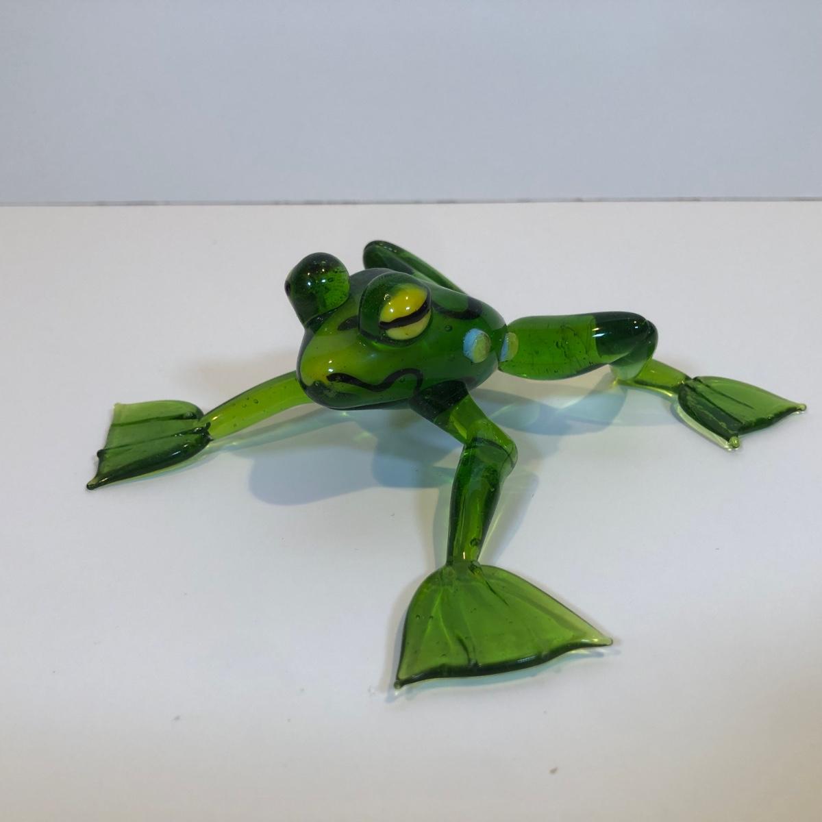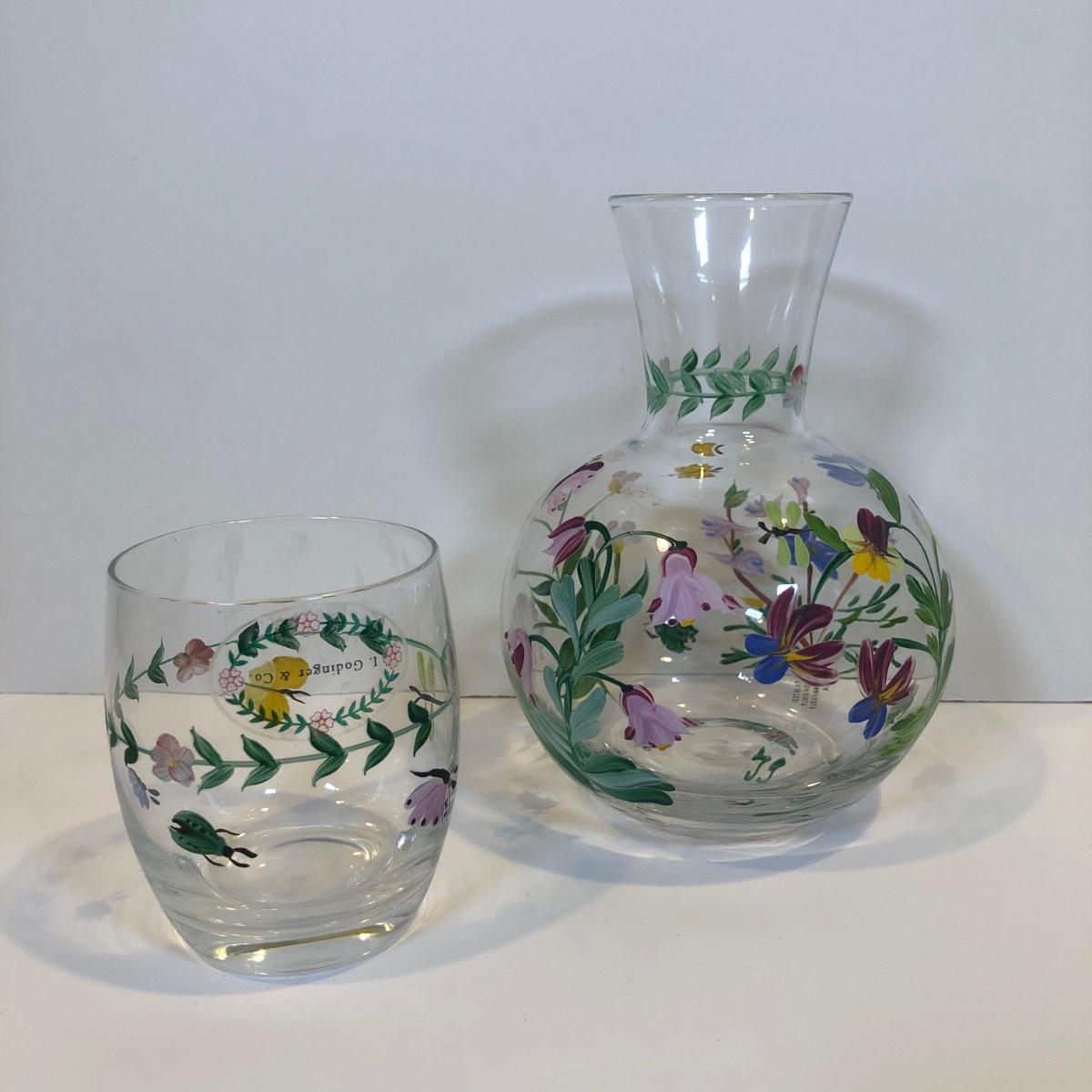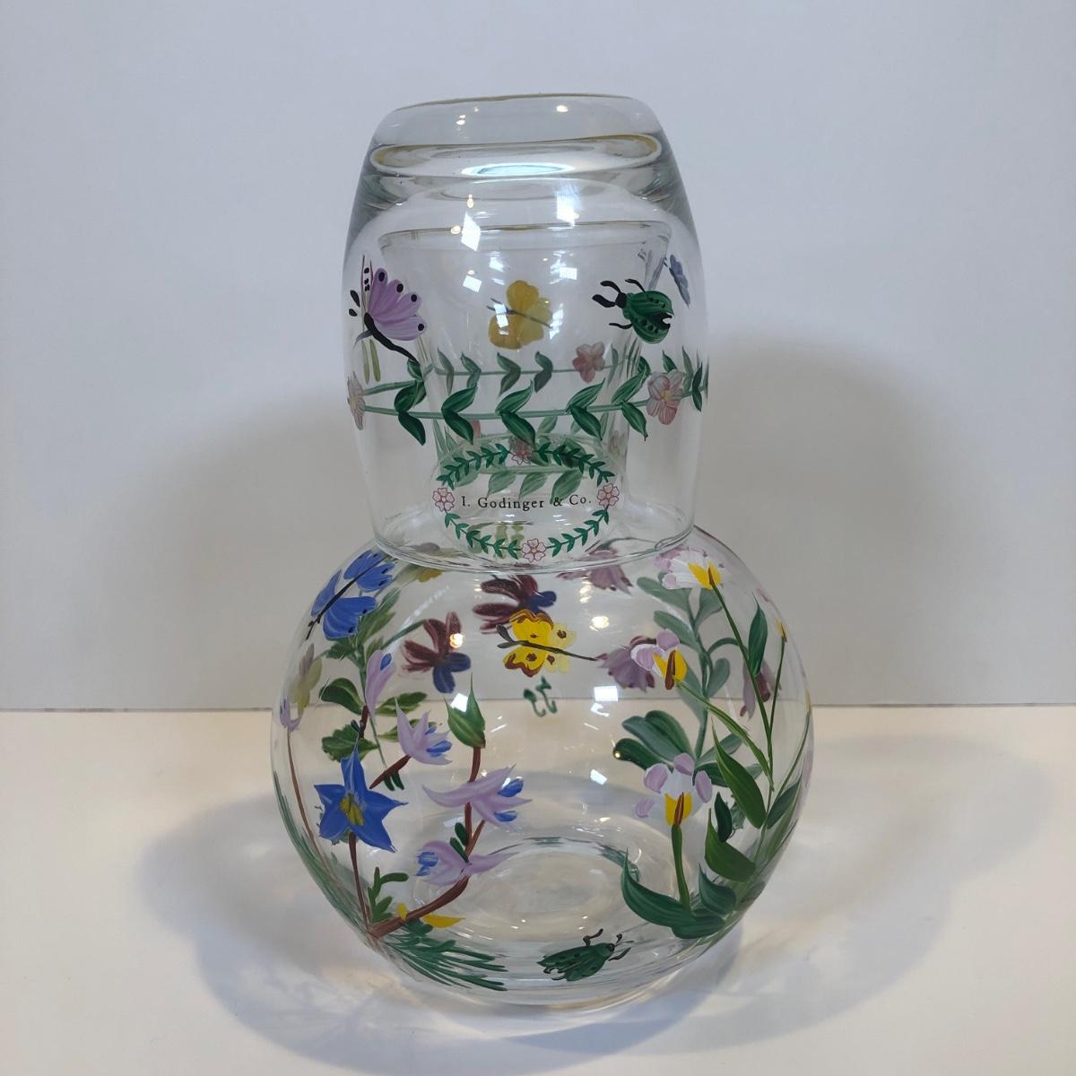 LOT 203K: Wheaton Village Glass Frog Paperweight, Godinger Floral Painted Decanter, Blown Glass Frog & Pretty Colorful Glass Floral Serving Dishes