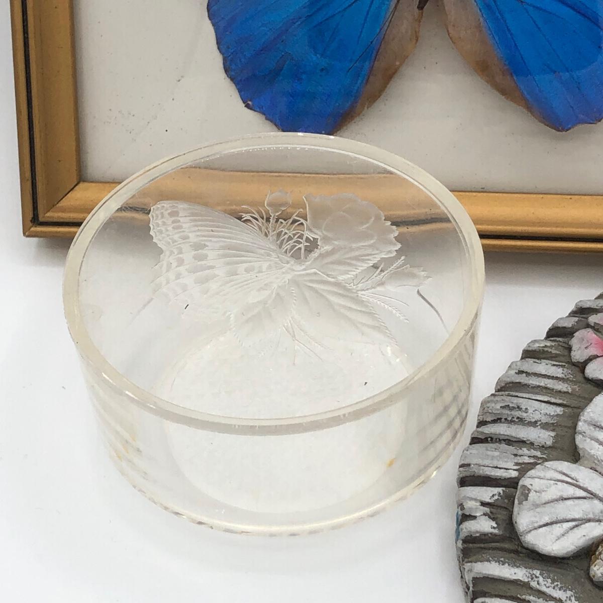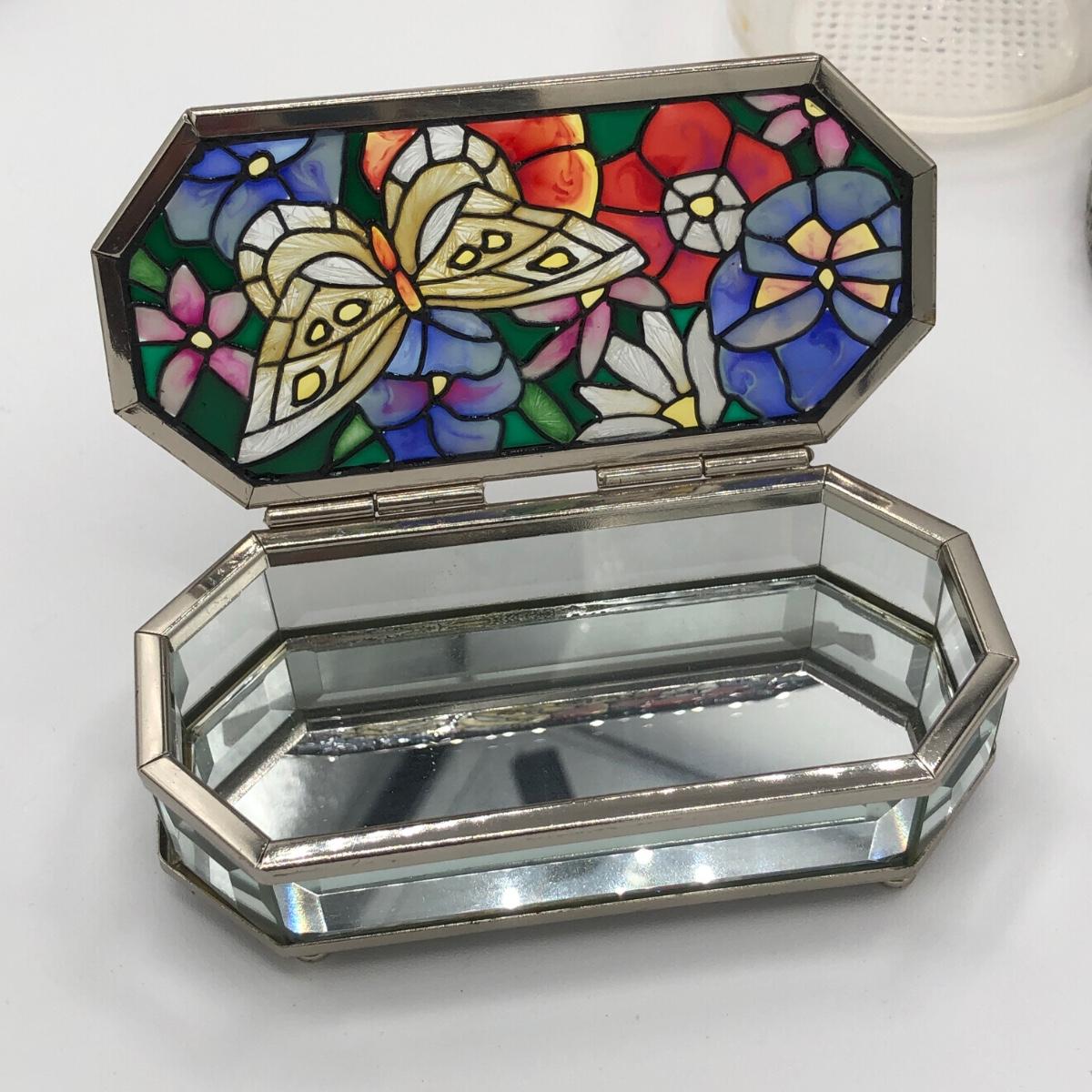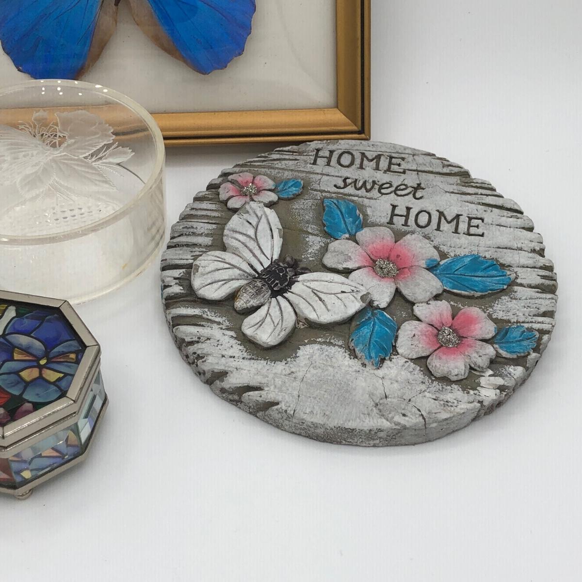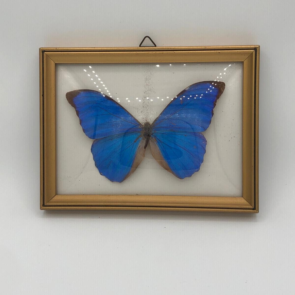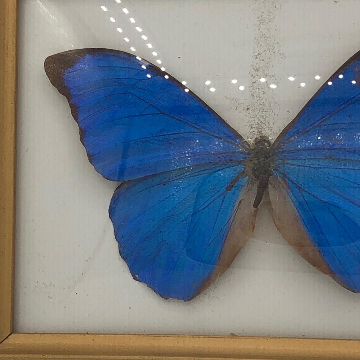 LOT 205K: Framed Morpho Didius Butterfly w/ Curved Glass, Stained Glass Butterfly Trinket Dish & More